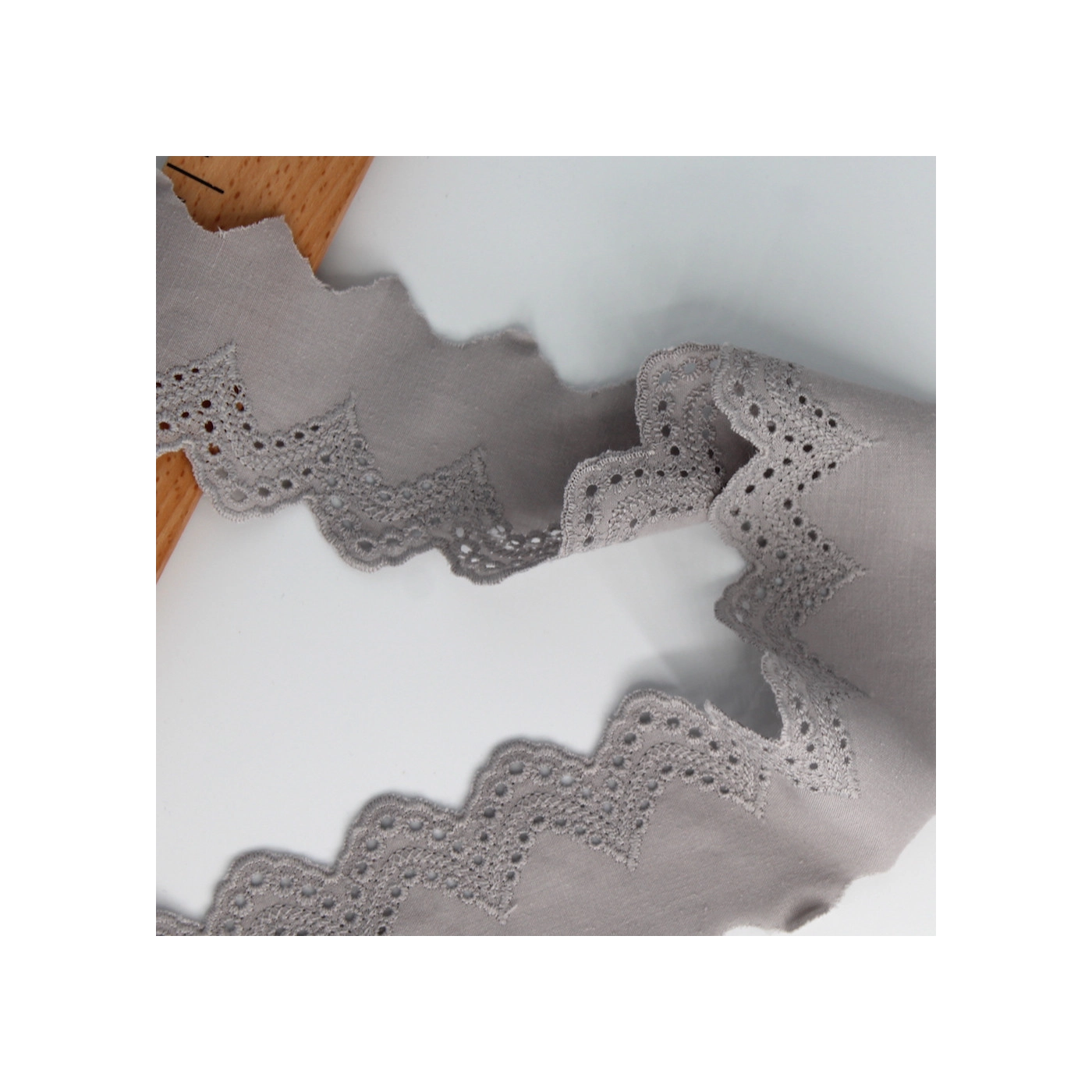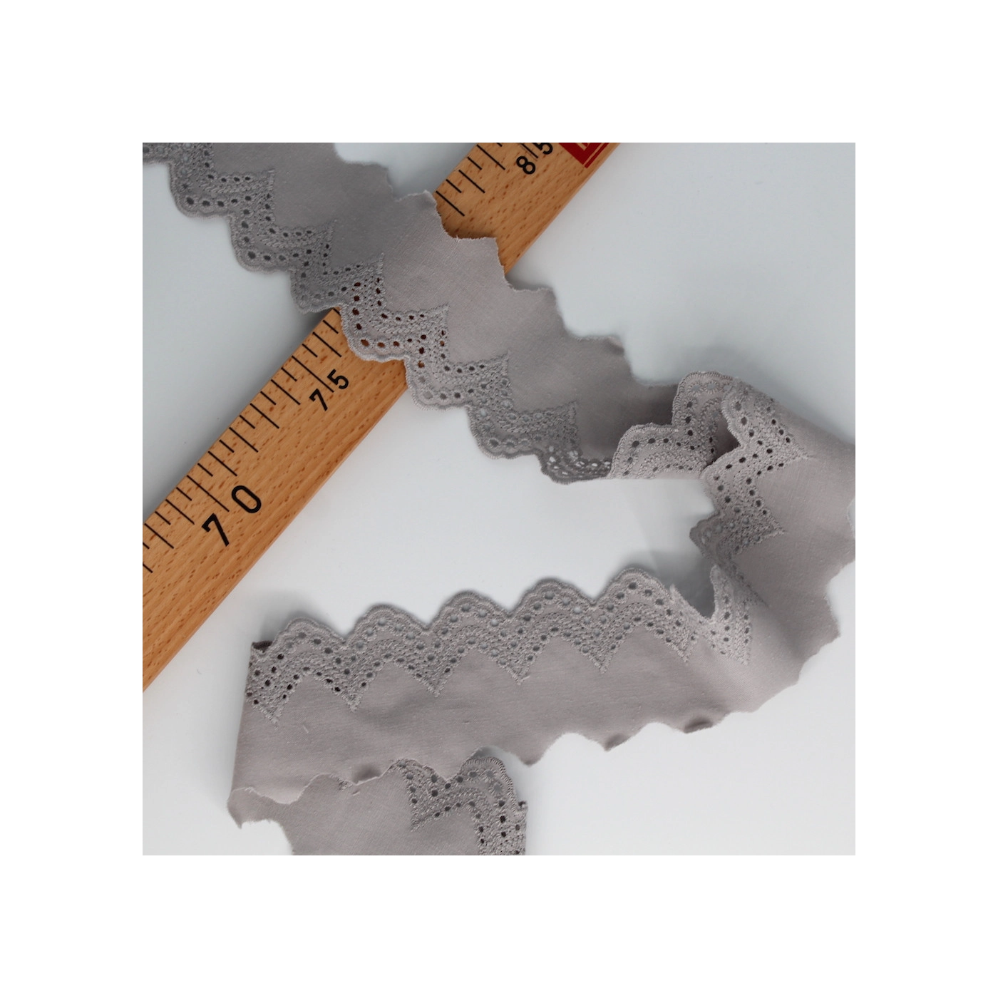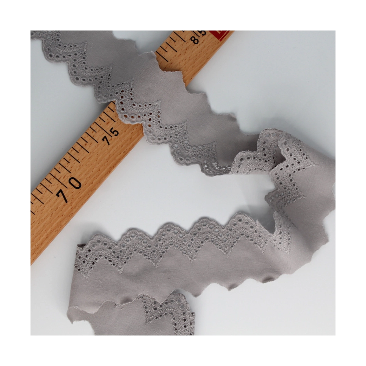 Galon coton broderie anglaise brodé gris 50mm x 1m