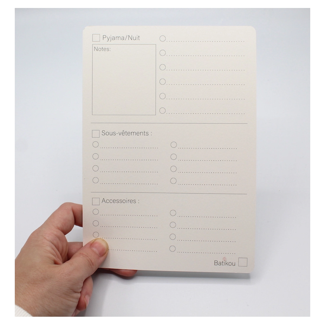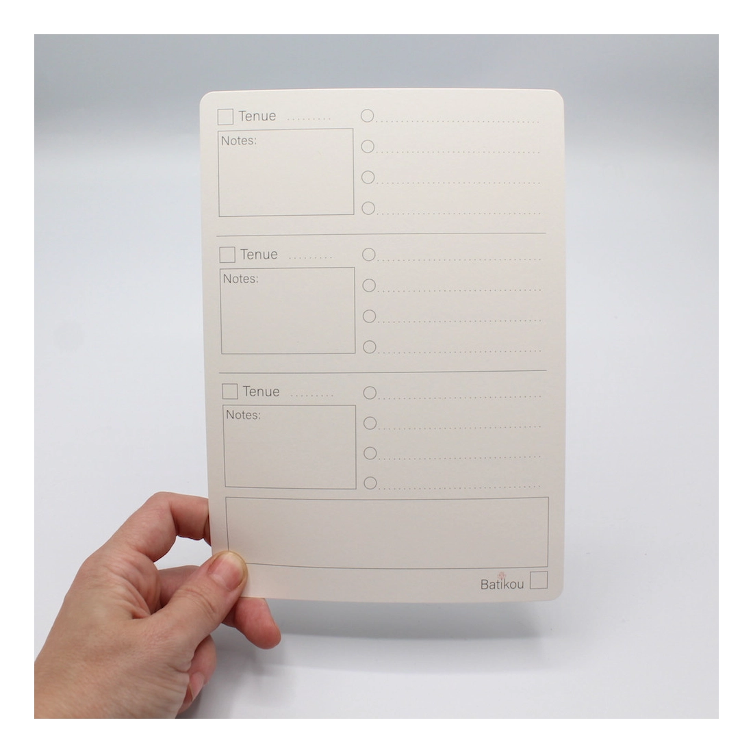 - Une face imprimée avec un motif, une face sur laquelle vous pourrez noter, dessiner, cocher