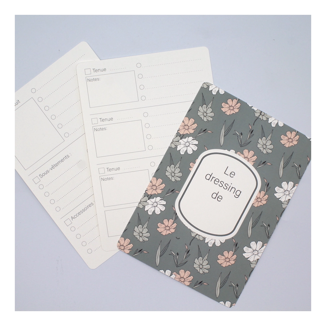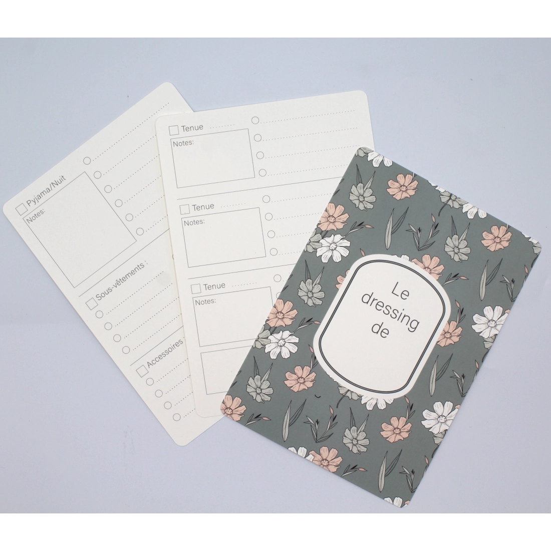 - la première avec un joli motif et la possibilité d'inscrire le prénom, le verso permettra de commencer à composer et noter les tenues ( 3 tenues), la saison etc...