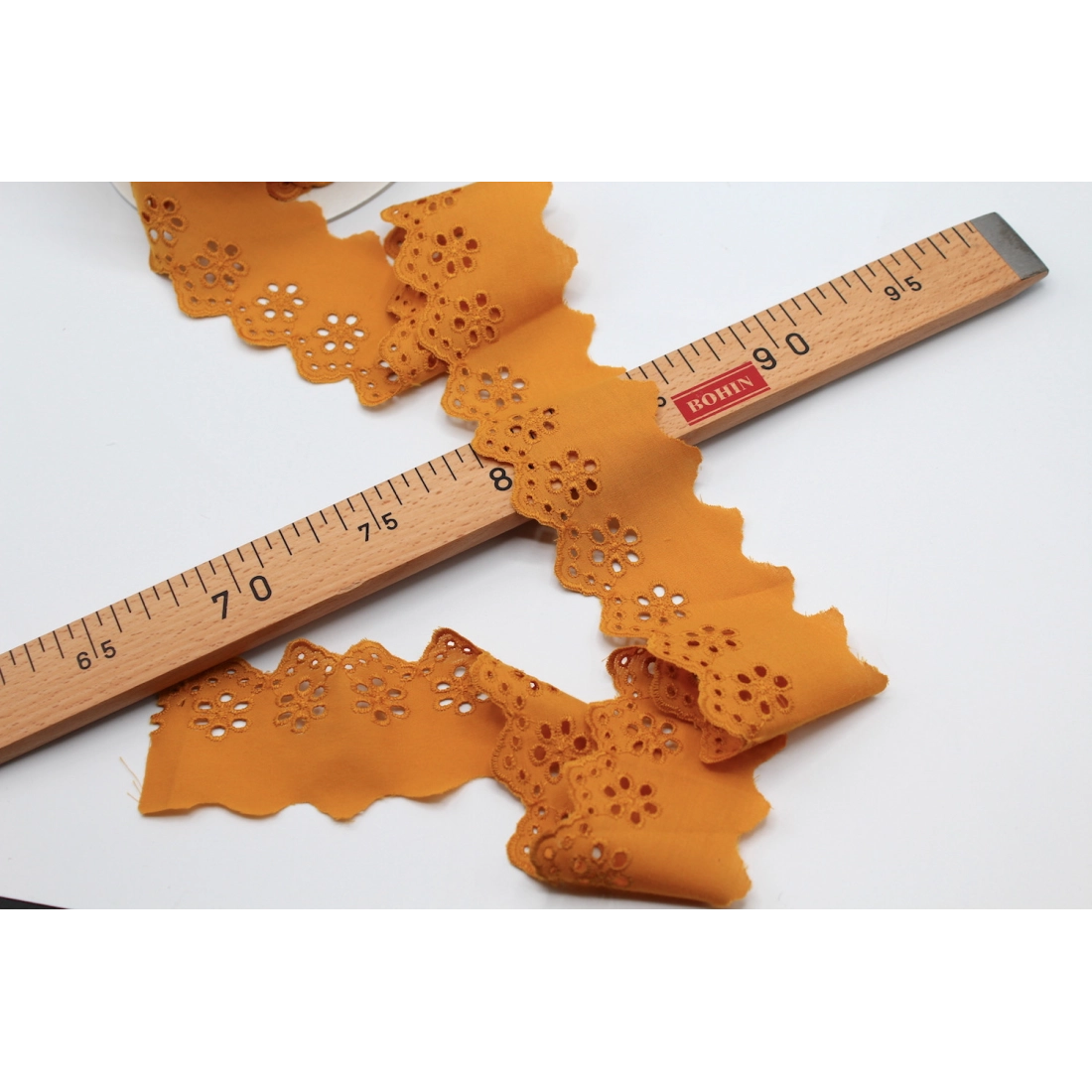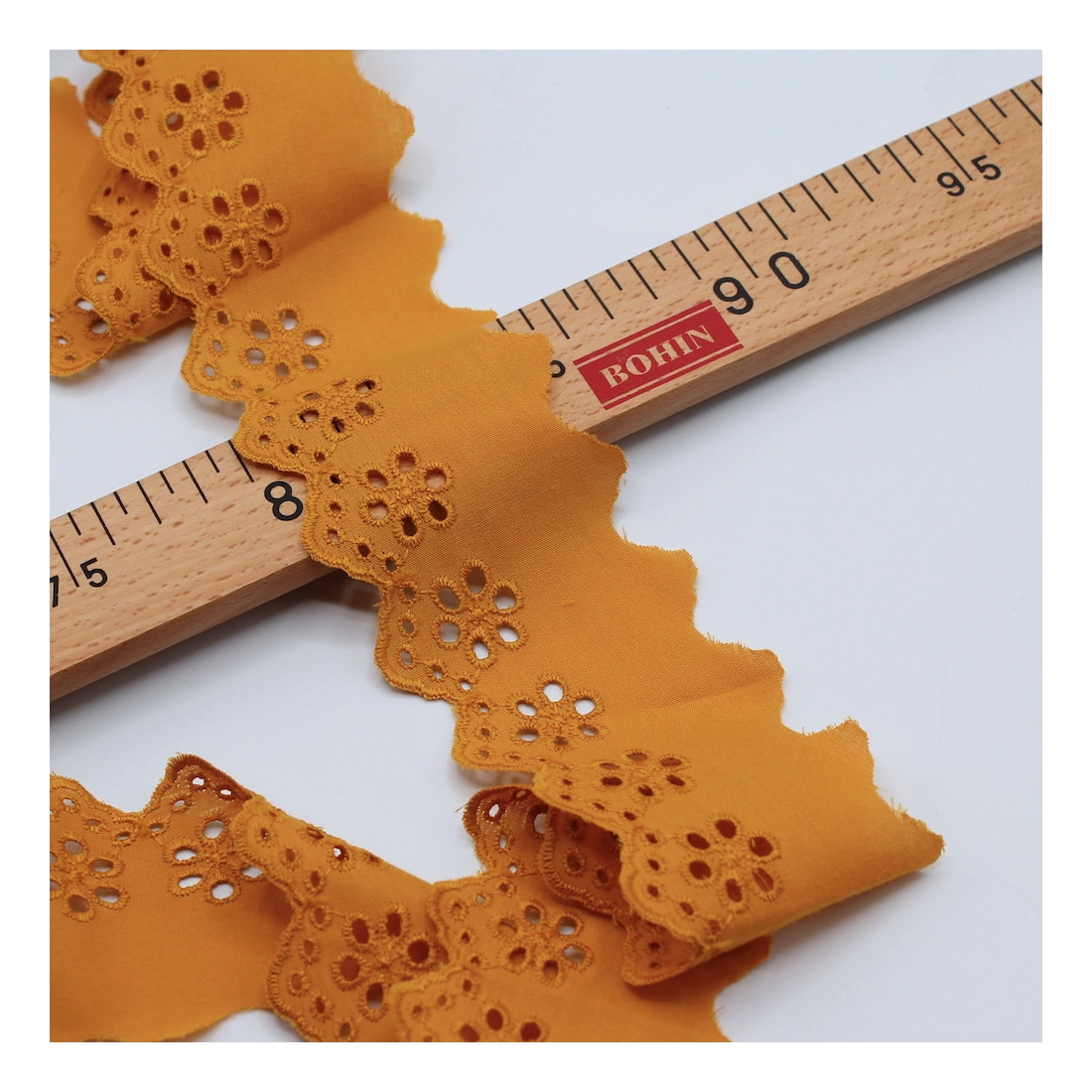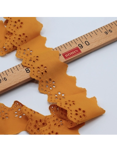Galon coton broderie anglaise 50mm x 1m moutarde