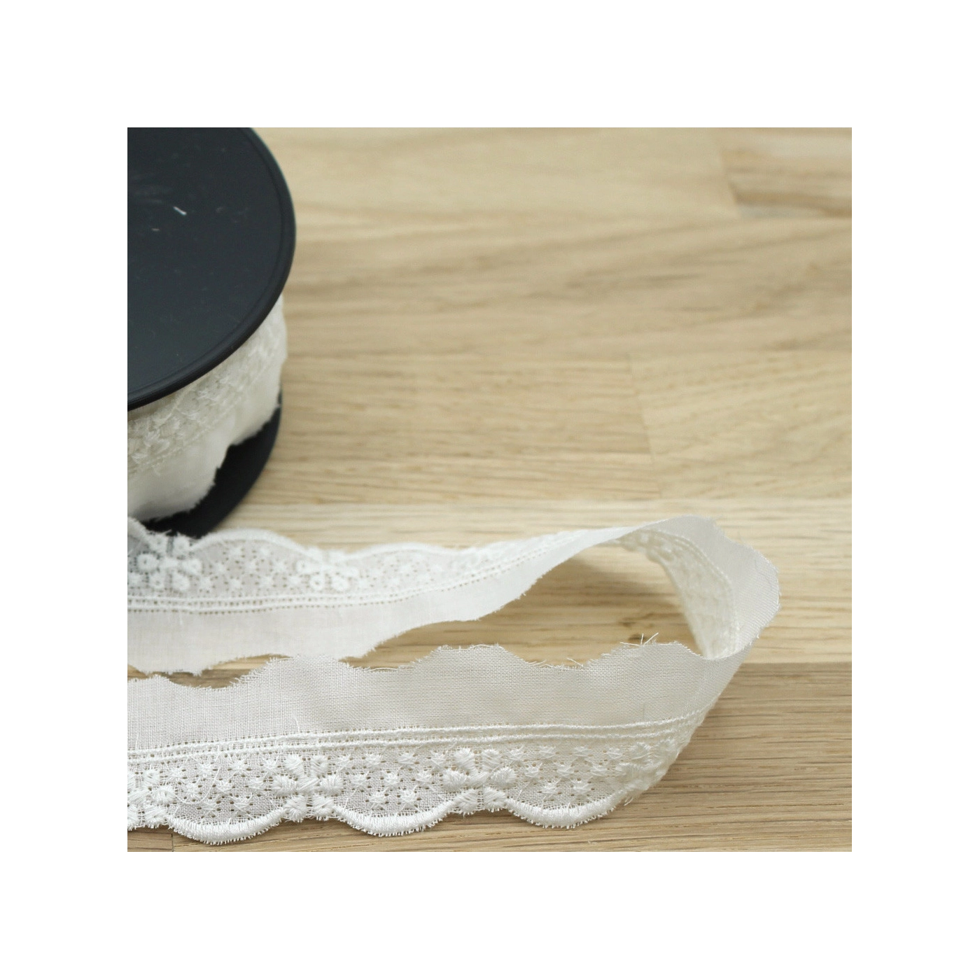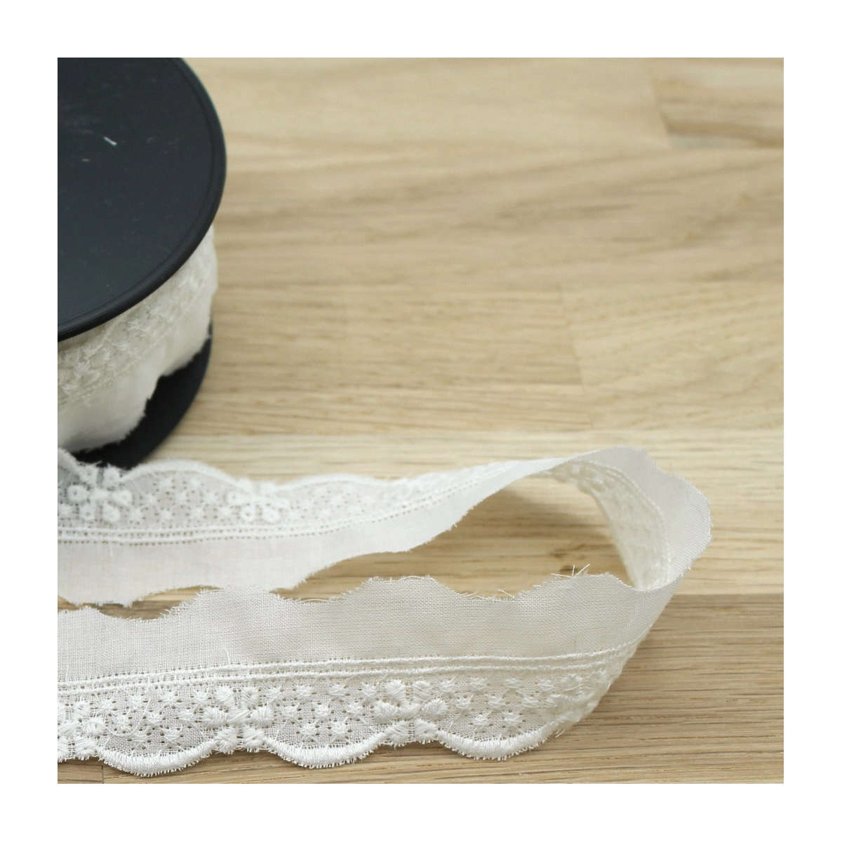 Galon coton broderie anglaise brodé 25mm x 1m blanc cassé