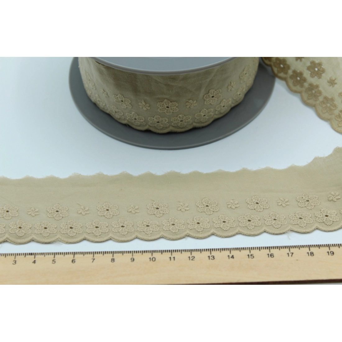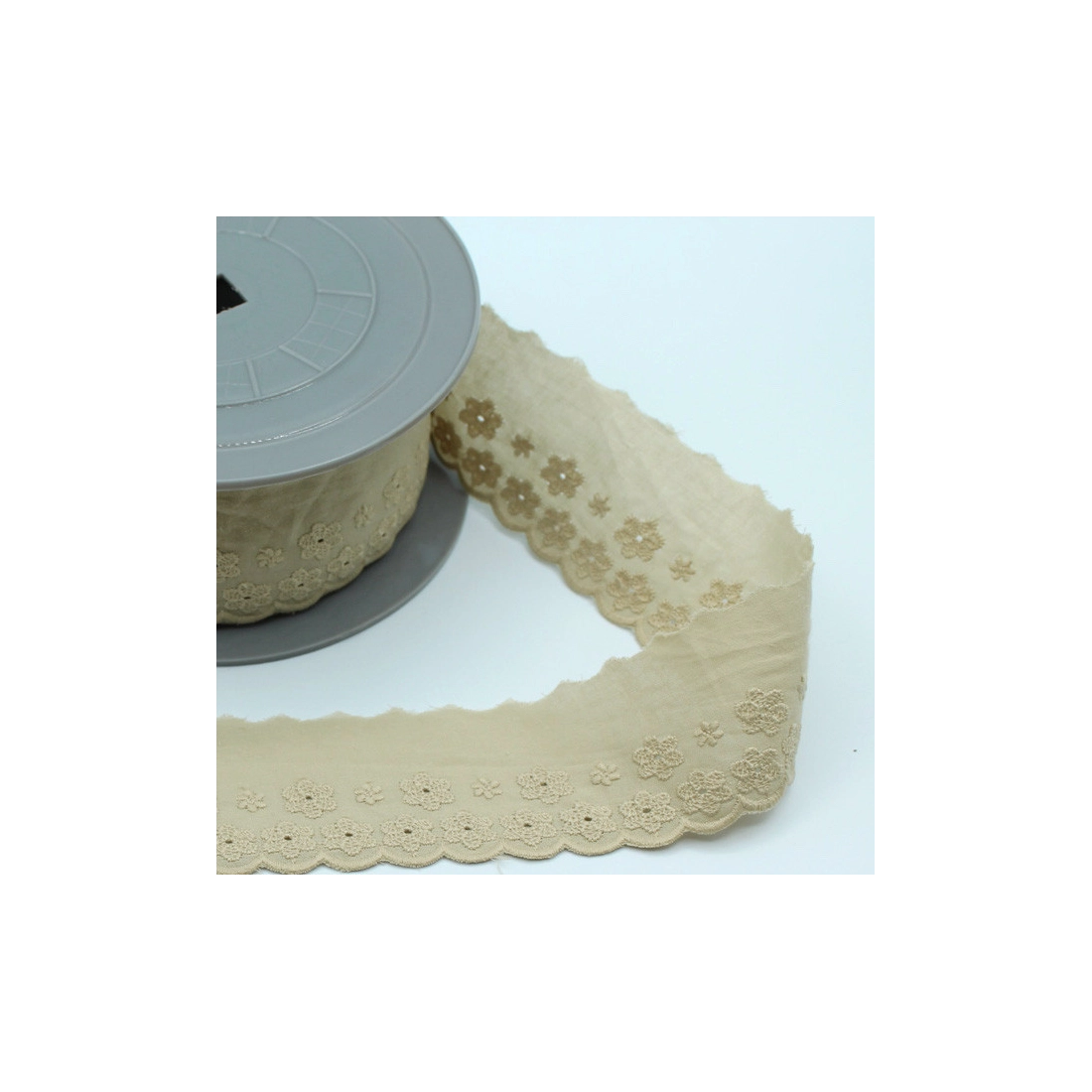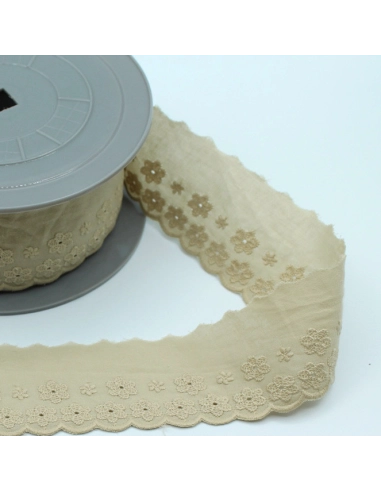Galon coton broderie anglaise brodé 47mm x 1m grège