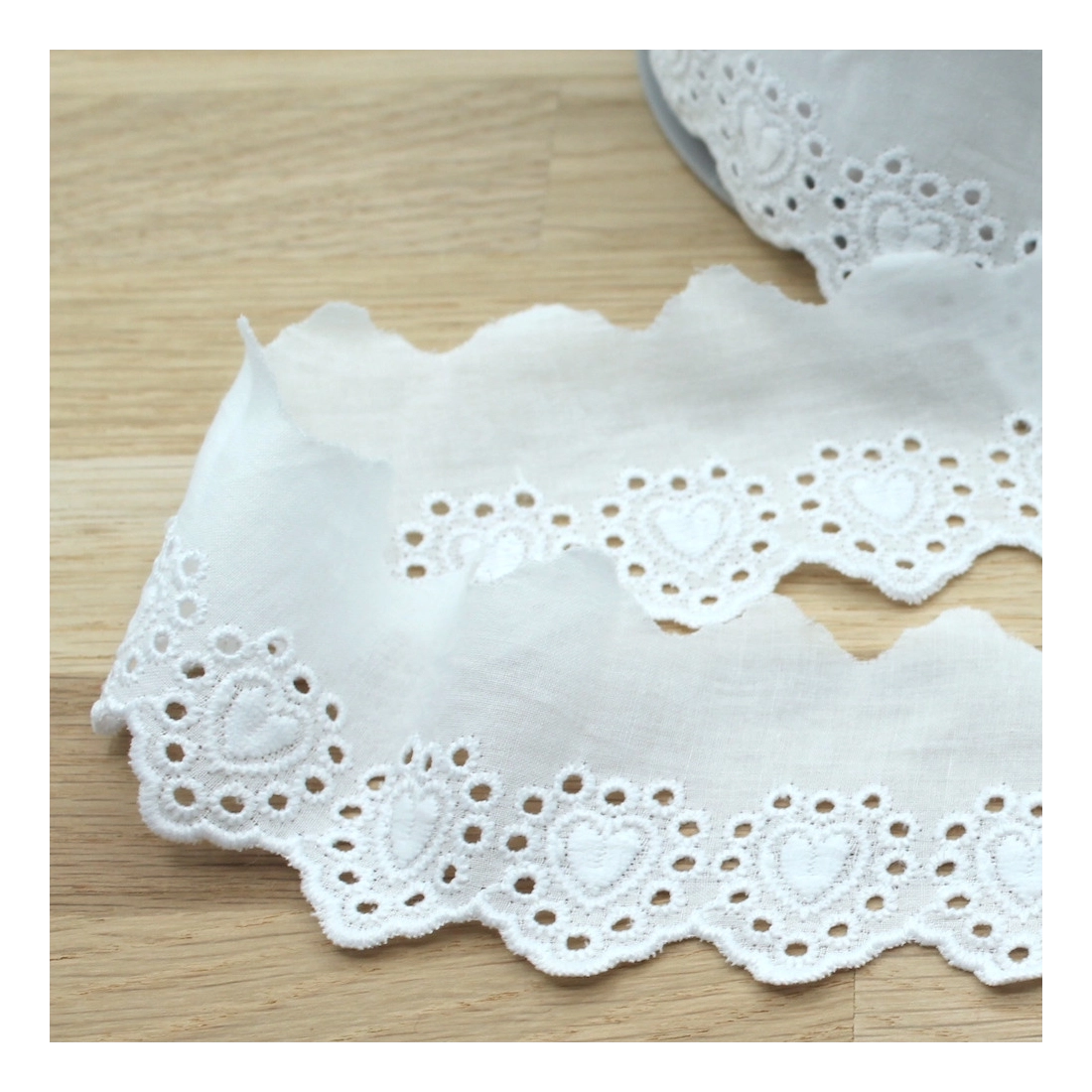 Galon coton broderie anglaise brodé blanc 45mm x 1m