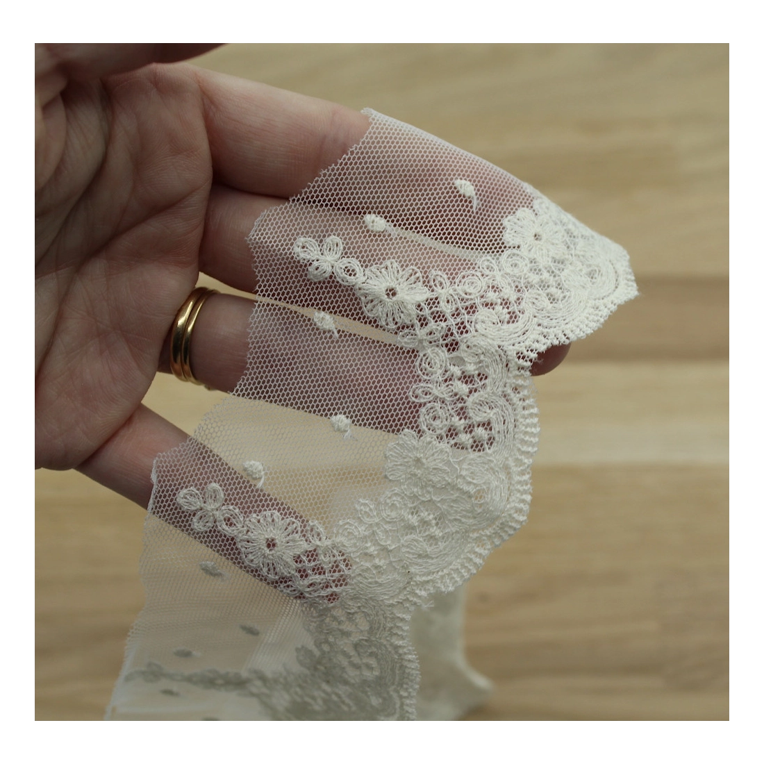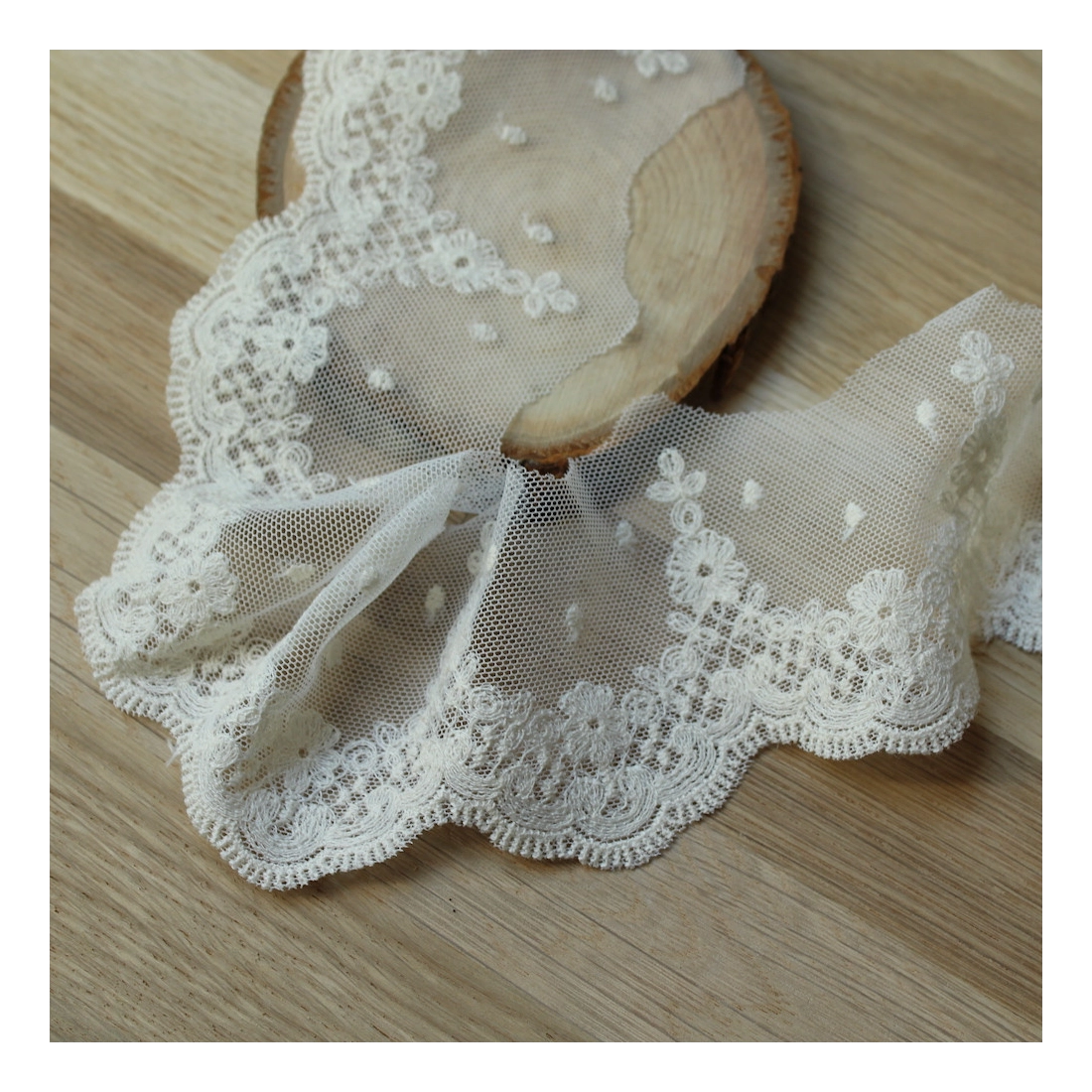 Galon tulle souple broderie coton brodé 60mm x 1m