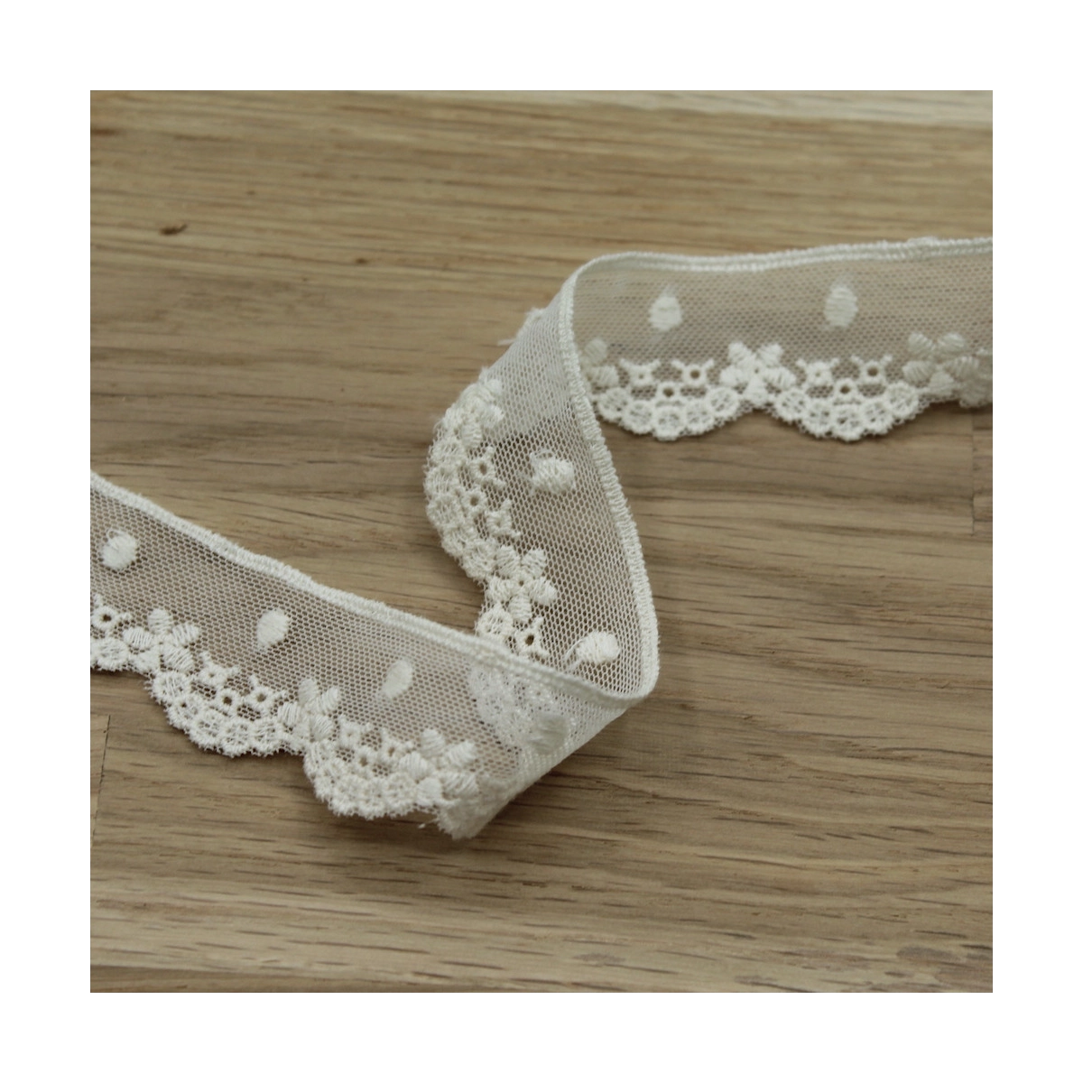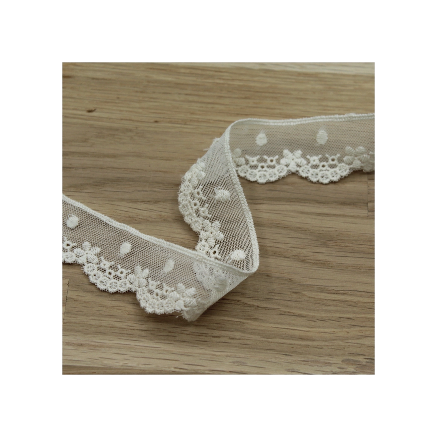 Galon tulle souple broderie coton brodé 30mm x 1m