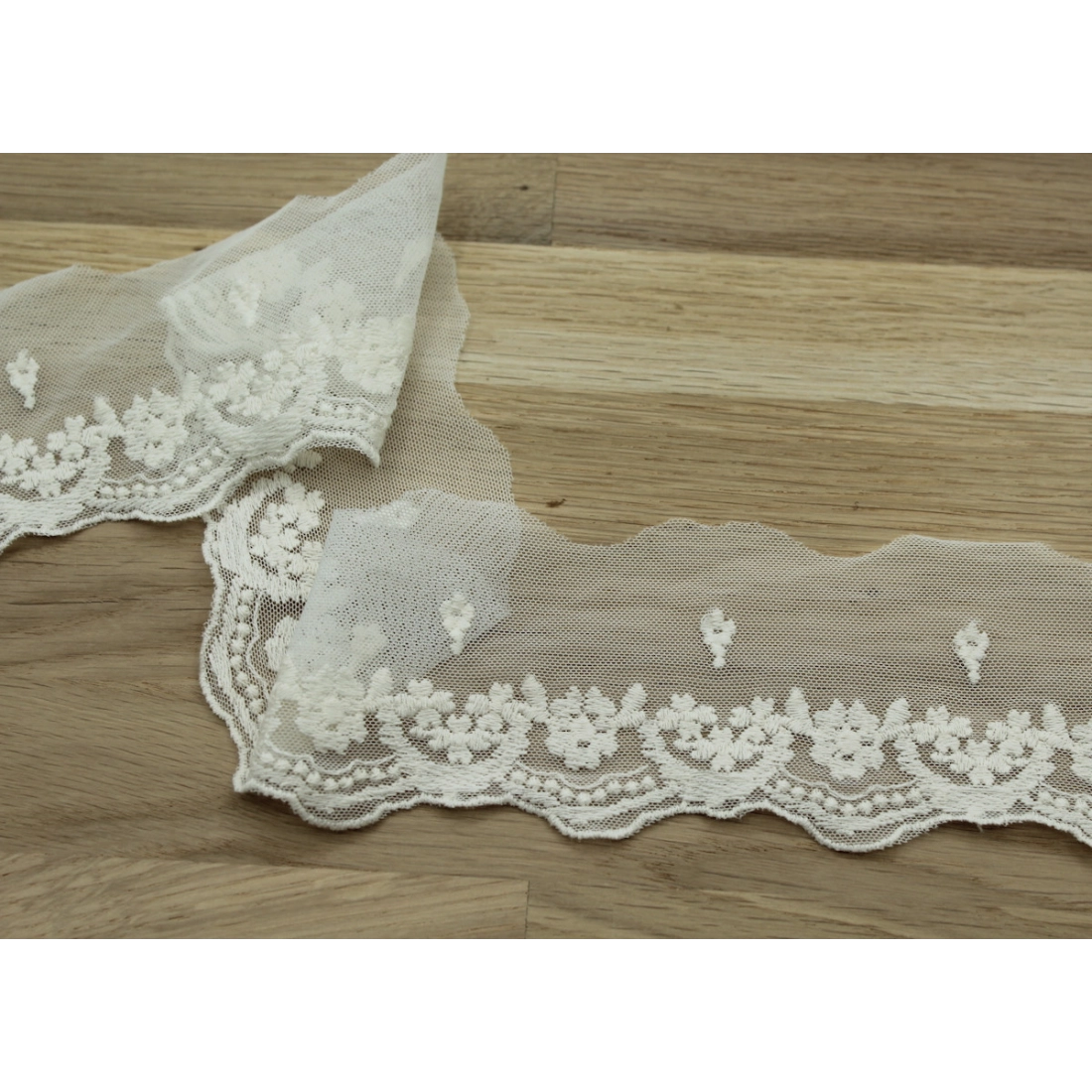 Galon tulle souple broderie coton brodé 70mm x 1m