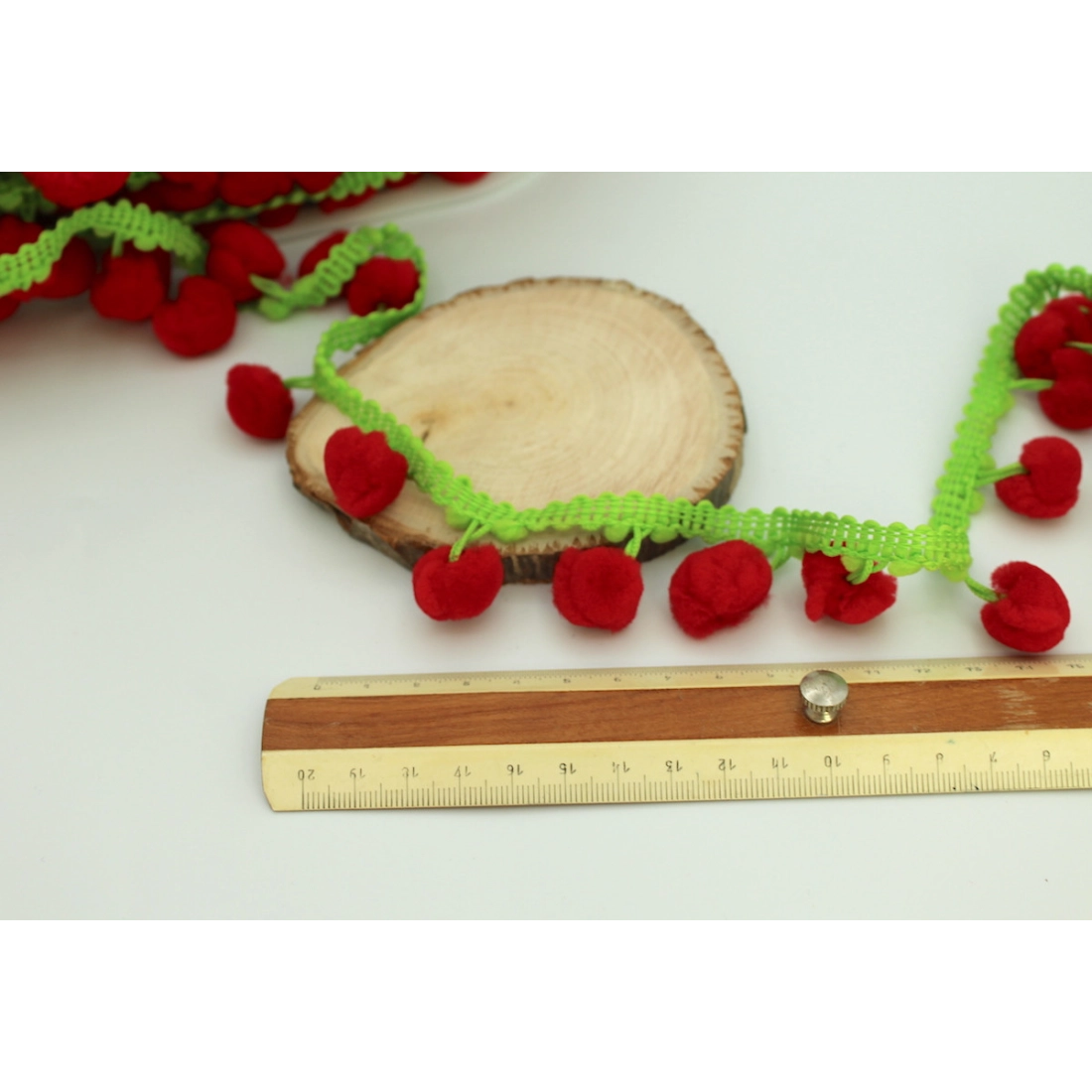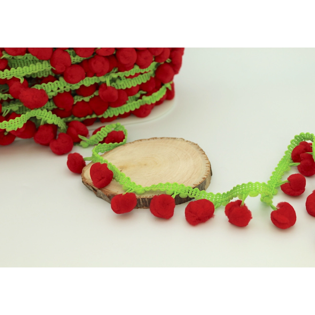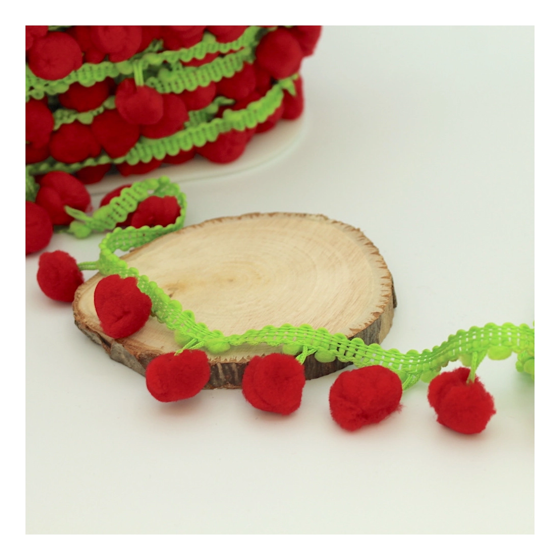 Galon pompons rouges