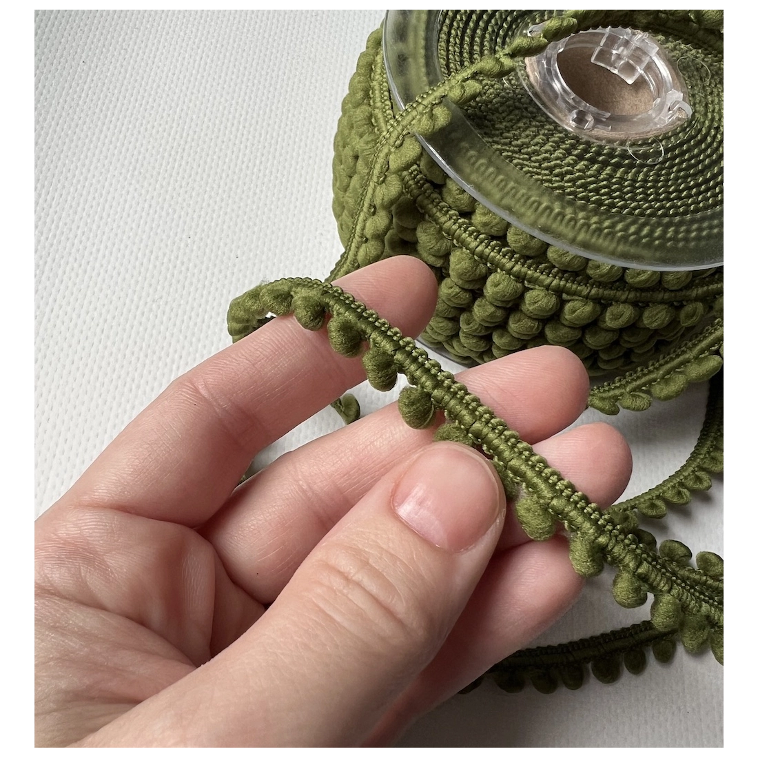 Galon mini pompons 6mm x 1m vert olive