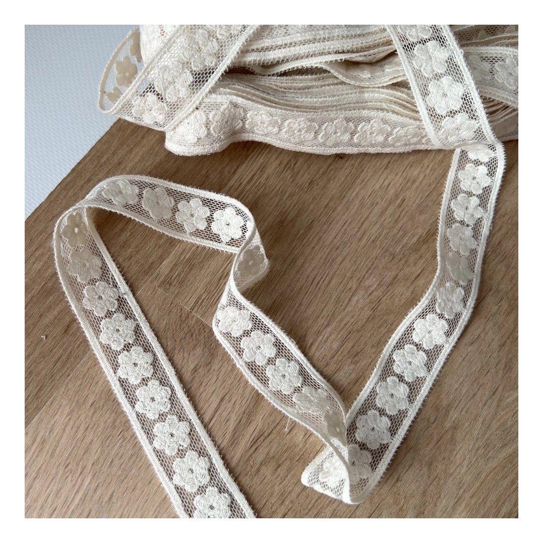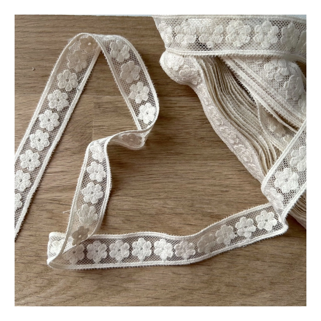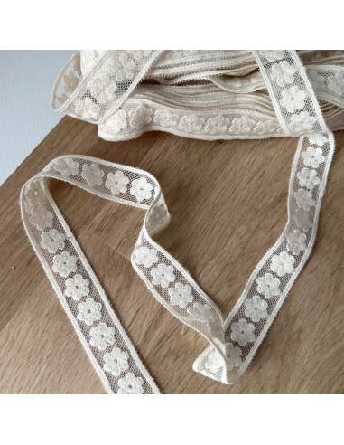 Galon tulle souple écru broderie coton brodé 20mm x 1m