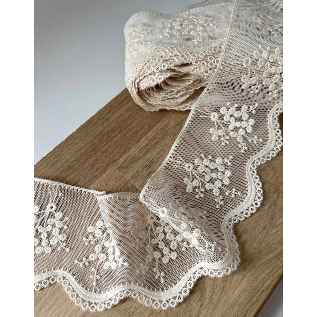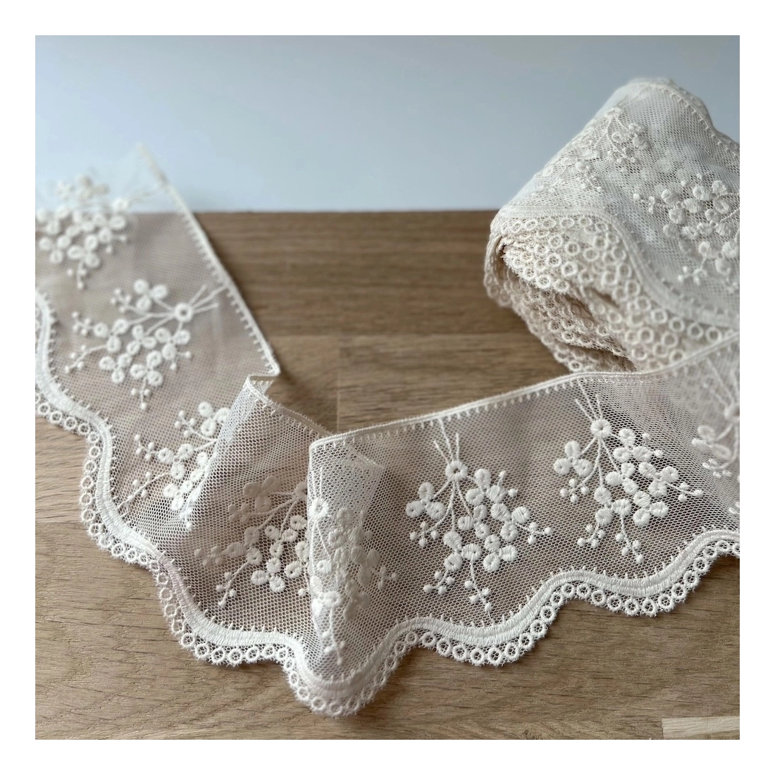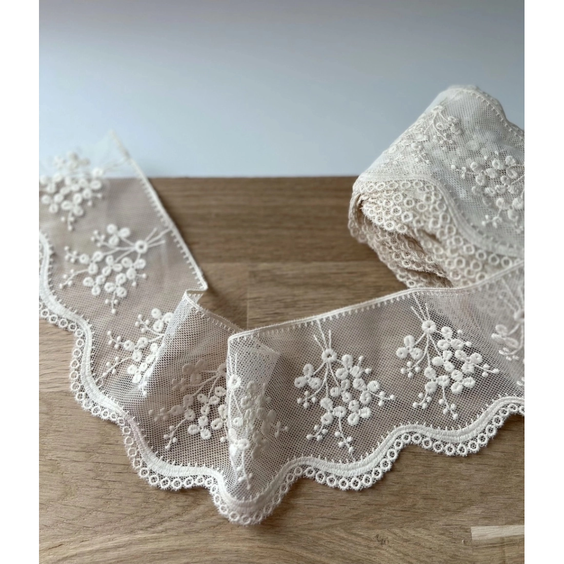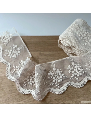 Galon tulle souple crème broderie coton brodé 80mm x 1m