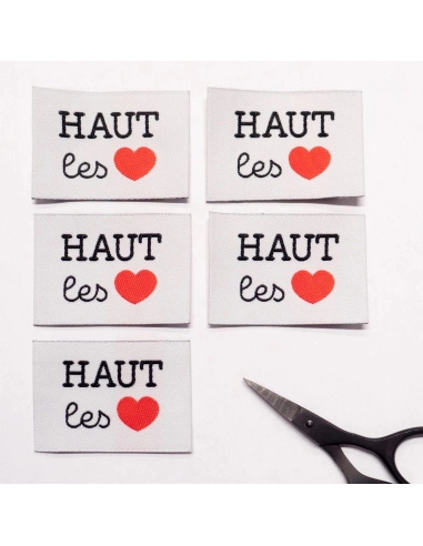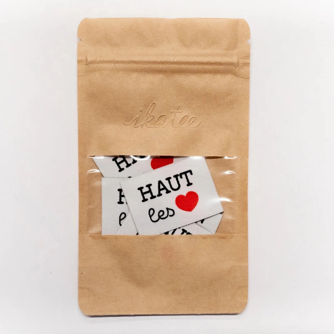 - Avec les étiquettes "Haut les Coeurs" ©ikatee, ajoutez une touche personnelle et expressive à vos créations. Parfaites pour des vêtements ou accessoires uniques, elles sont disponibles chez Batikou.
