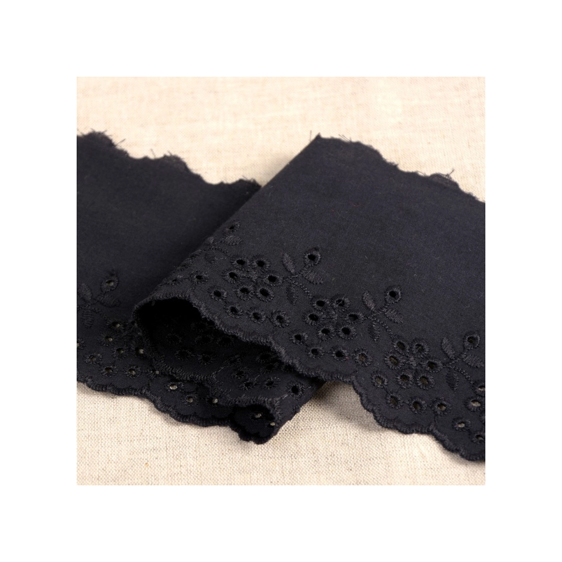 Galon coton broderie anglaise 95mm x 1m Noir