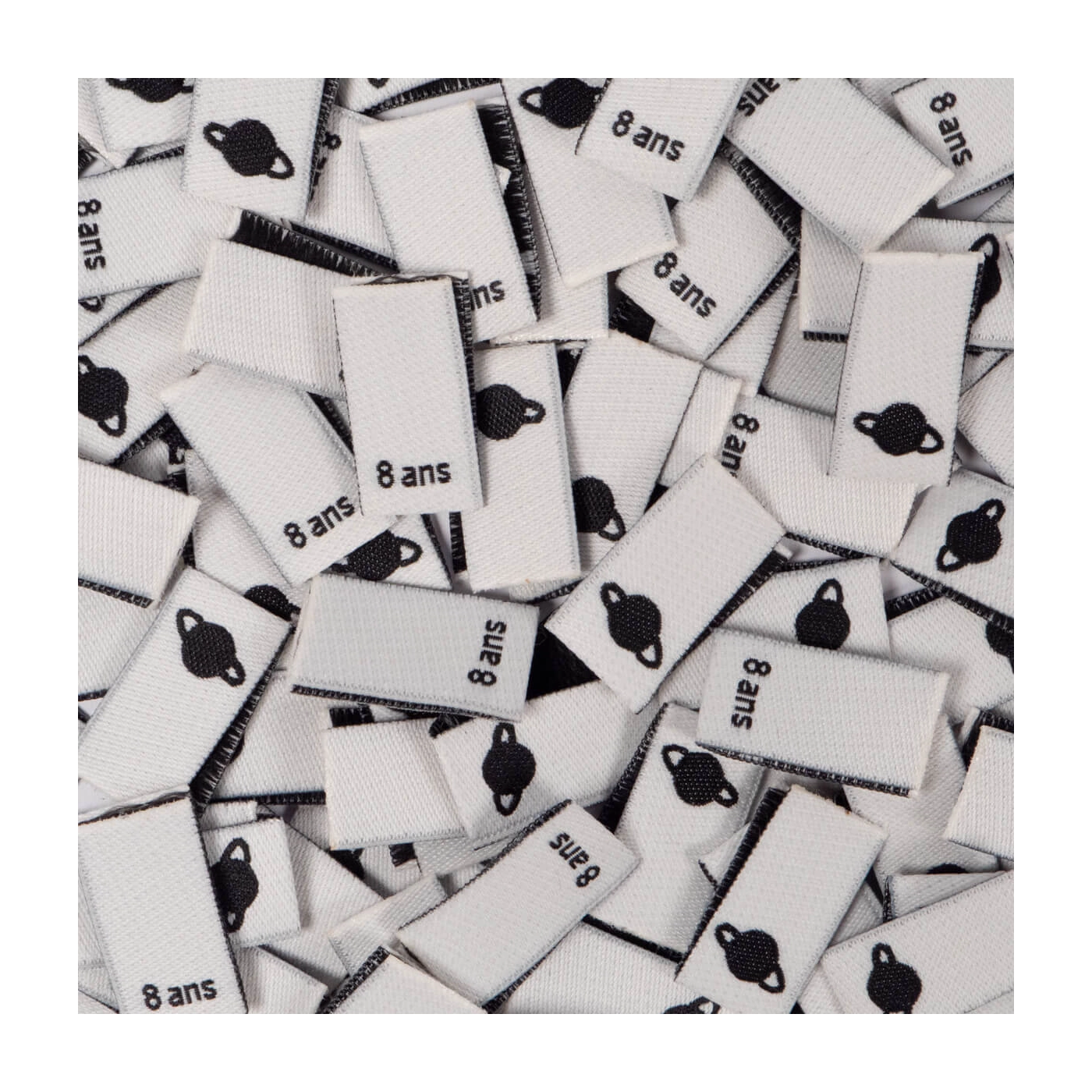 Coloris : étiquette blanc cassé et écriture noire.