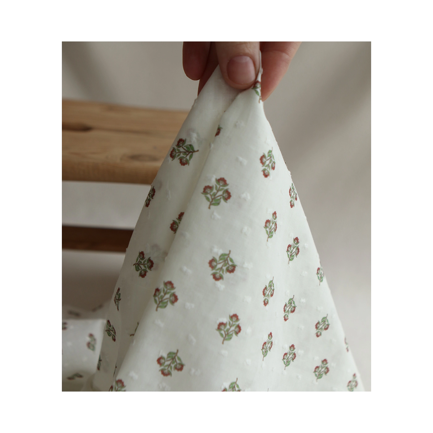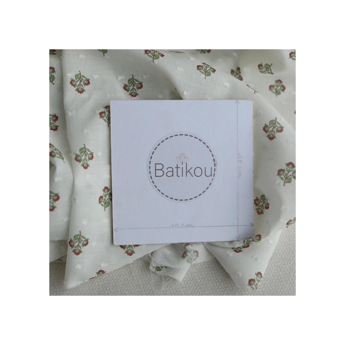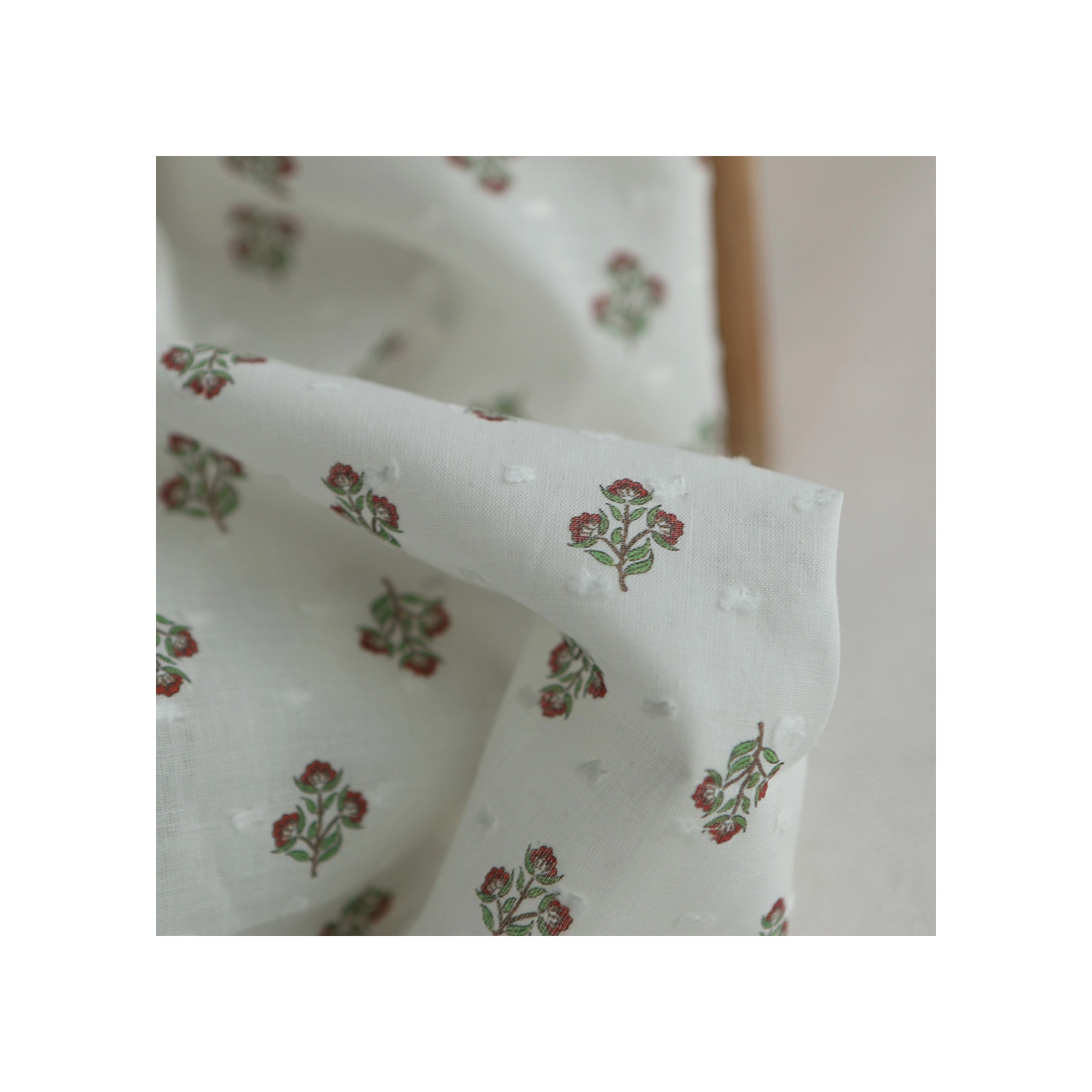 Hazel - Plumetis de coton imprimé fleuri vert et rouge