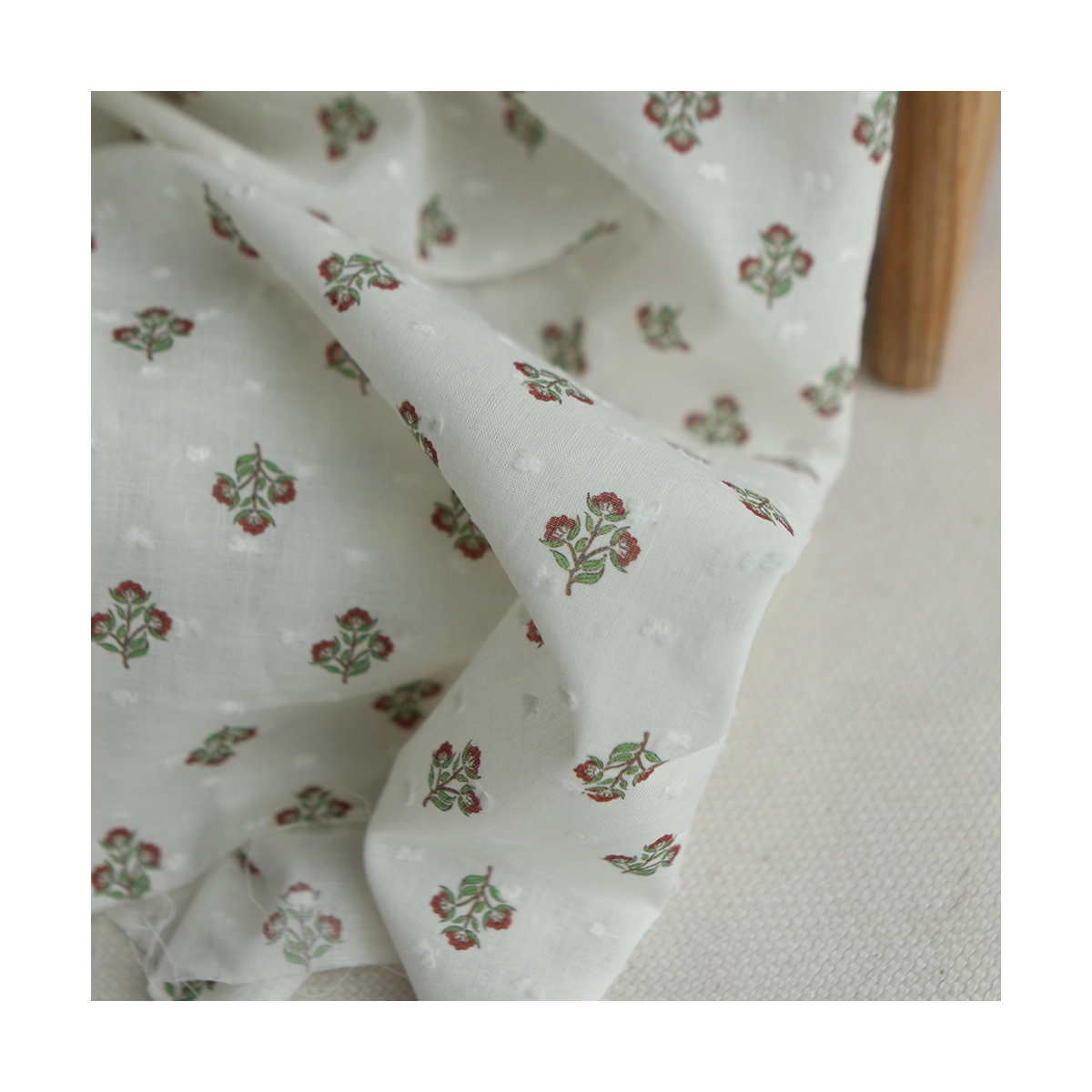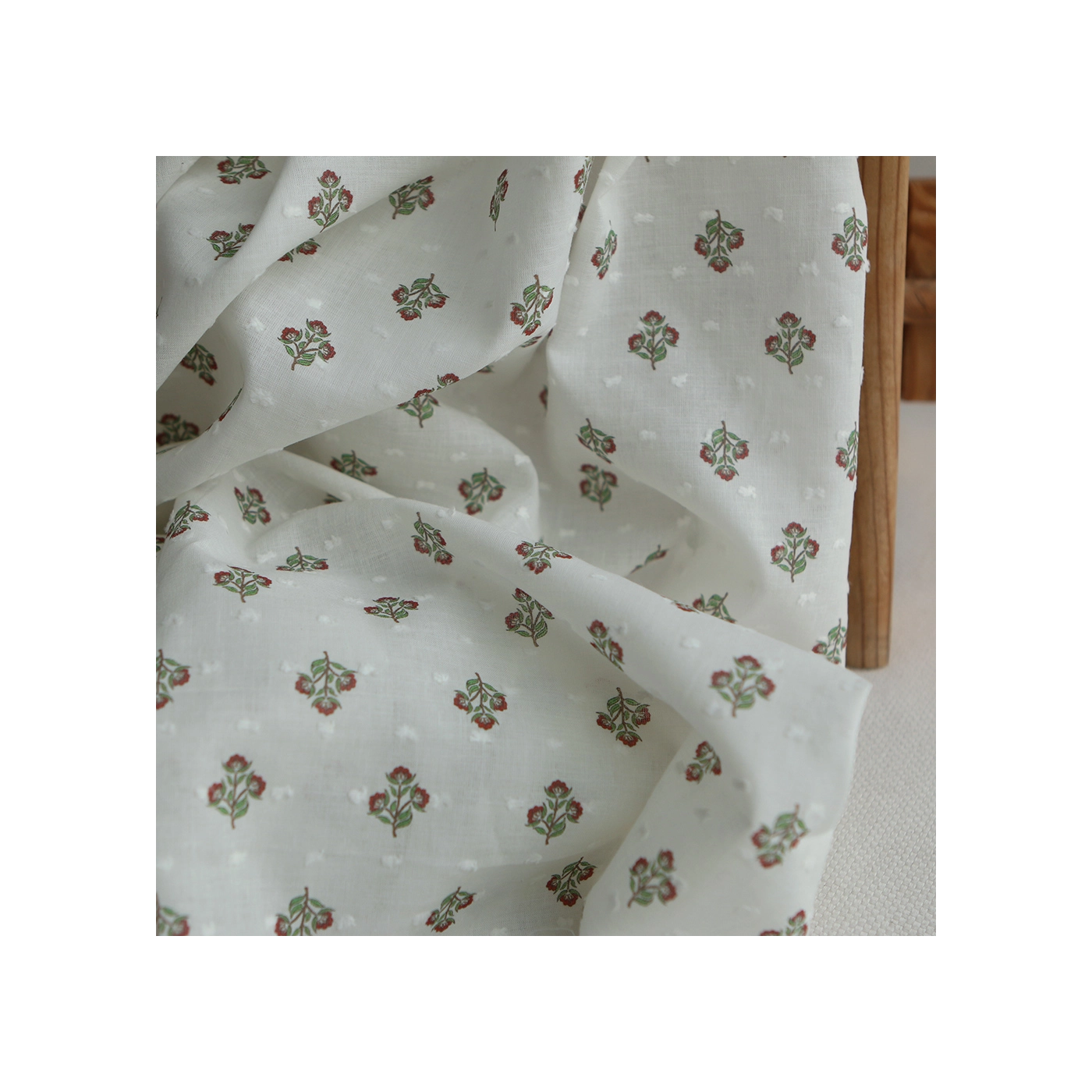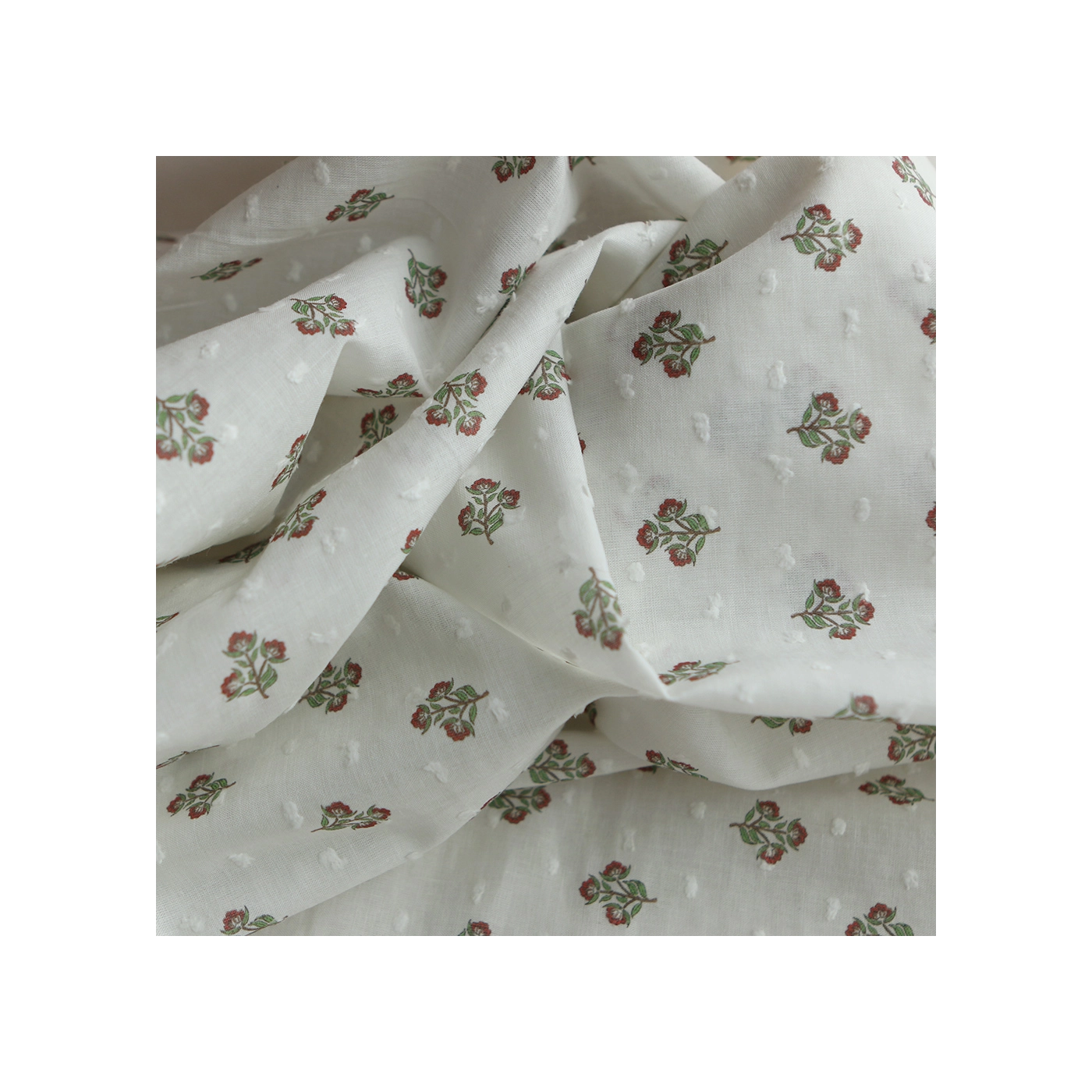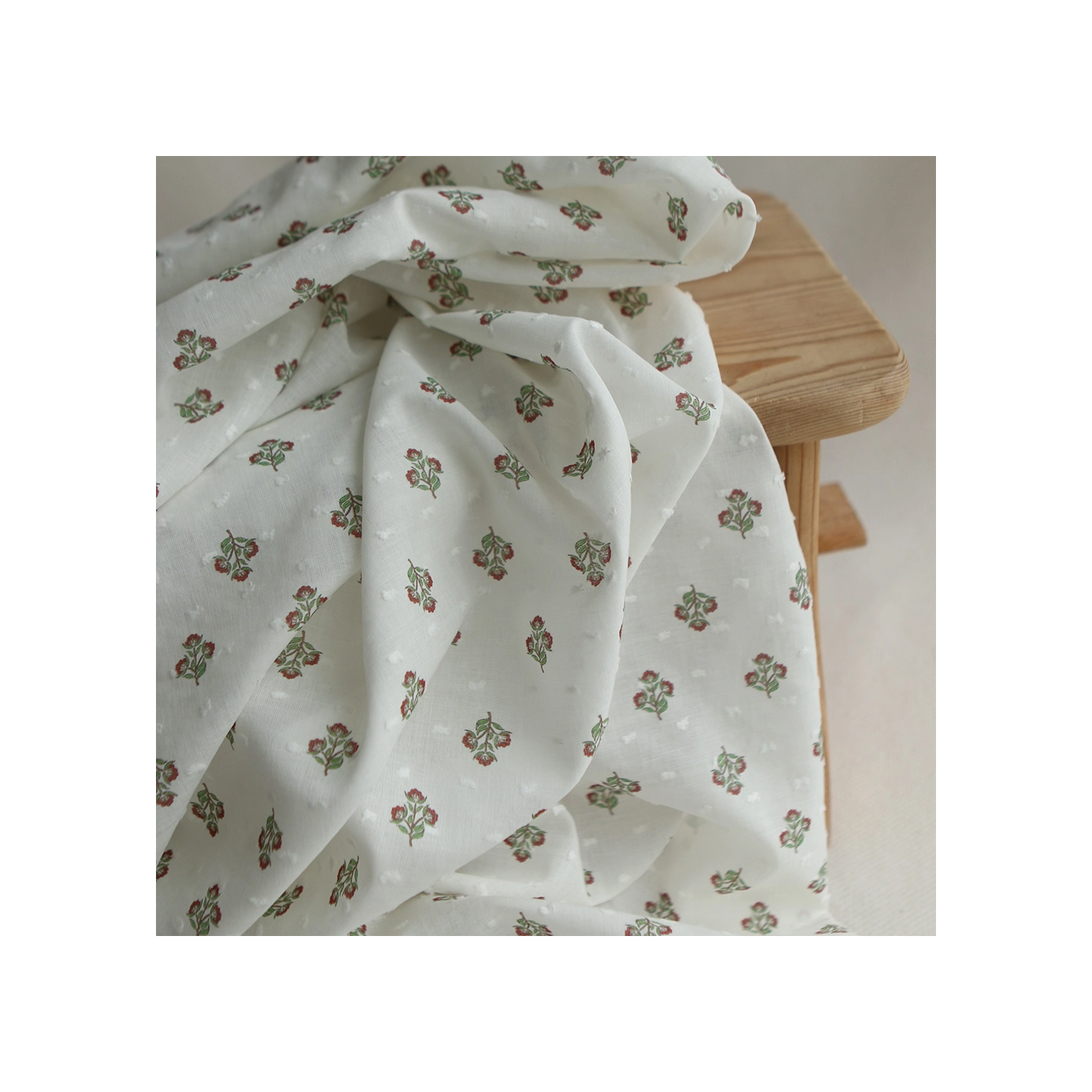 Hazel - Plumetis de coton imprimé fleuri vert et rouge