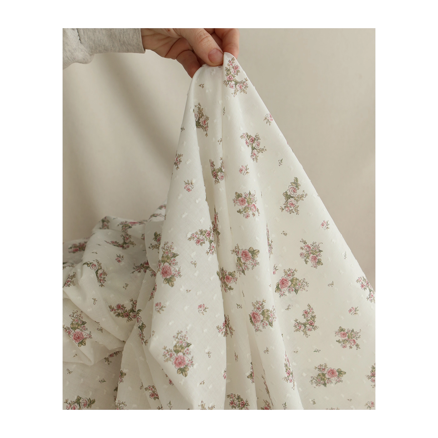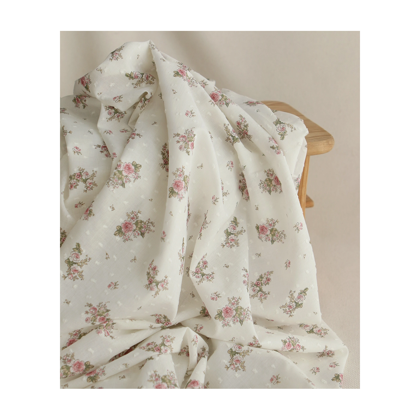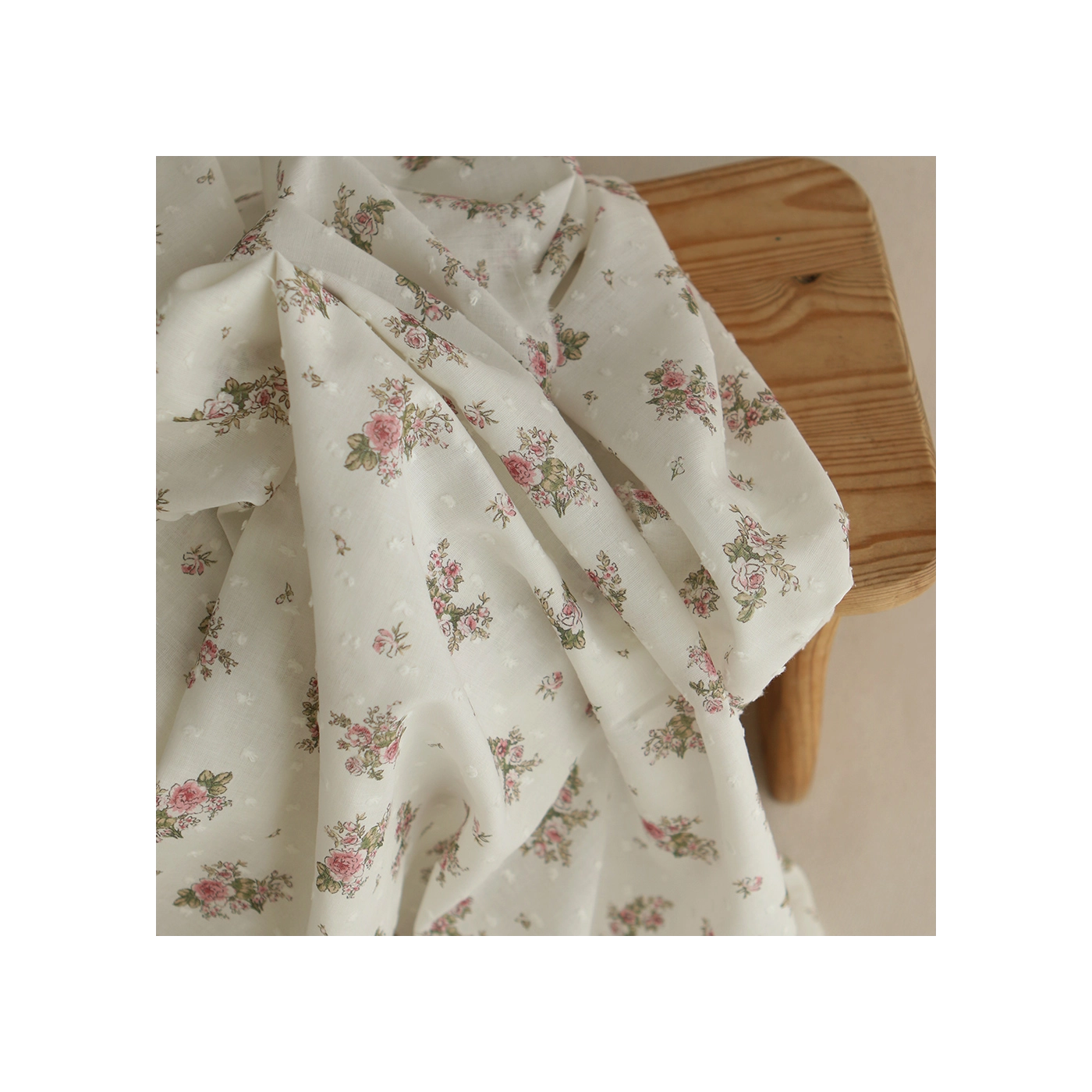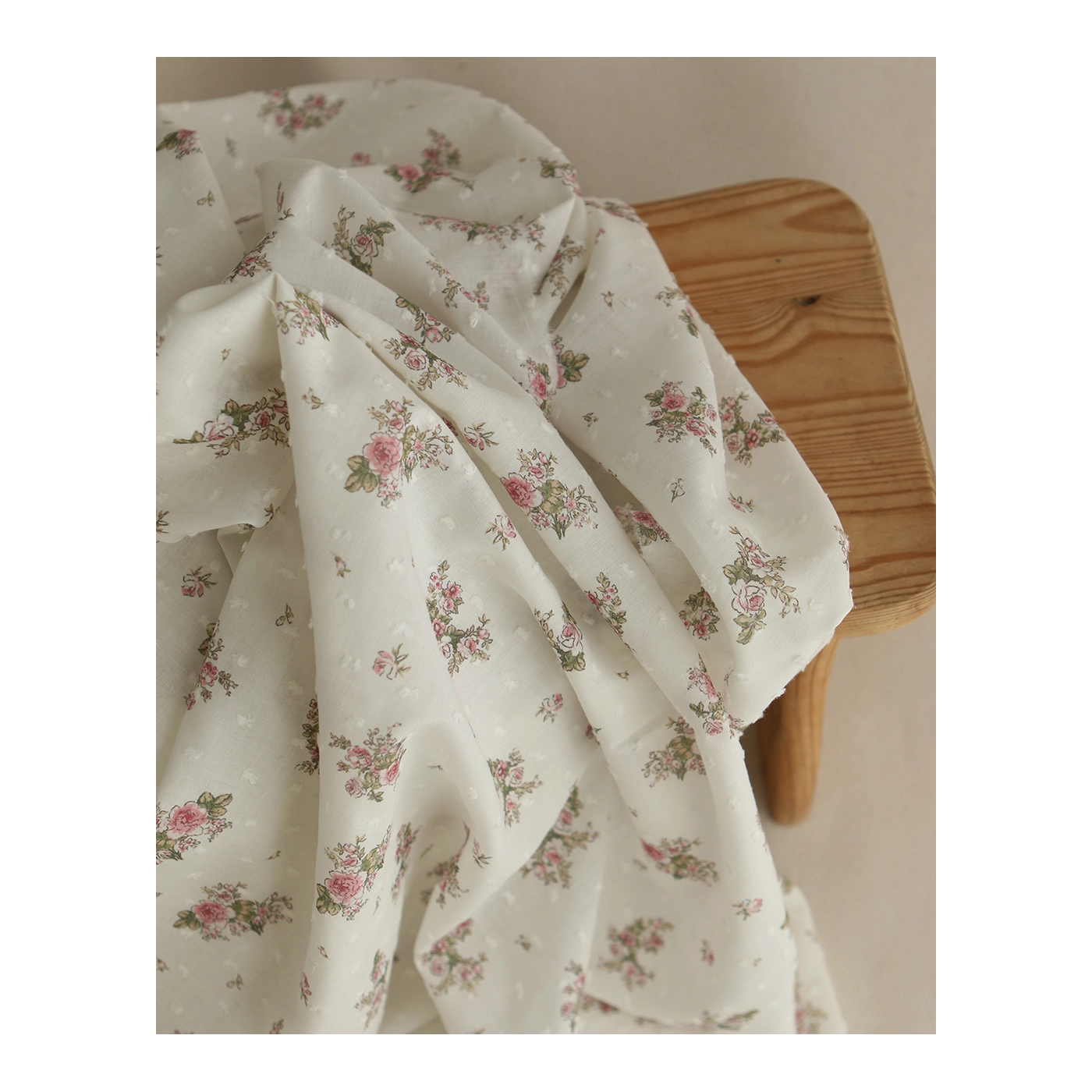 Felicity - Plumetis de coton imprimé fleuri vert et rose