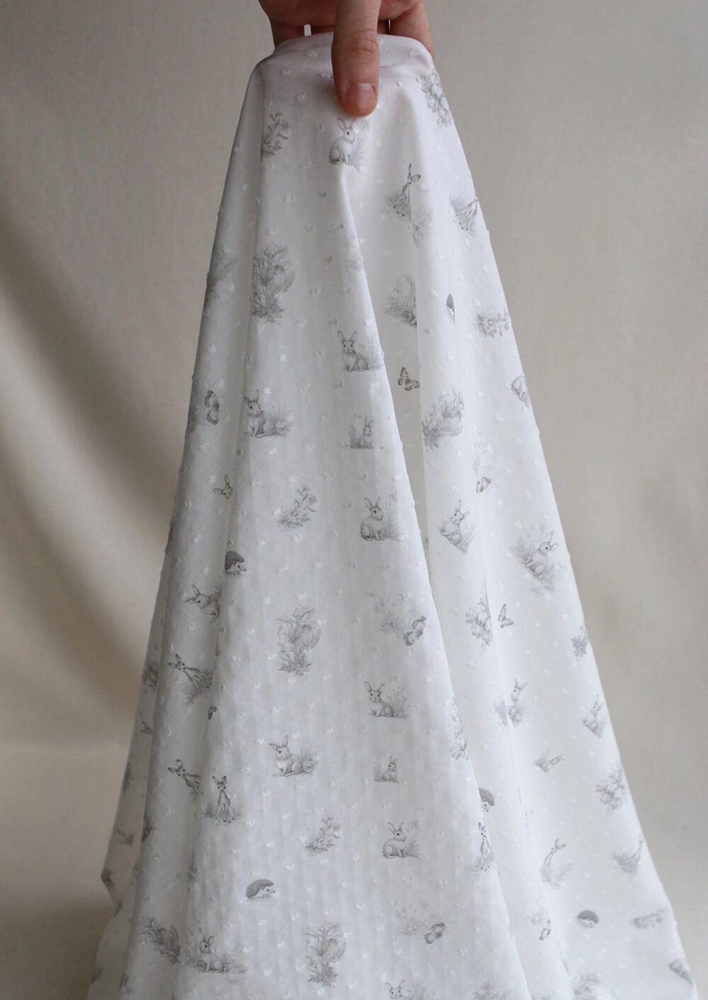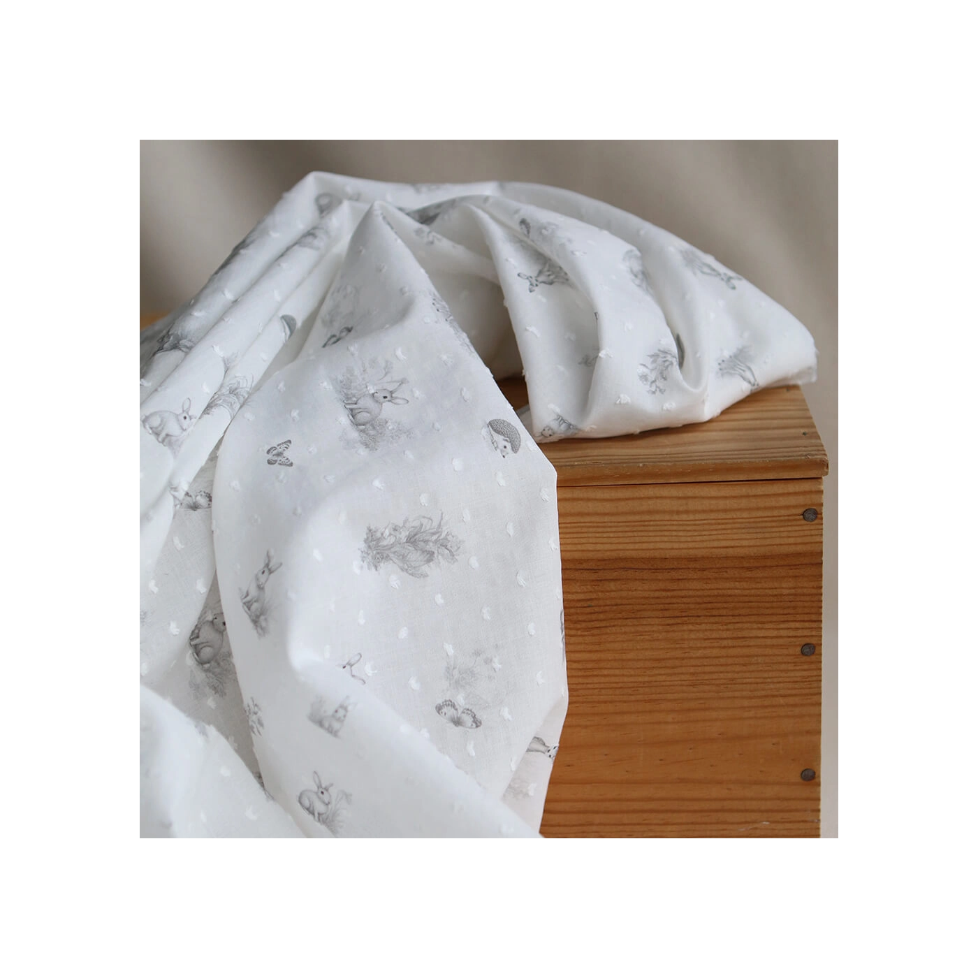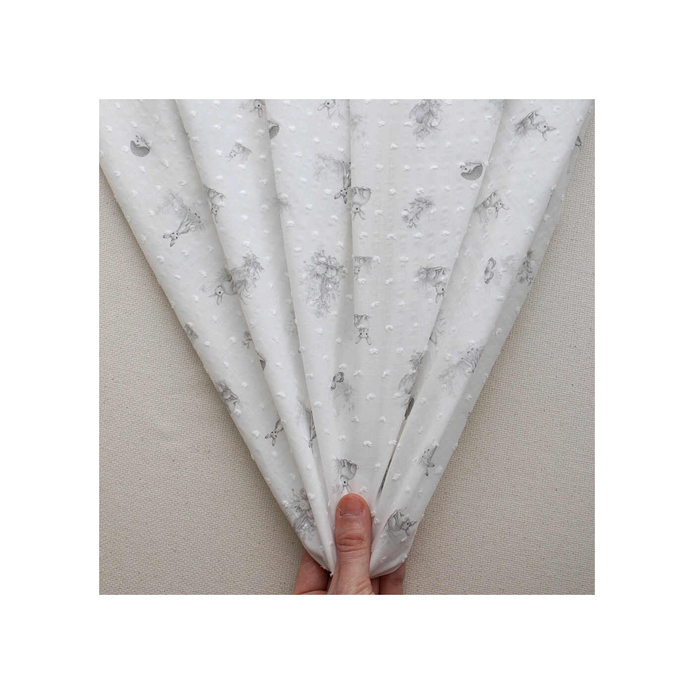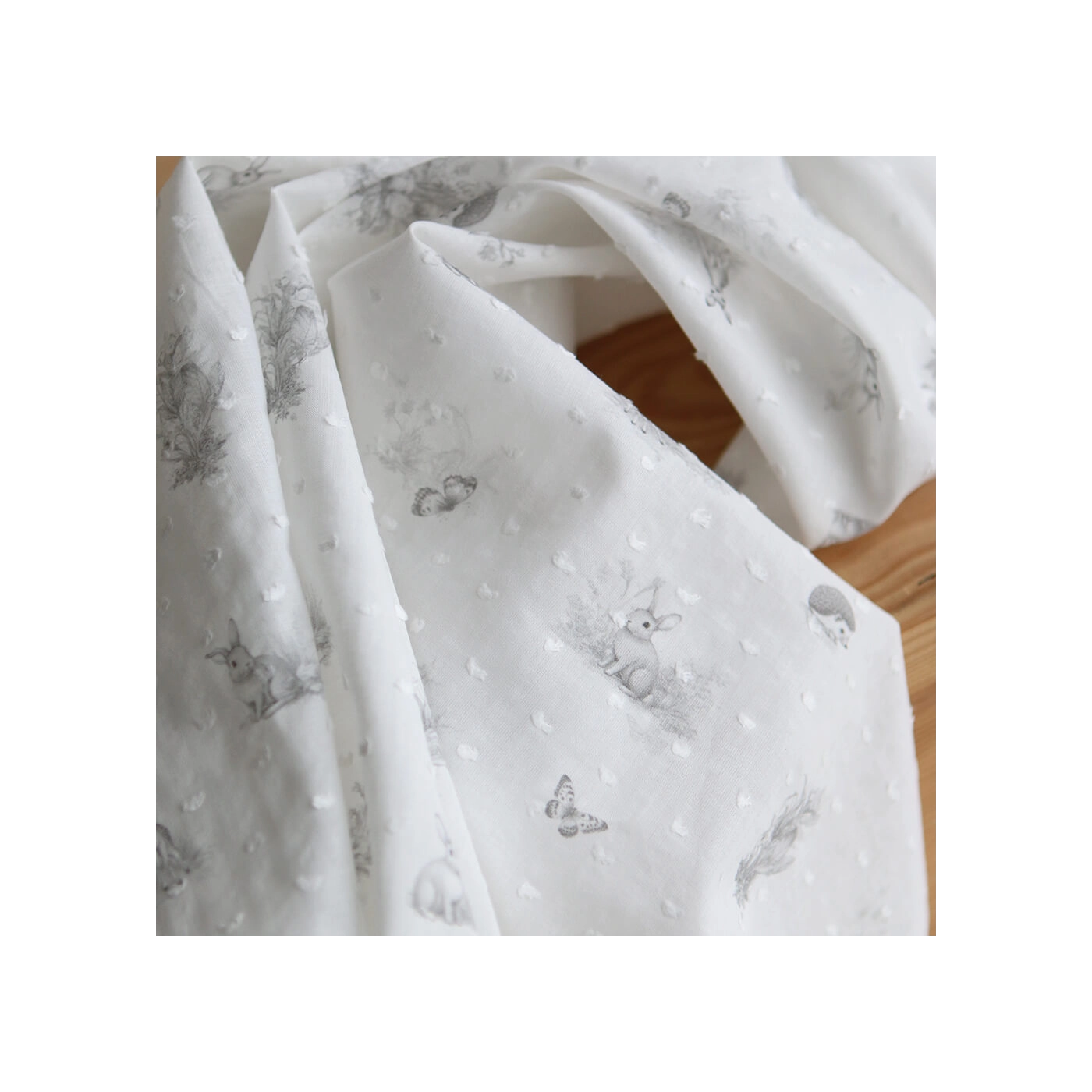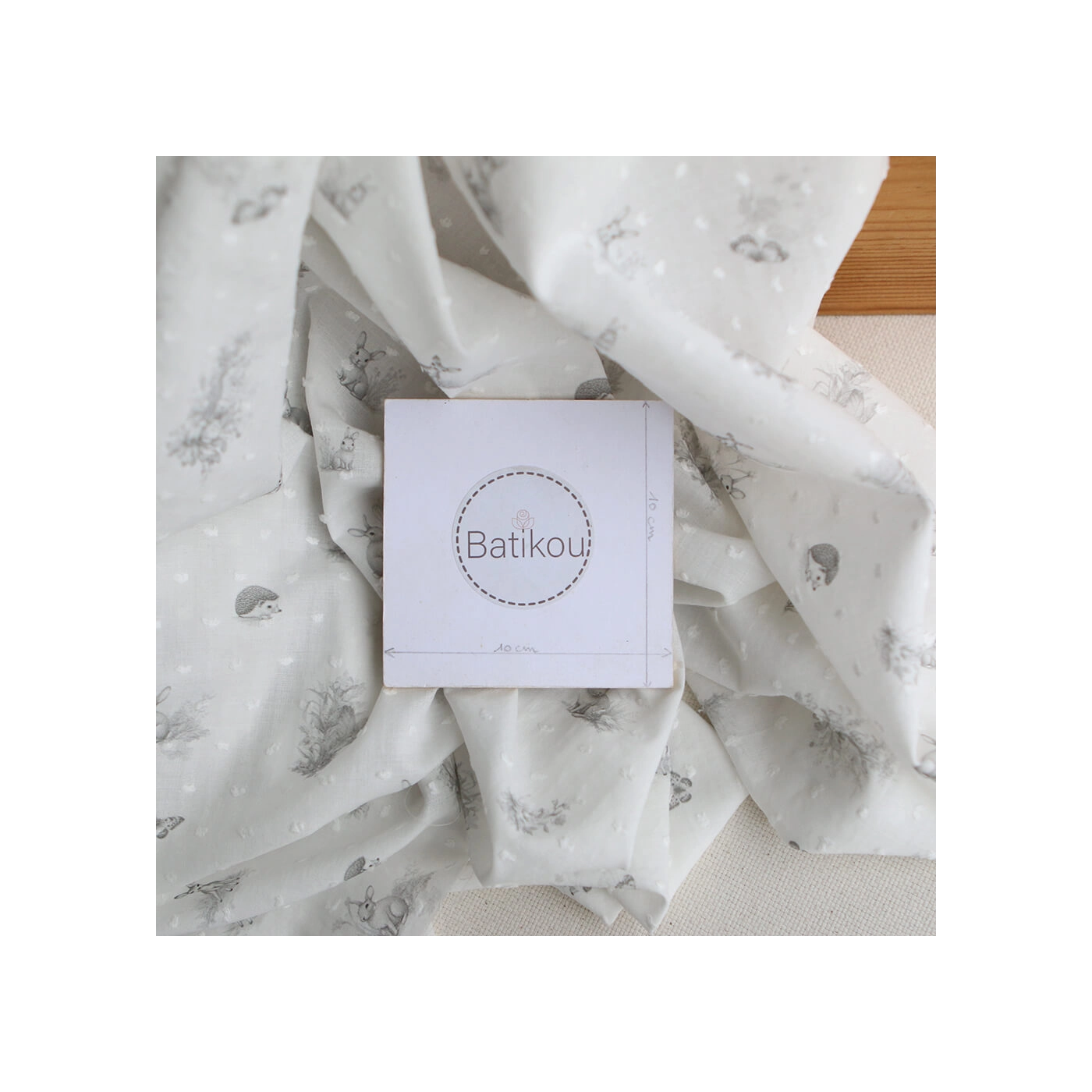 Voile plumetis de coton broderies motif crème coloris bleu ciel