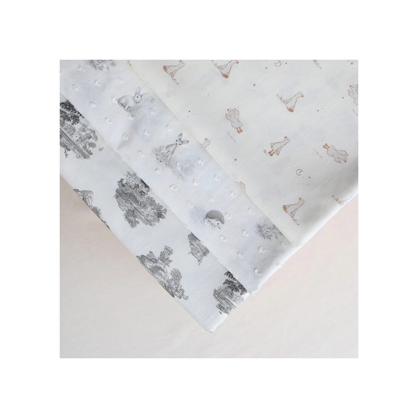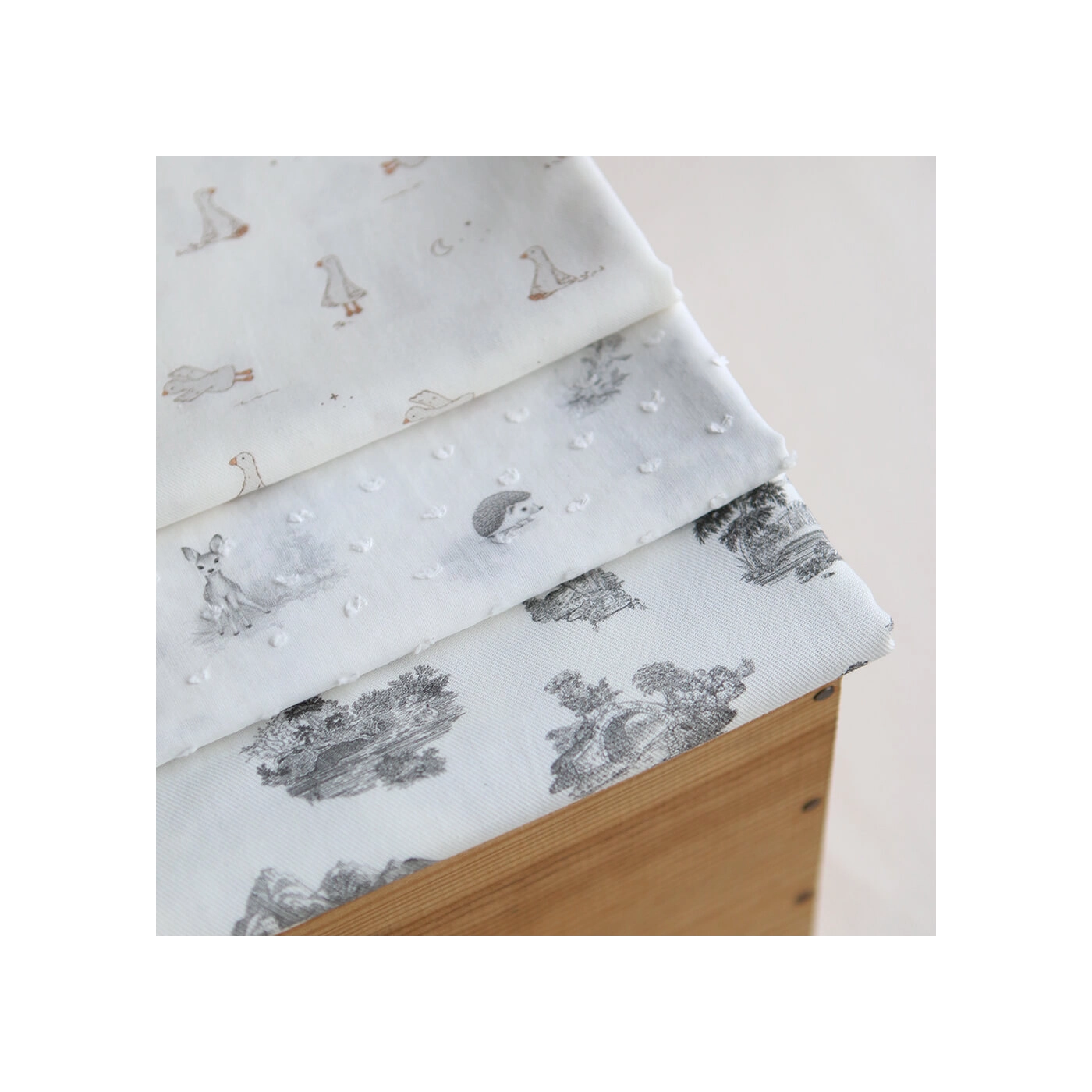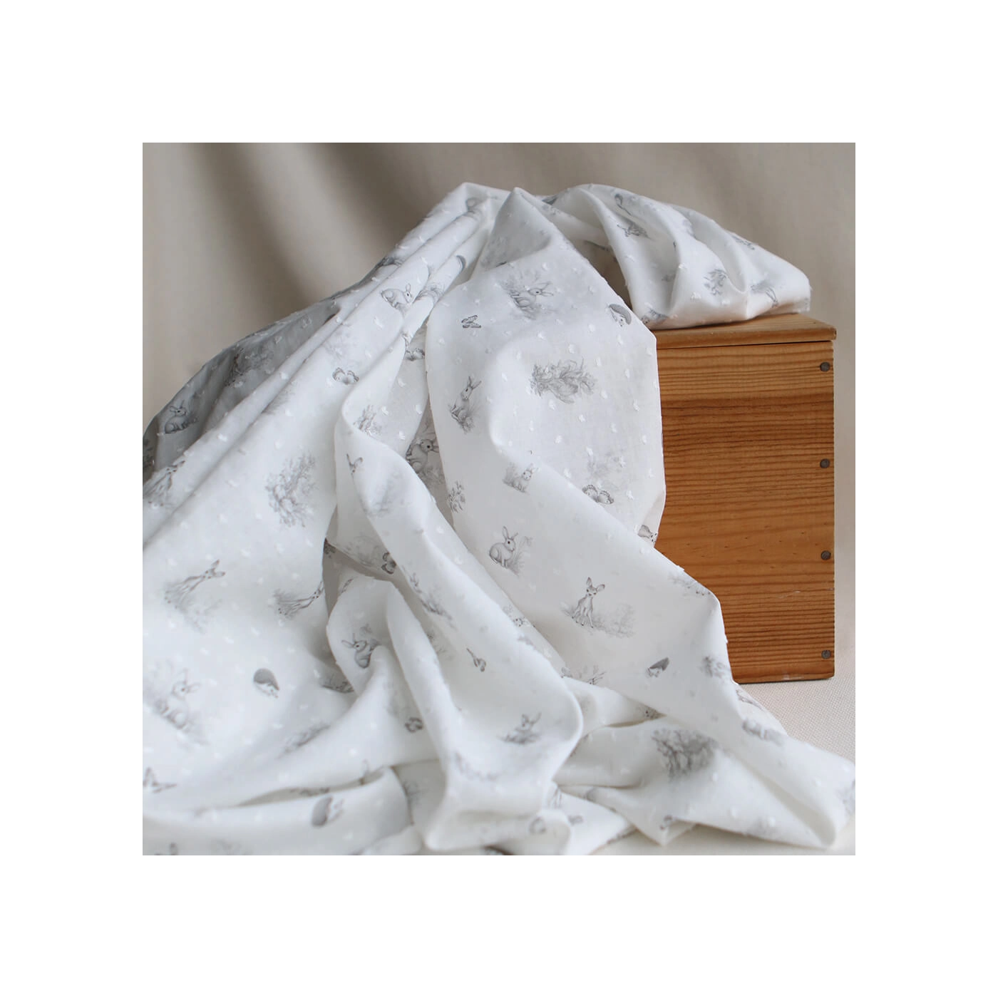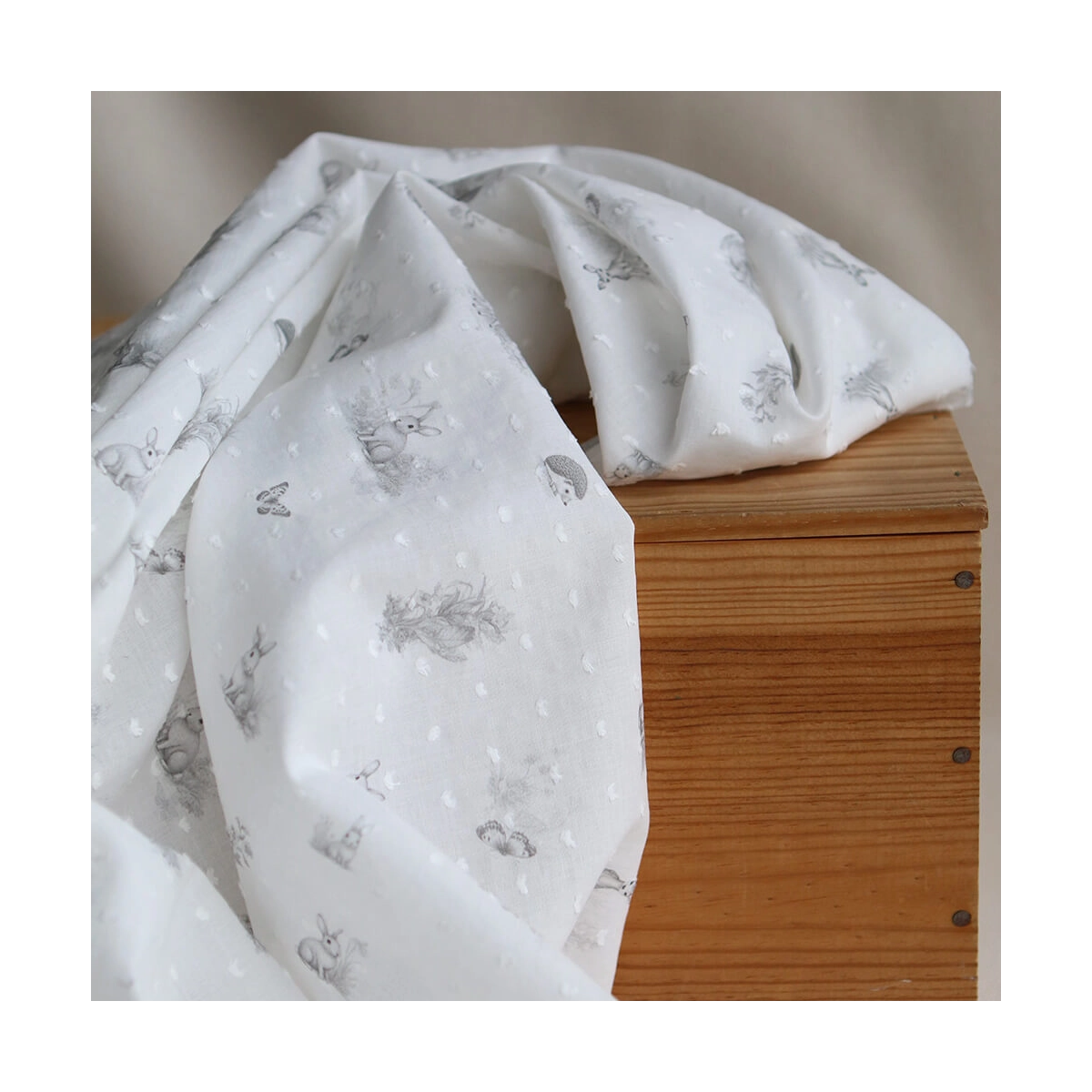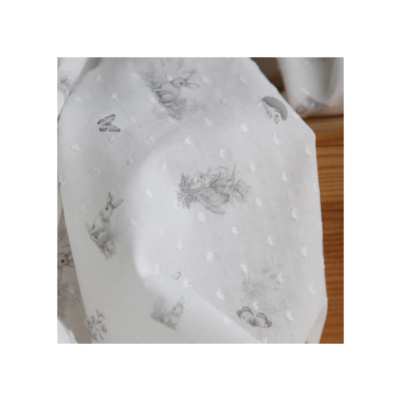 Voile plumetis de coton broderies motif crème coloris bleu ciel