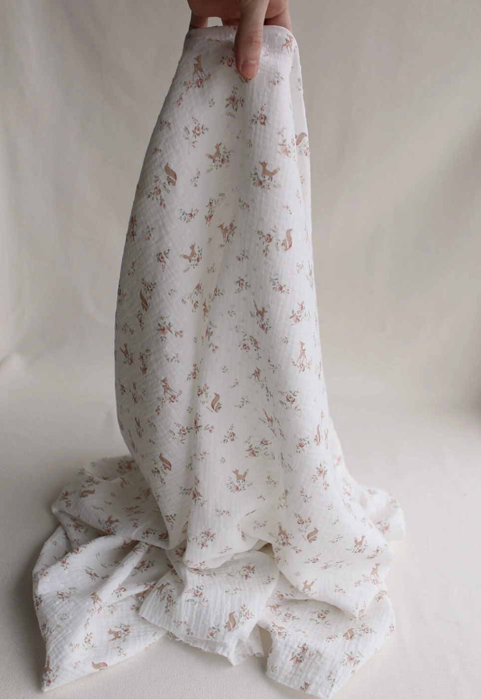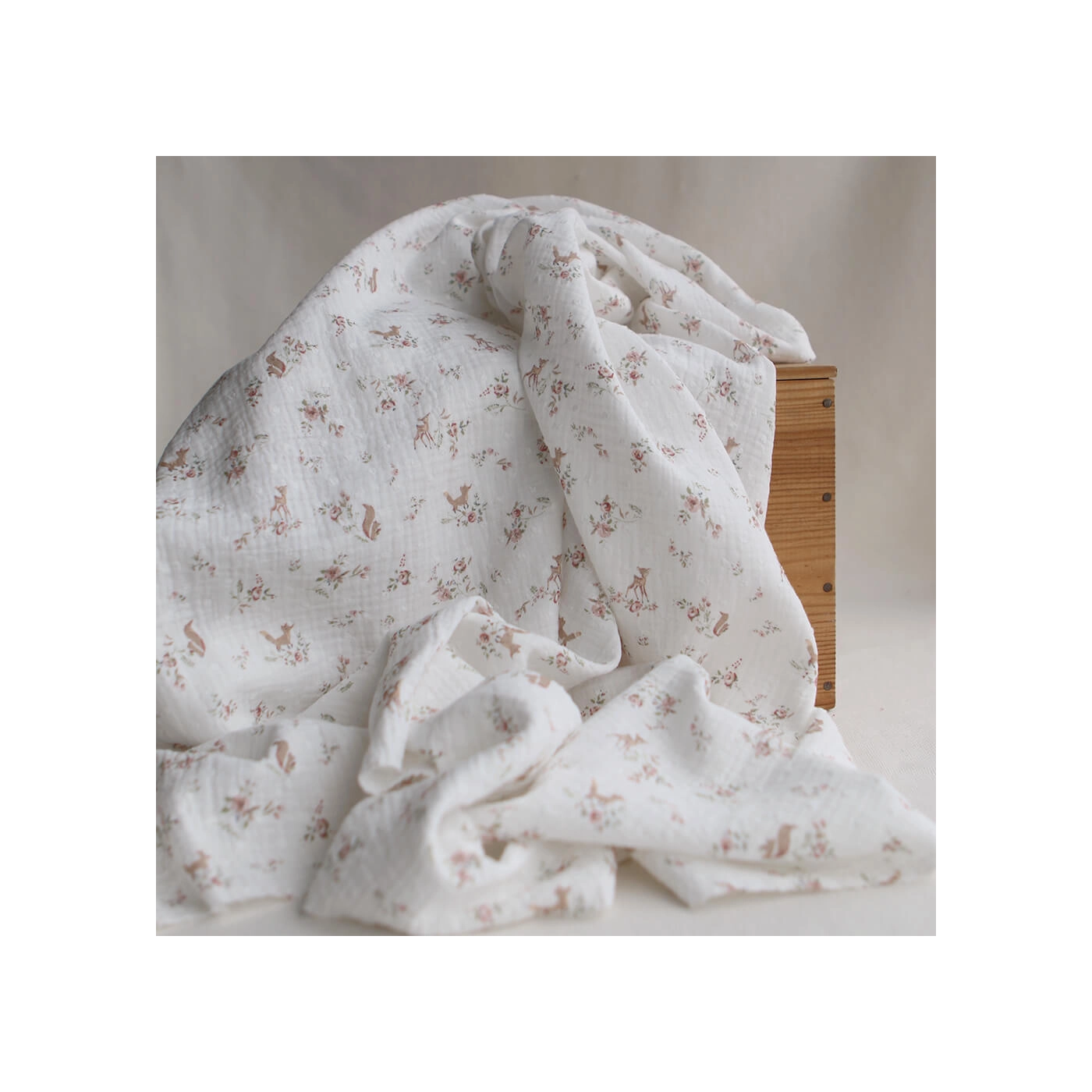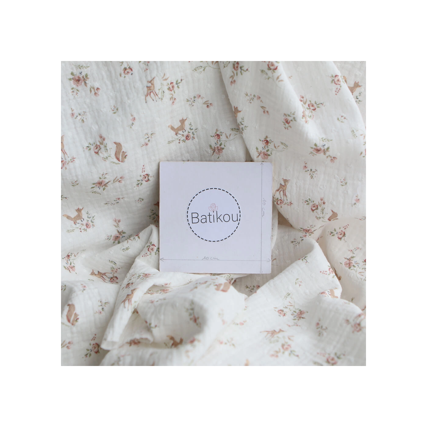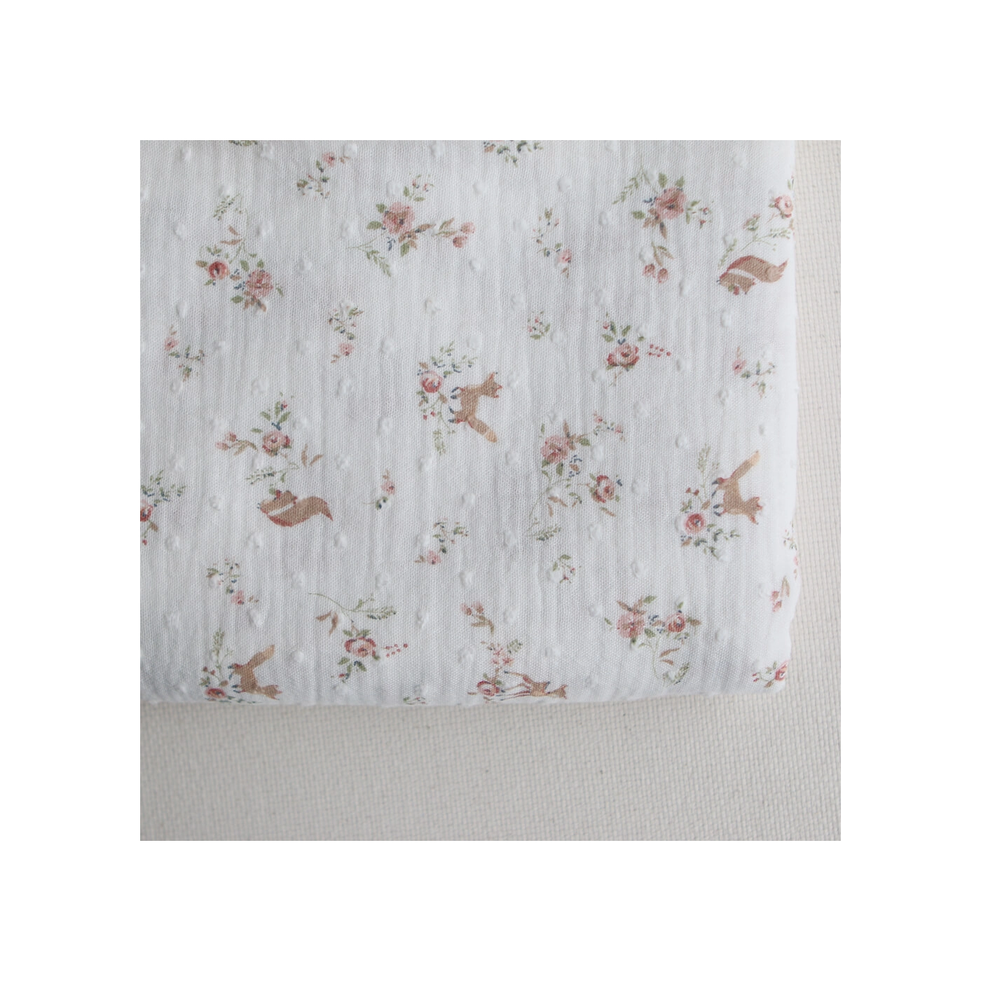 Noisette - Double gaze de coton plumetis imprimé renards et écureuils