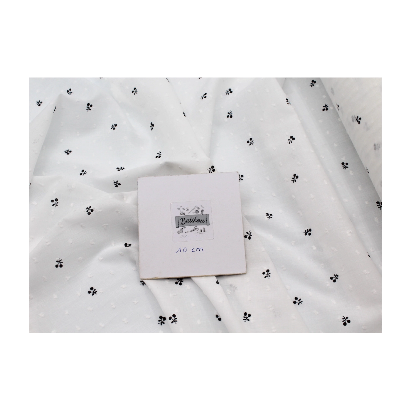 La photo avec le carré blanc permet d'avoir un repère de mesure (le carré fait 10cm de côté) et de couleur, en effet il est blanc optique. Cette indication peut vous permettre de mieux percevoir le rendu du tissu.