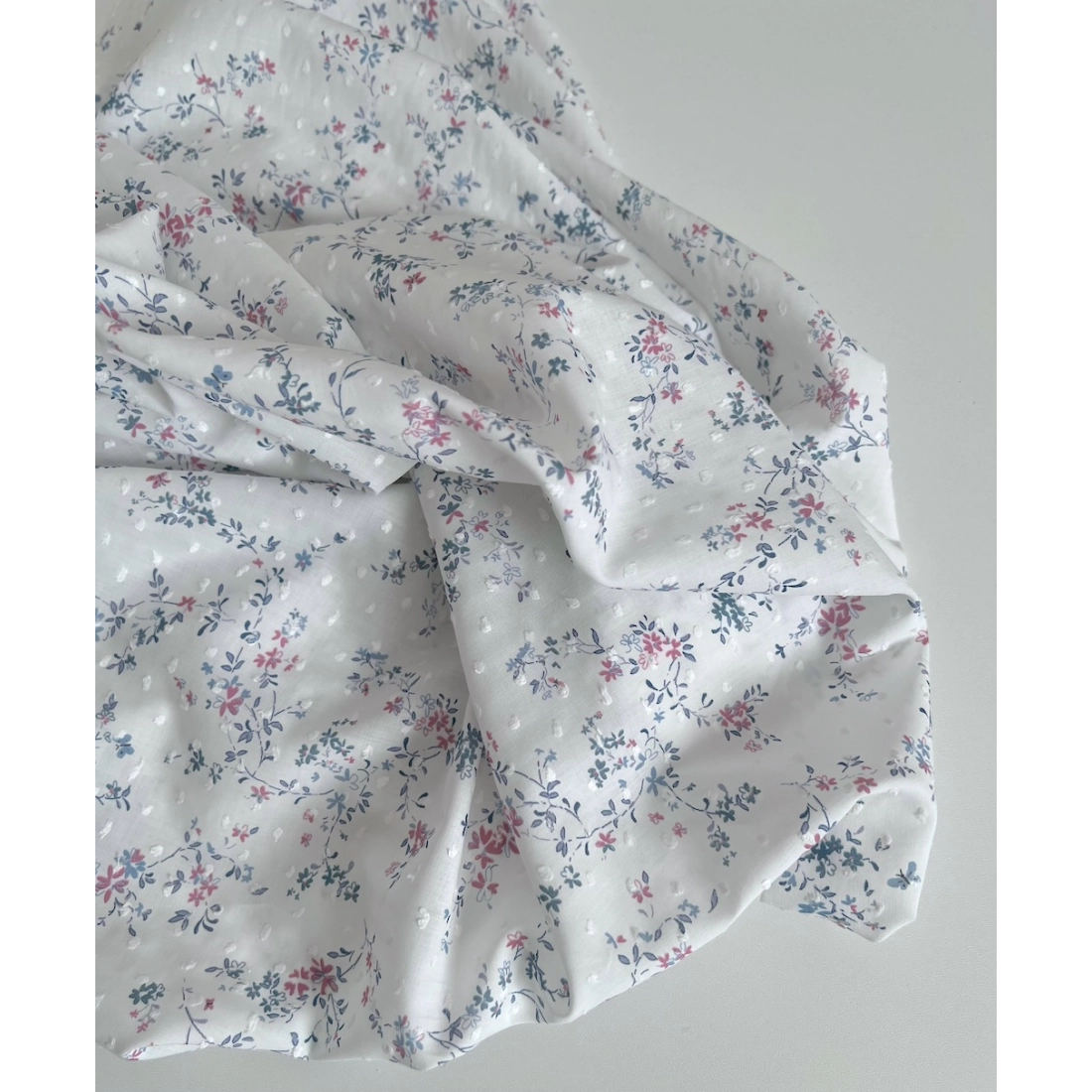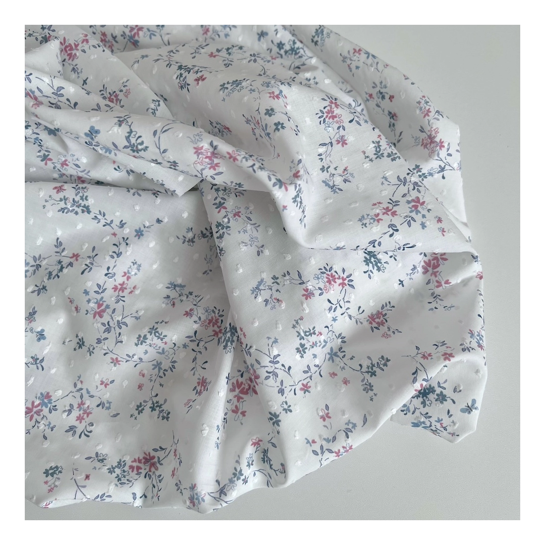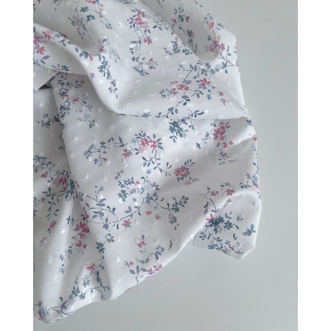 Coline - Plumetis de coton imprimé fleuri bleu et rose