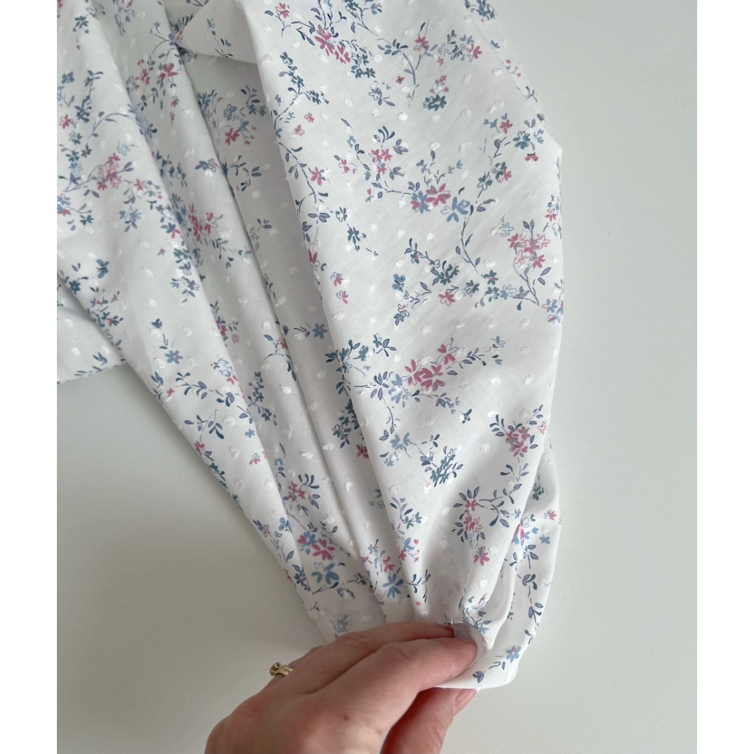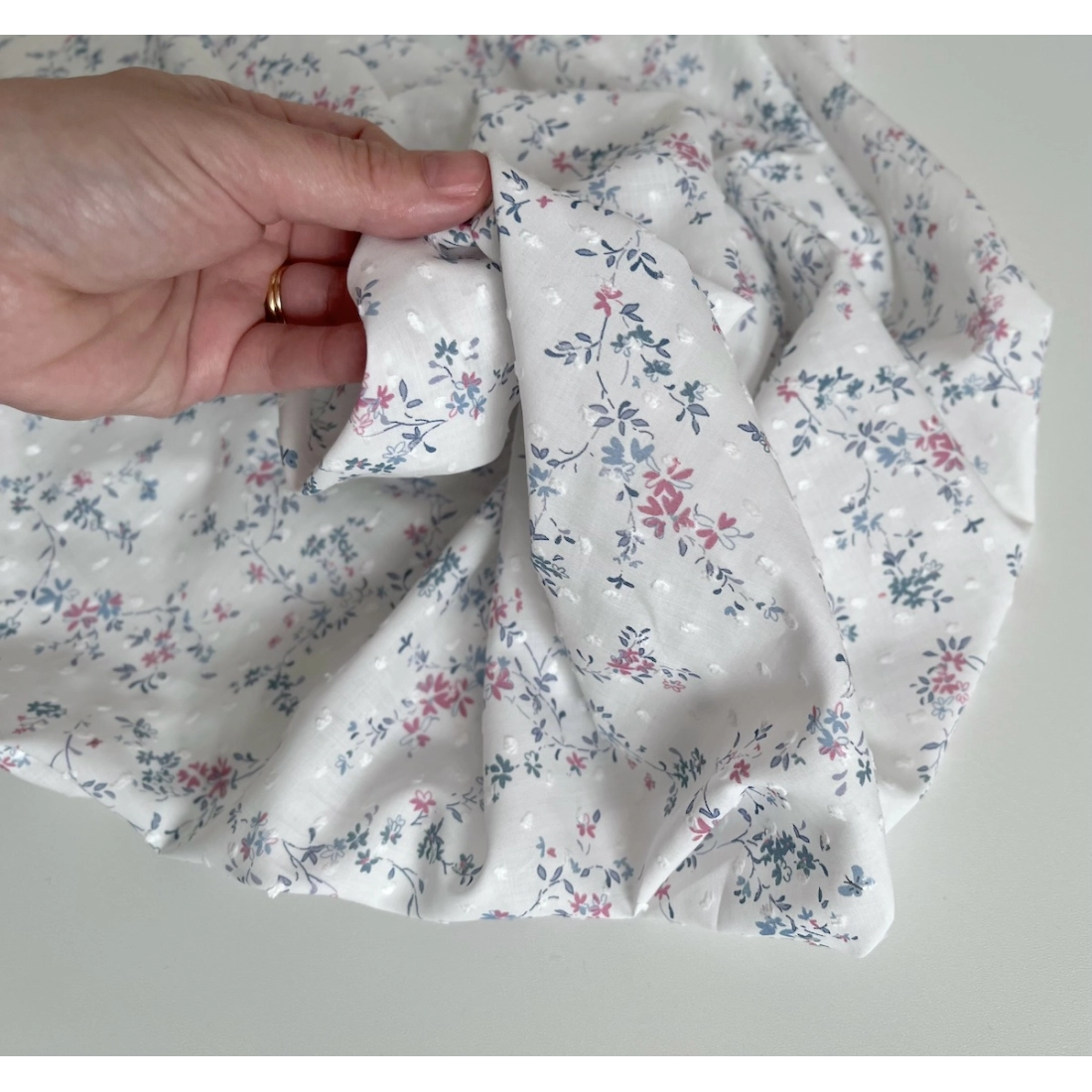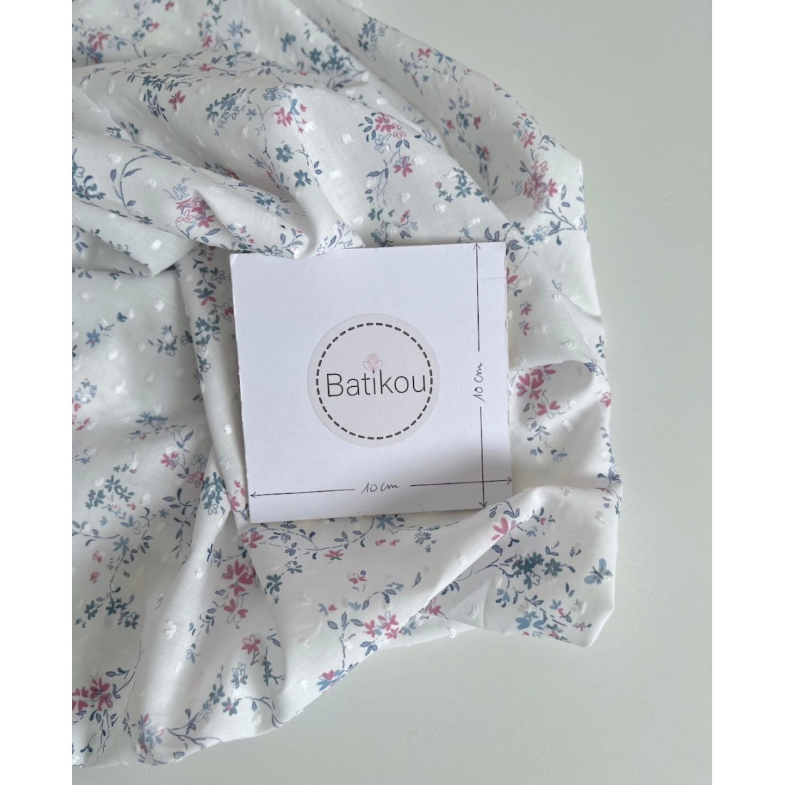 Coline - Plumetis de coton imprimé fleuri bleu et rose