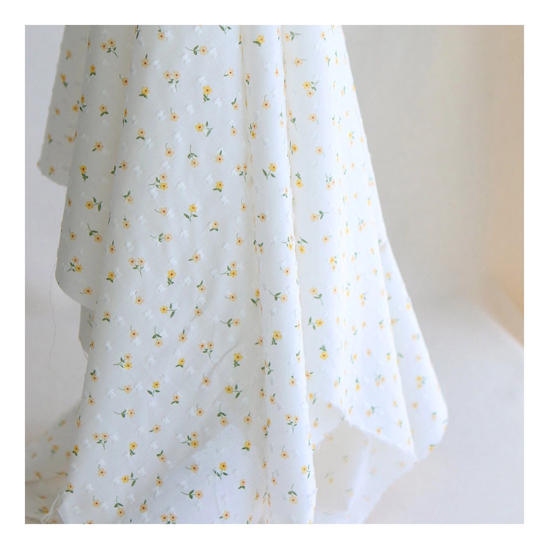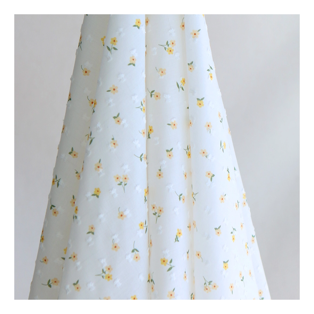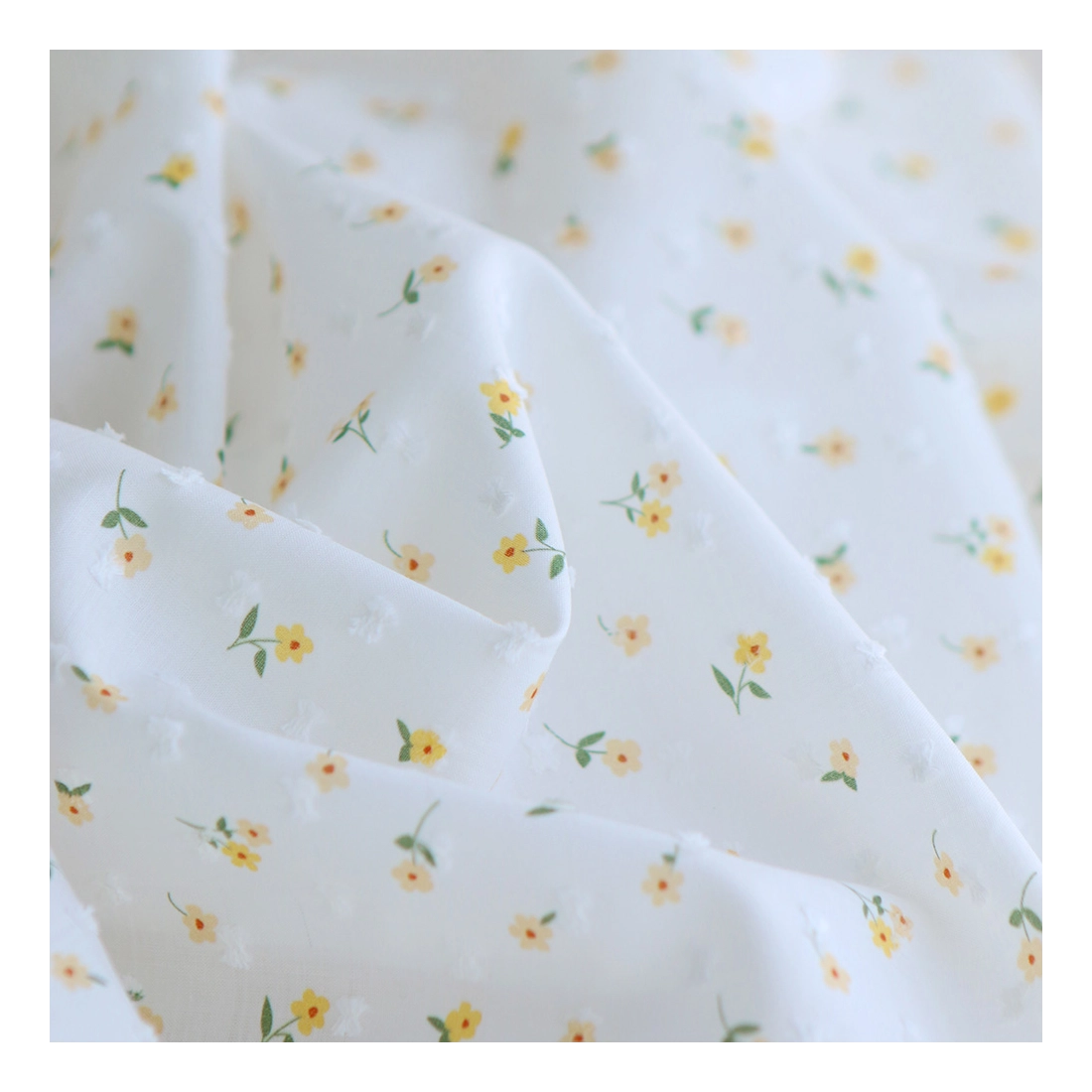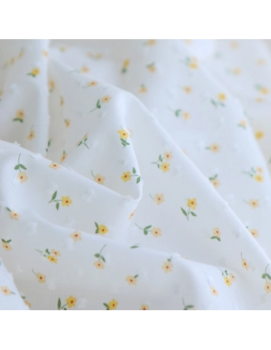 - Coloris fond blanc imprimé petit fleuri jaune