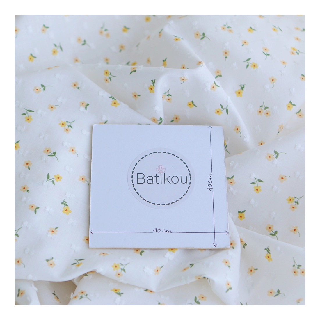Armelle - Plumetis de coton blanc imprimé fleuri jaune