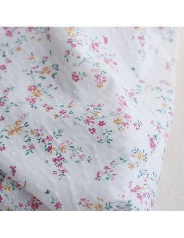 Coline - Plumetis de coton imprimé fleuri menthe et rose
