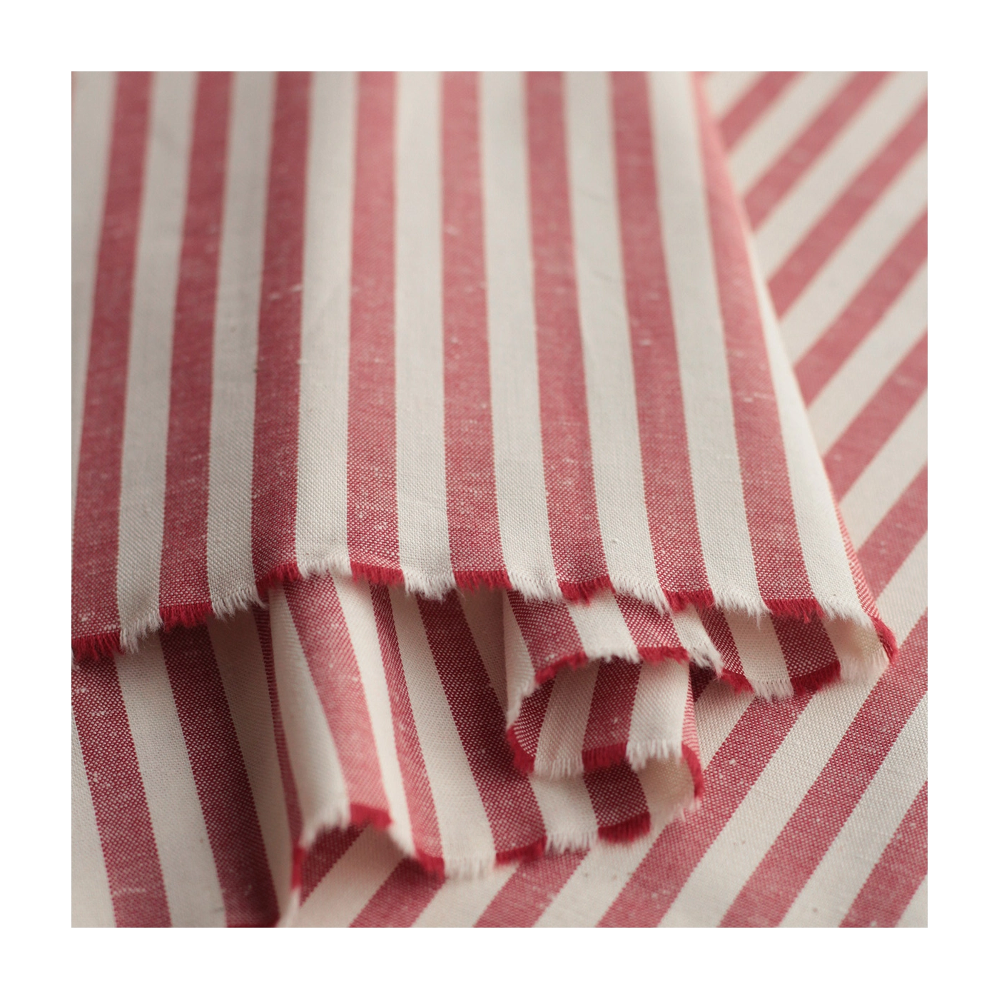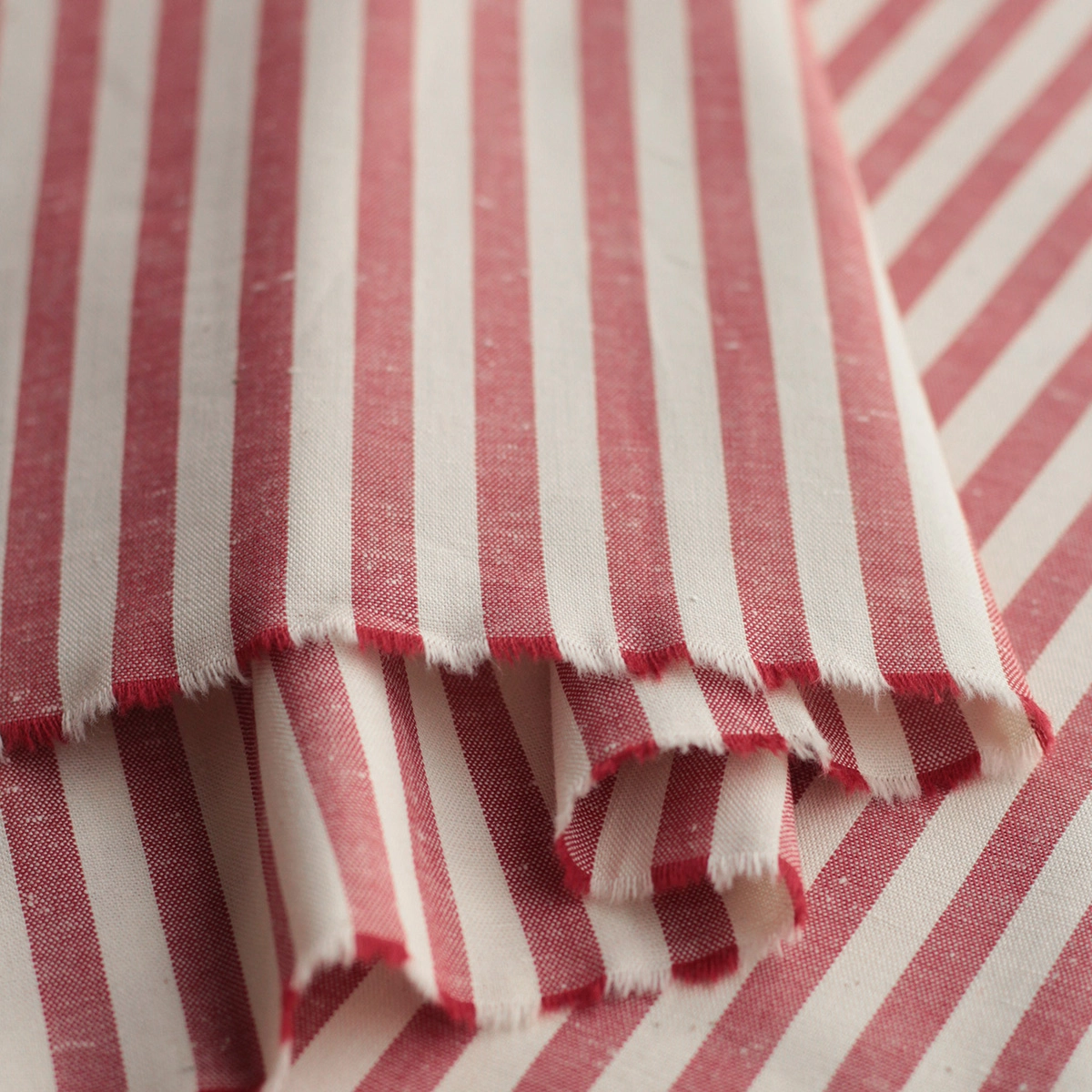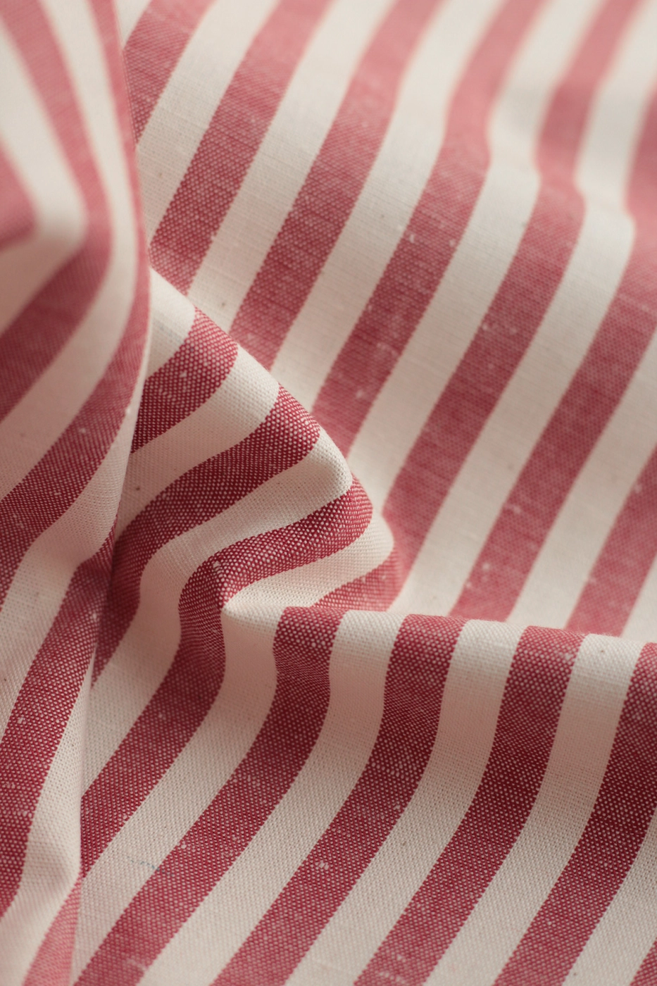 Coupon de 30 cm de Coton chiné aspect brut rayures moyennes 7mm coloris rouge / écru