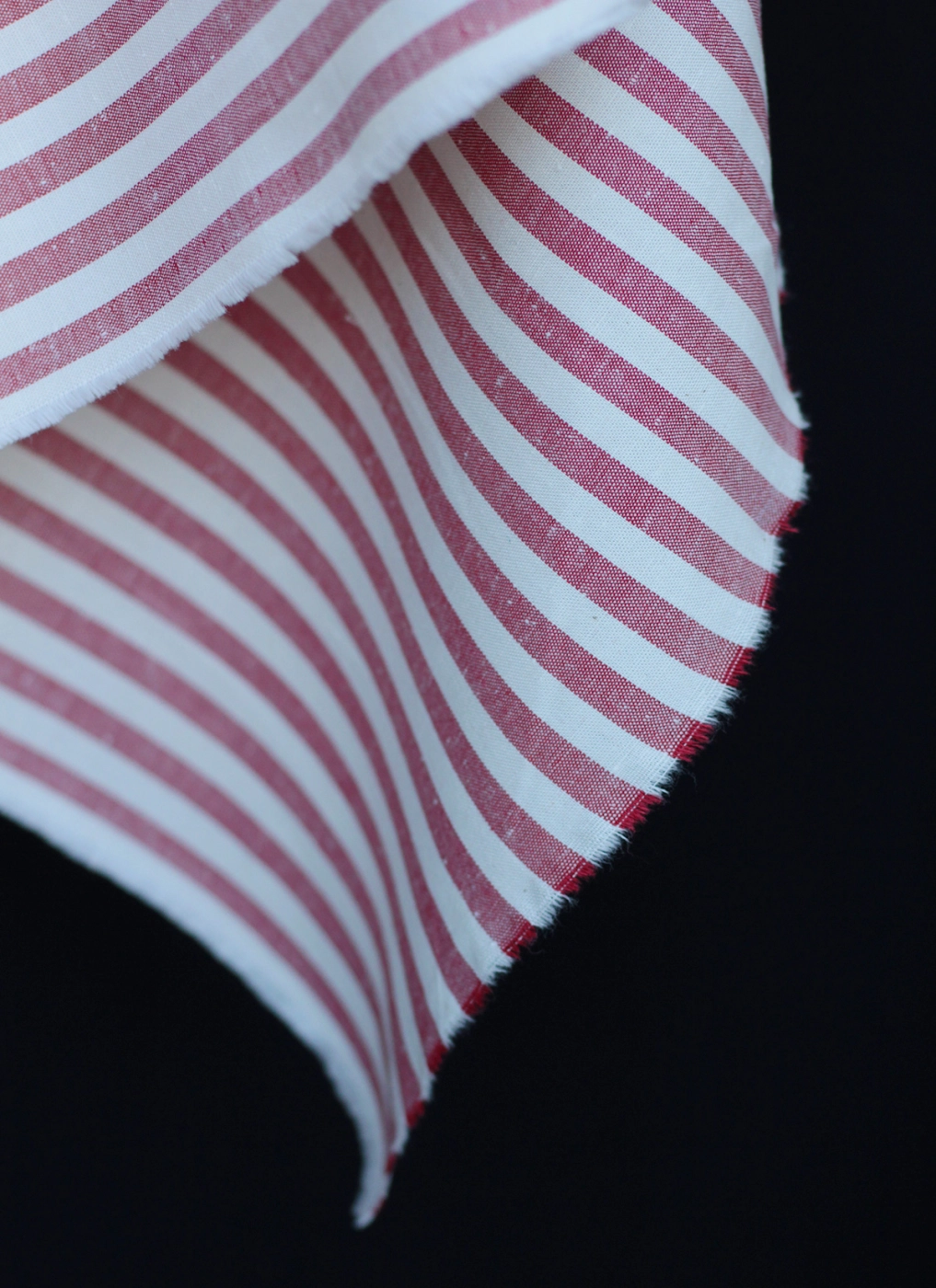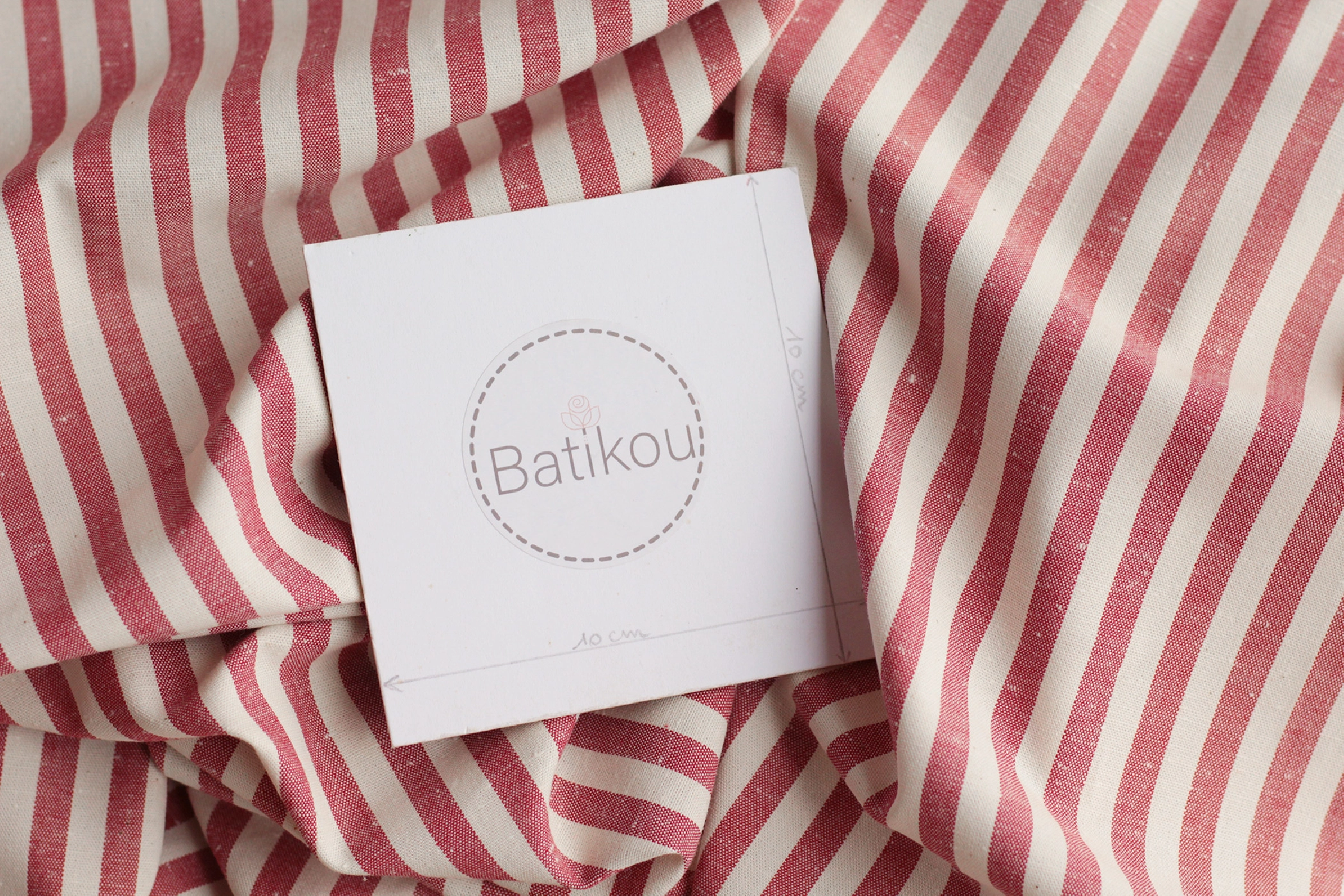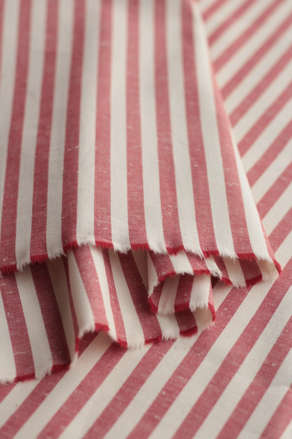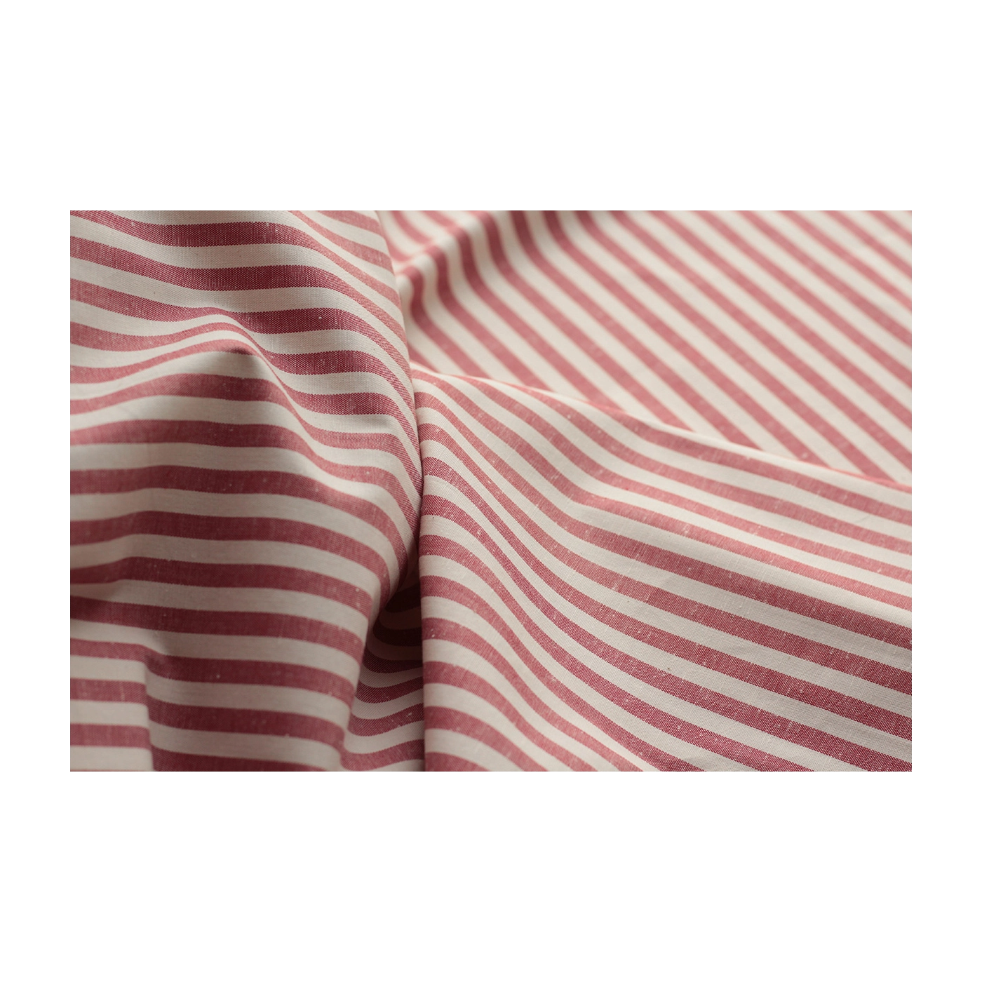 Coupon de 30 cm de Coton chiné aspect brut rayures moyennes 7mm coloris rouge / écru