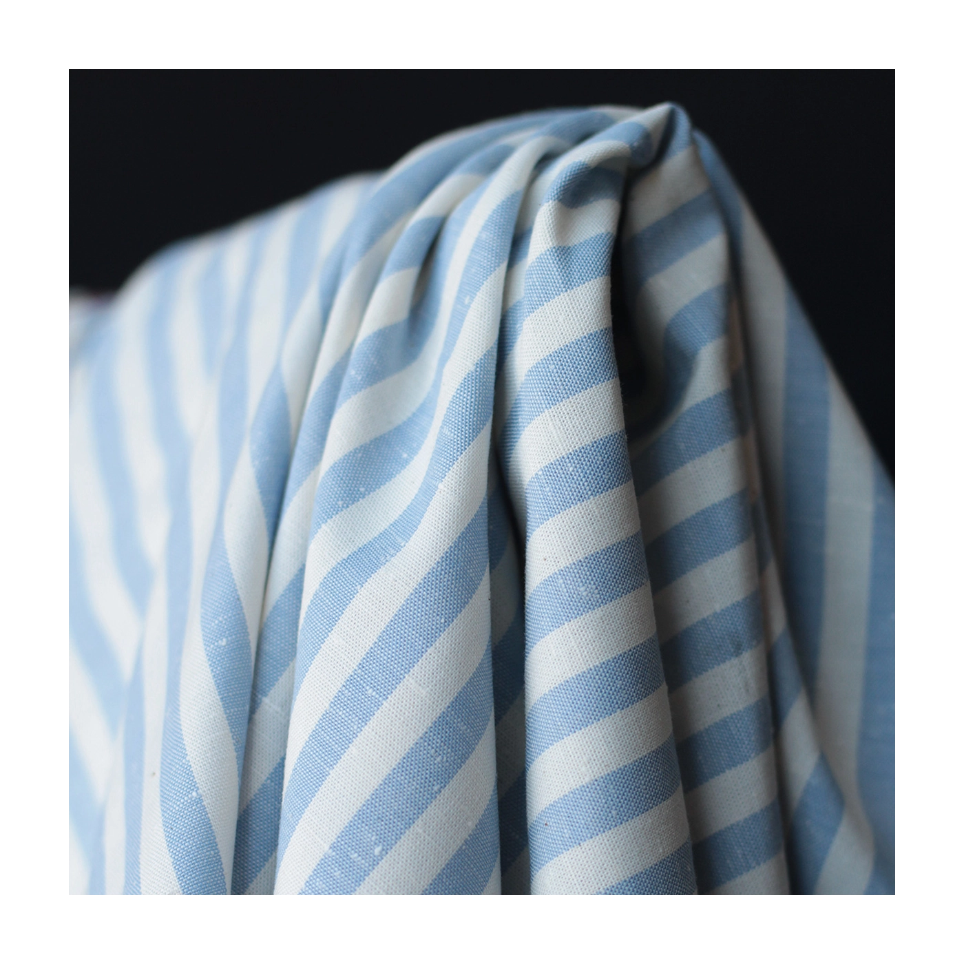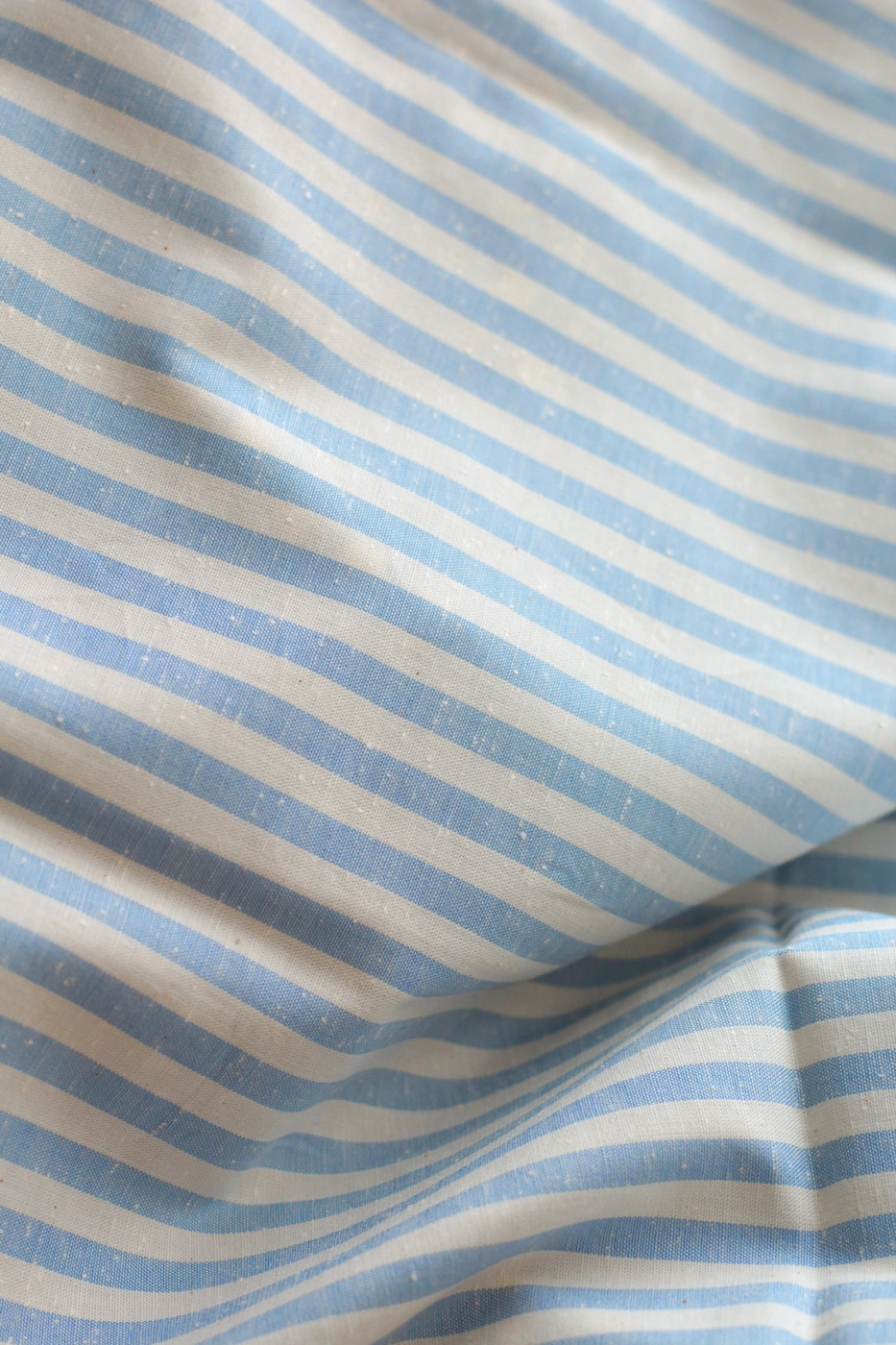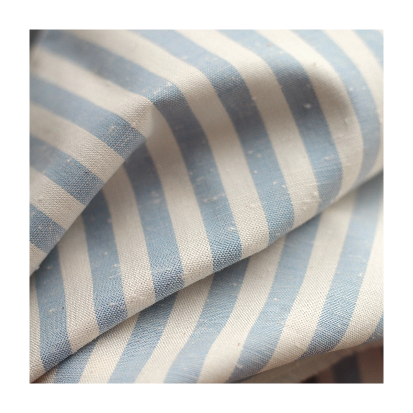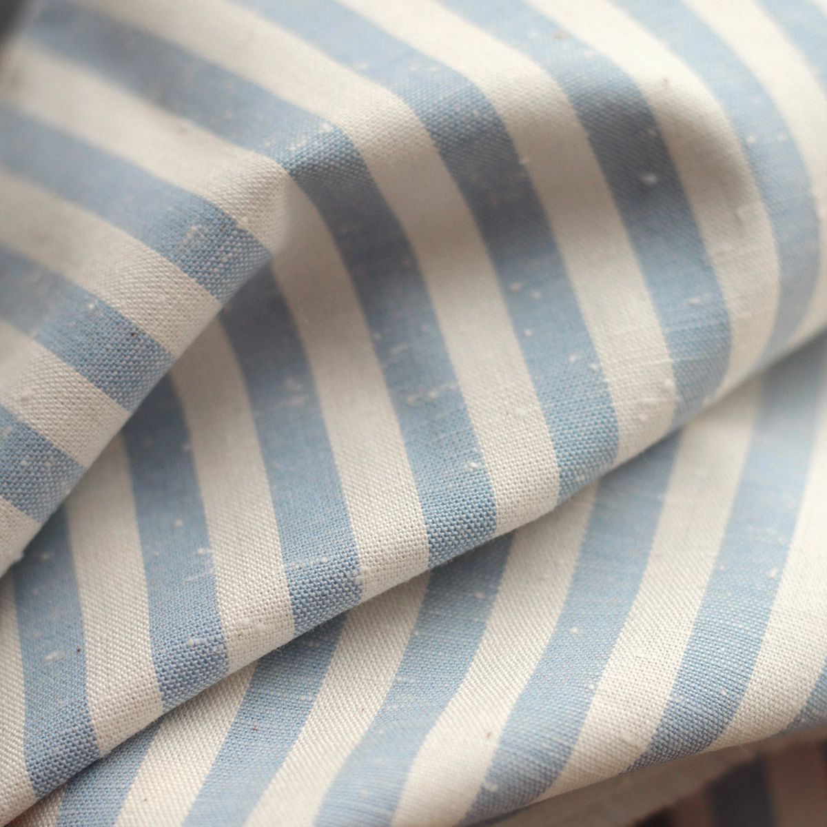 Coton chiné aspect brut rayures moyennes 7mm coloris bleu nuage / écru