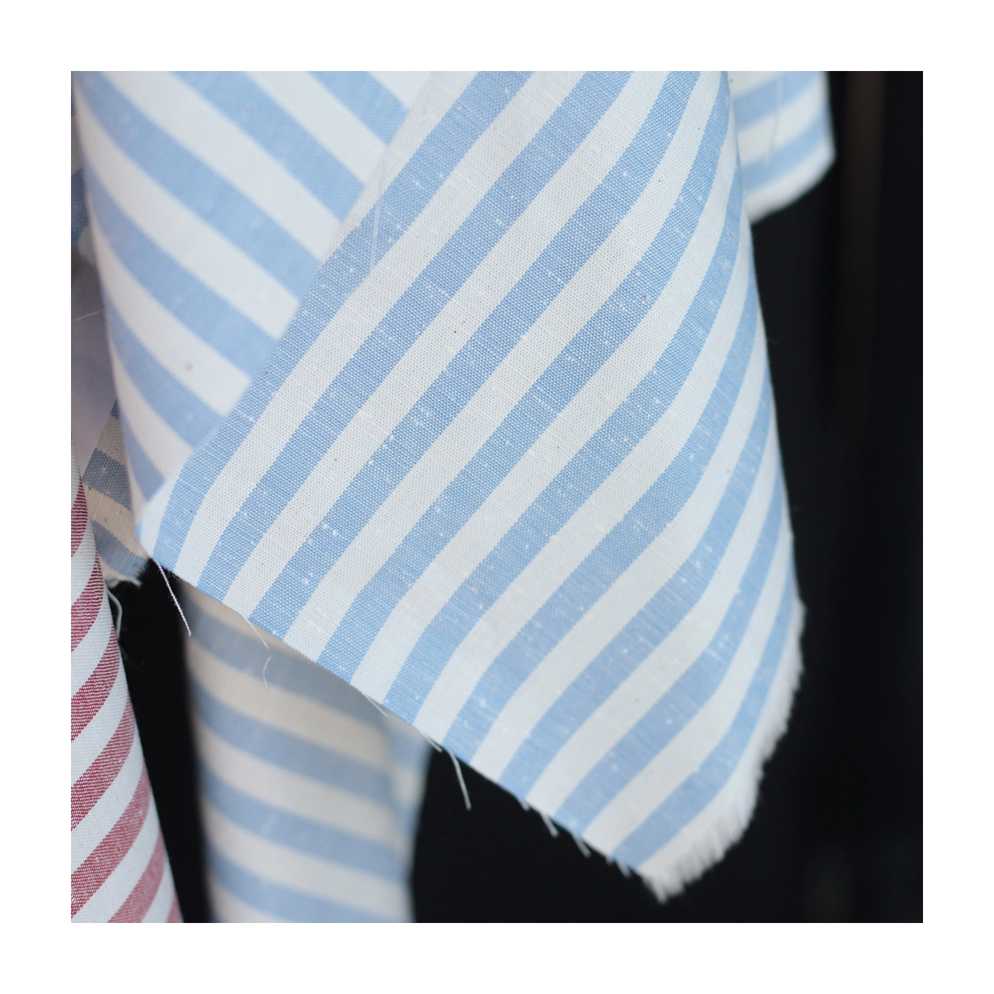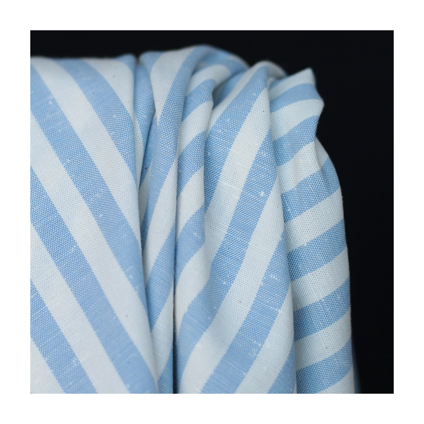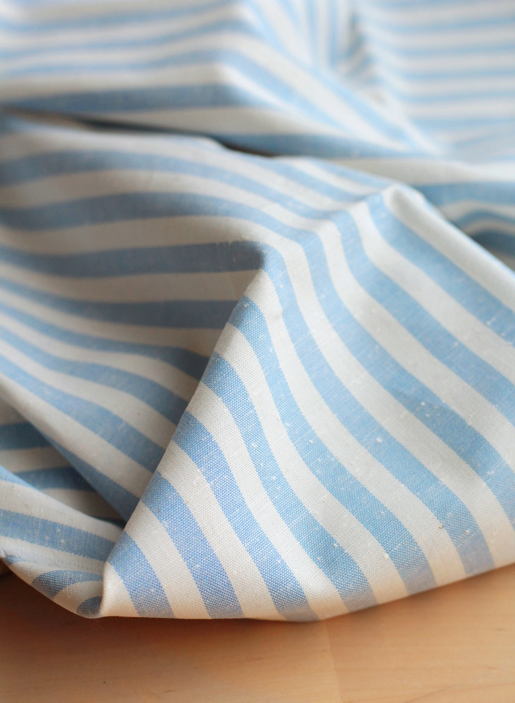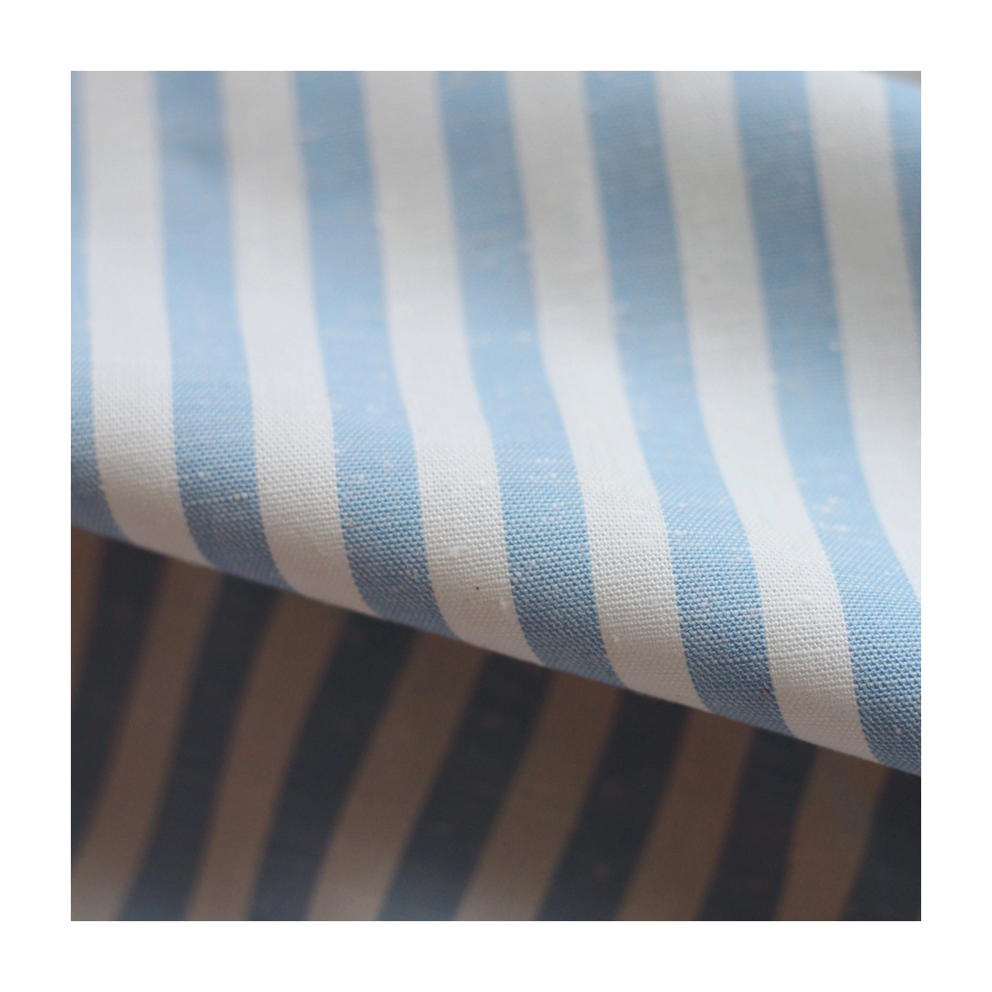 Coton chiné aspect brut rayures moyennes 7mm coloris bleu nuage / écru
