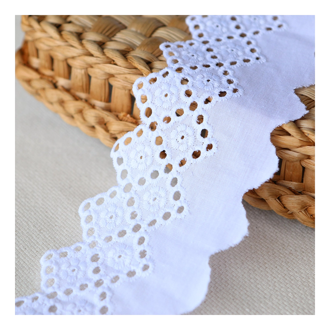 Ce galon de coton brodé est très joli pour apporter de petites touches raffinées sur vos réalisations.