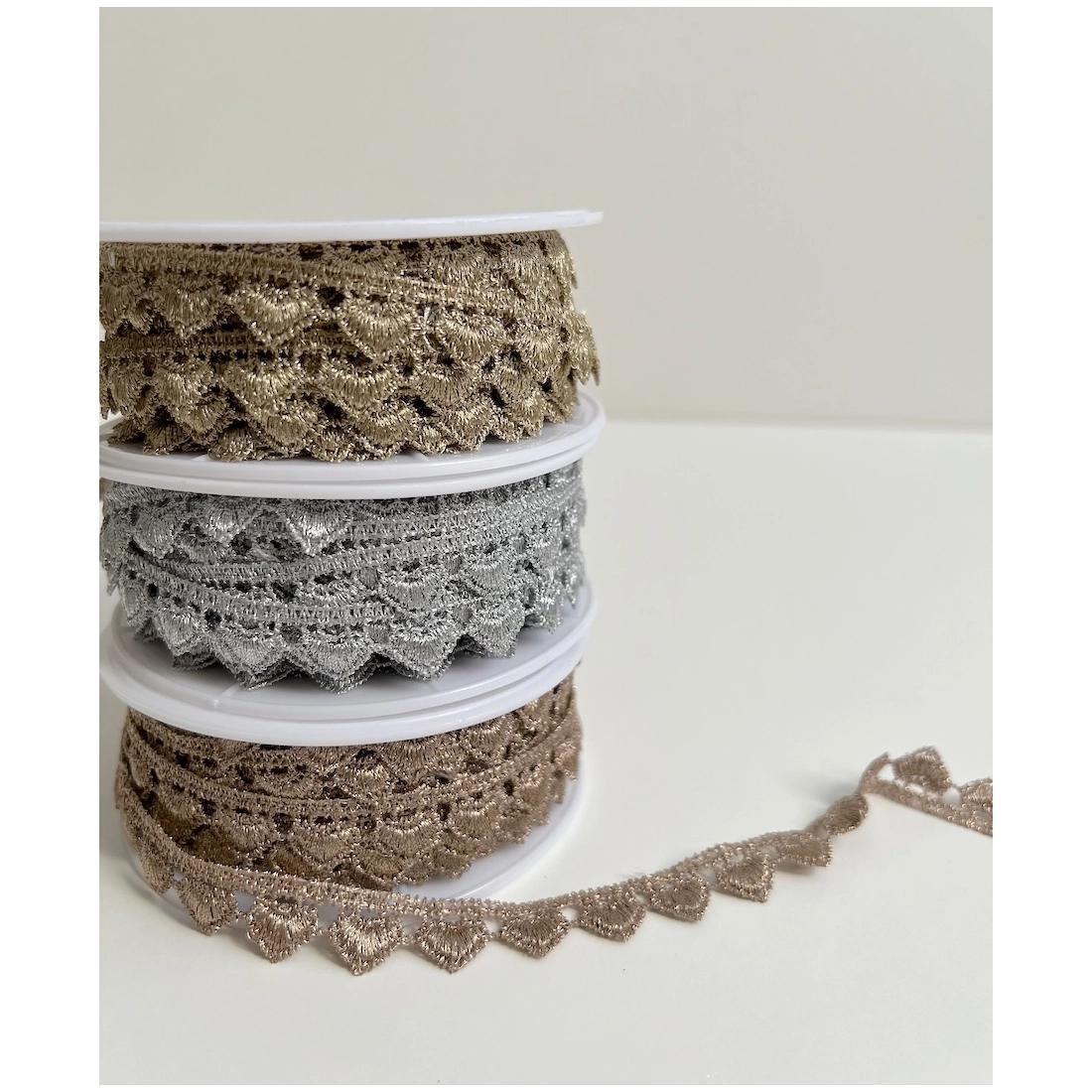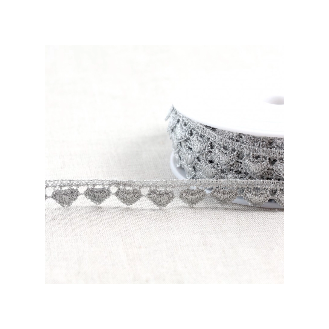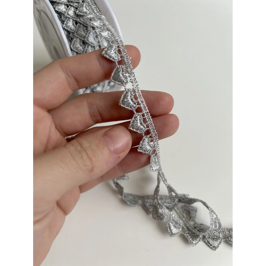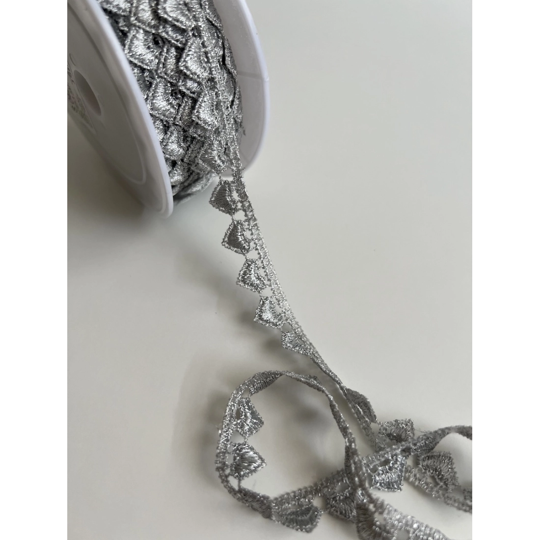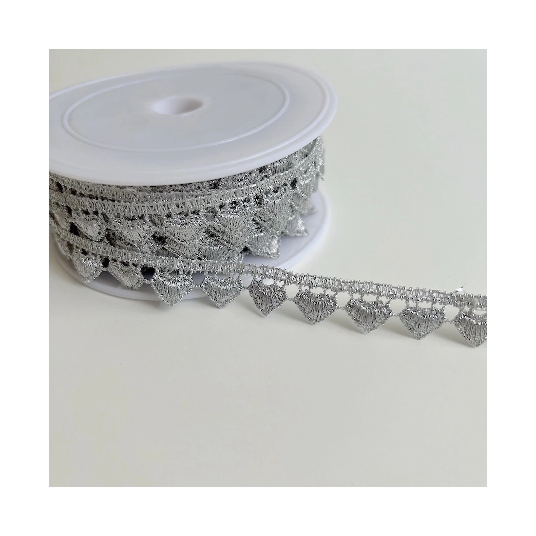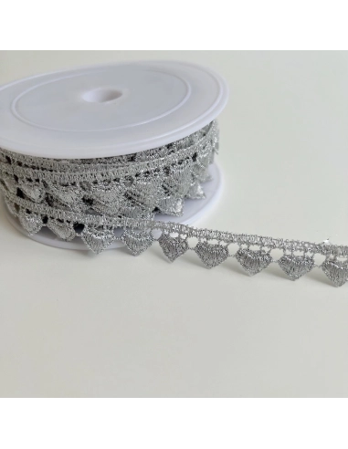 Découvrez notre élégante guipure métallique cœur en argent, parfaite pour ajouter une touche d'éclat à vos créations. Avec sa couleur argentée éclatante et ses motifs délicats en forme de cœur, elle est idéale pour orner robes de soirée, accessoires et décorations d'intérieur.