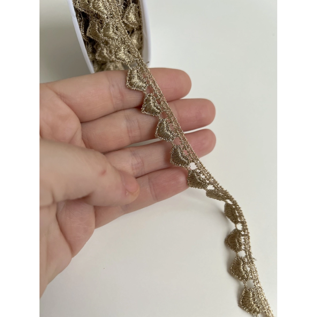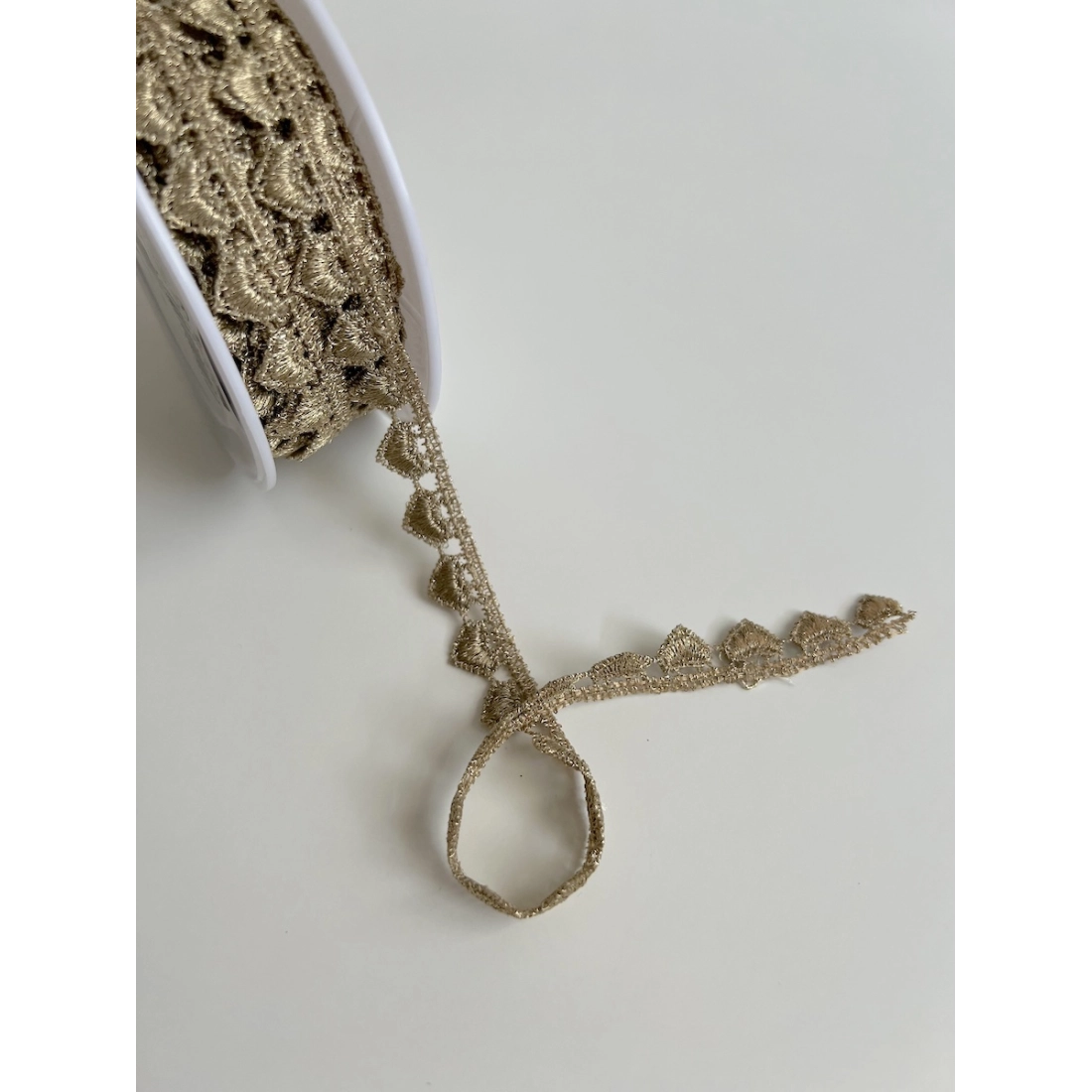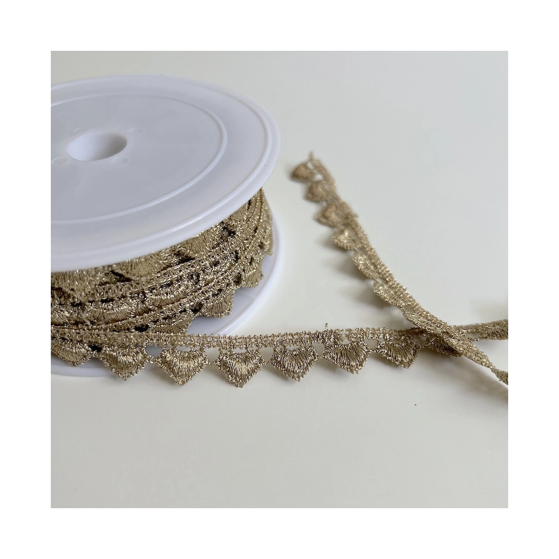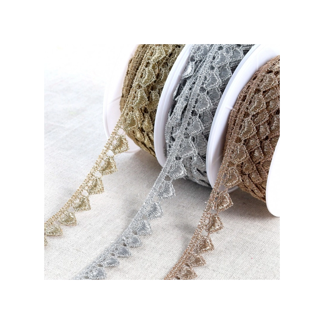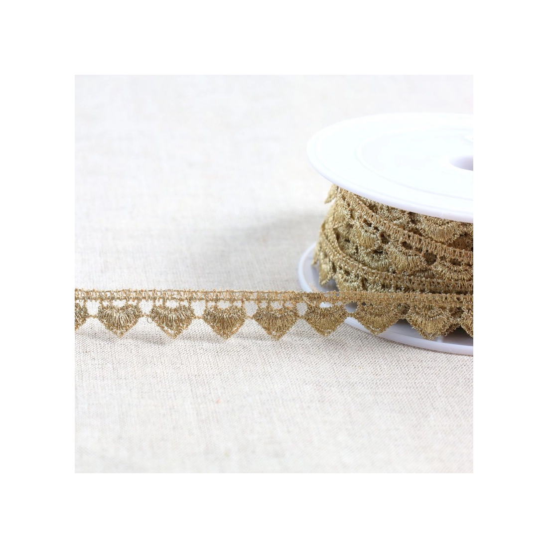 Sublimez vos projets de couture avec notre guipure métallique cœur doré. La teinte dorée riche apporte une opulence certaine, tandis que les détails de cœur offrent une finition romantique.