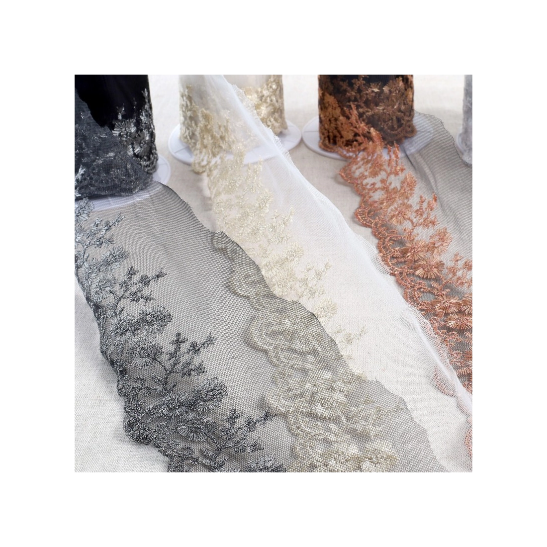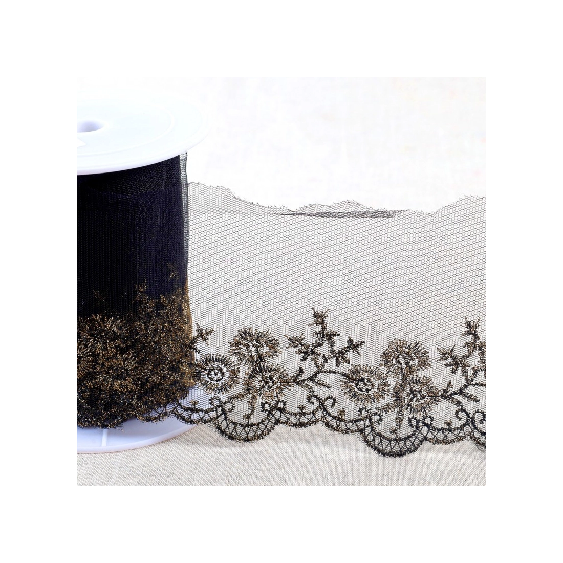 Ce galon brodé avec des fils métallisés sur tulle est l'accessoire idéal pour donner un aspect vintage et chic à vos créations. Flexible et élégant.