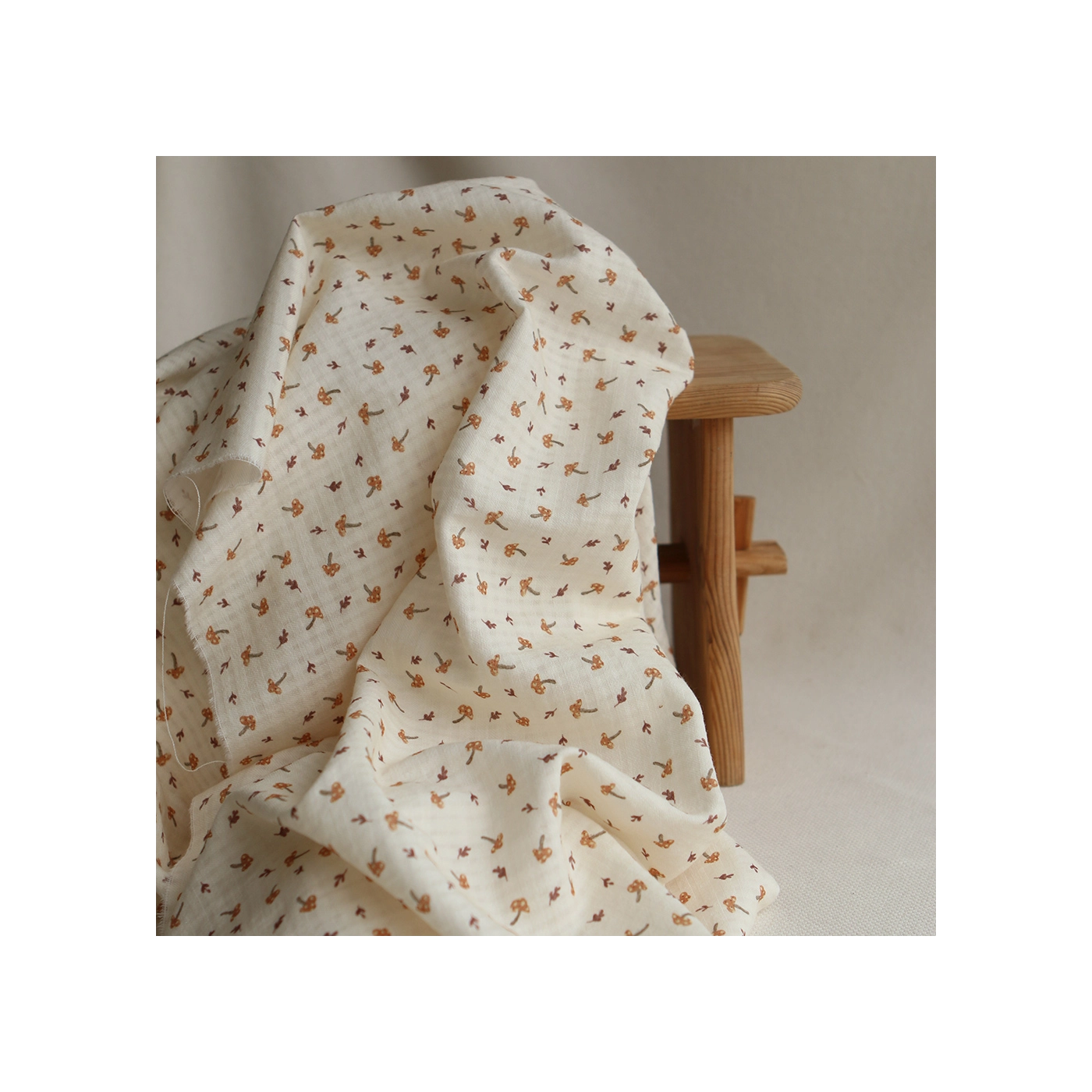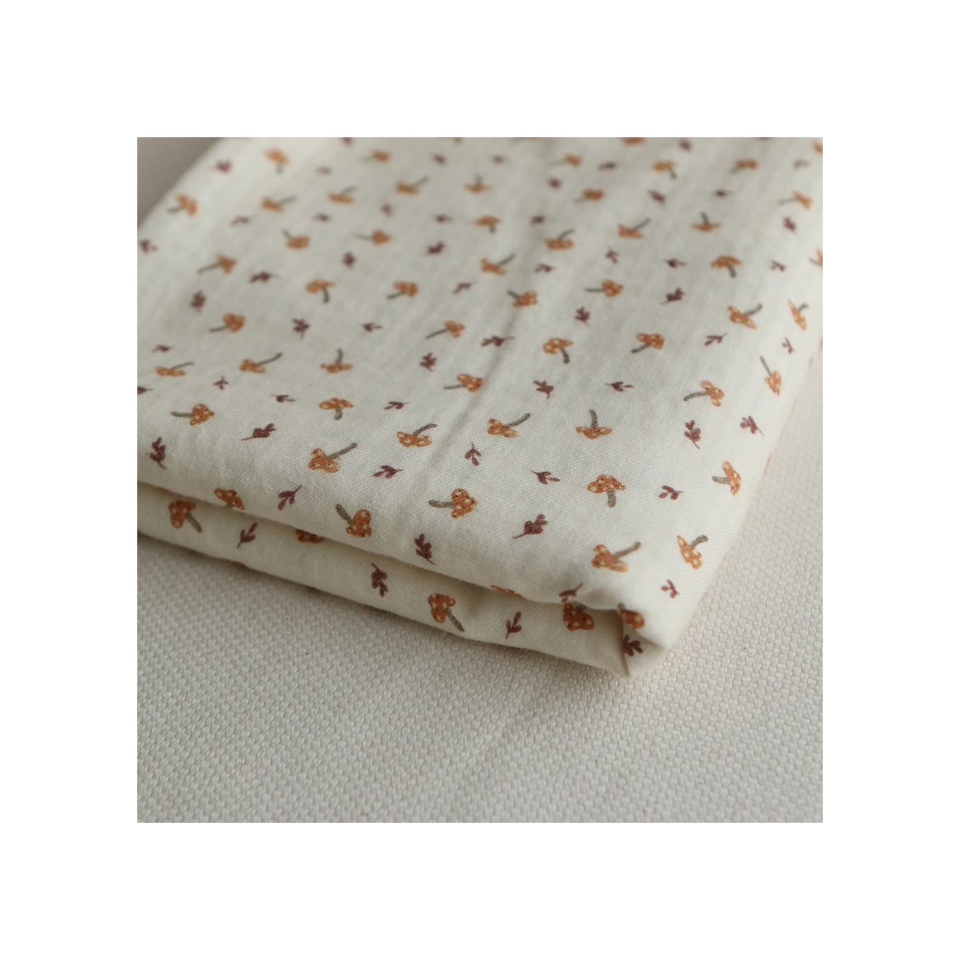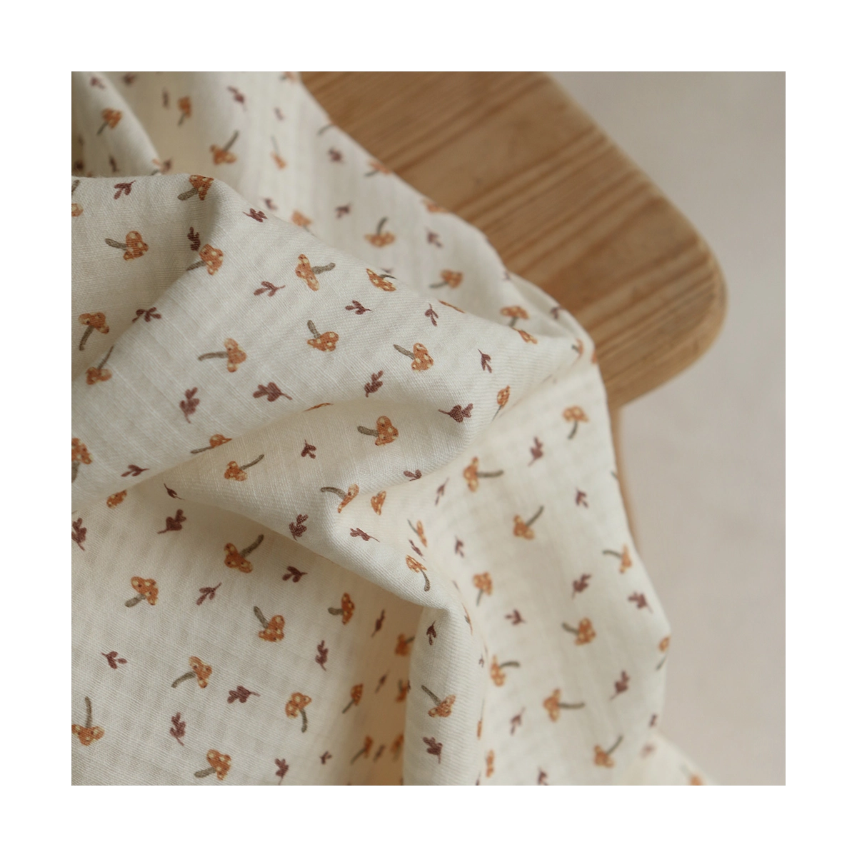 Coloris: fond écru motif petits champignons cuivre et teintes naturelles