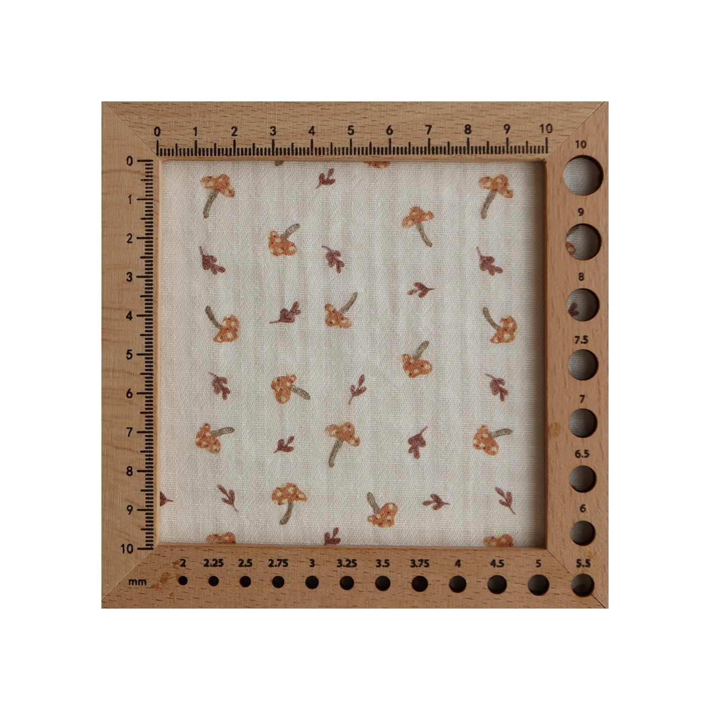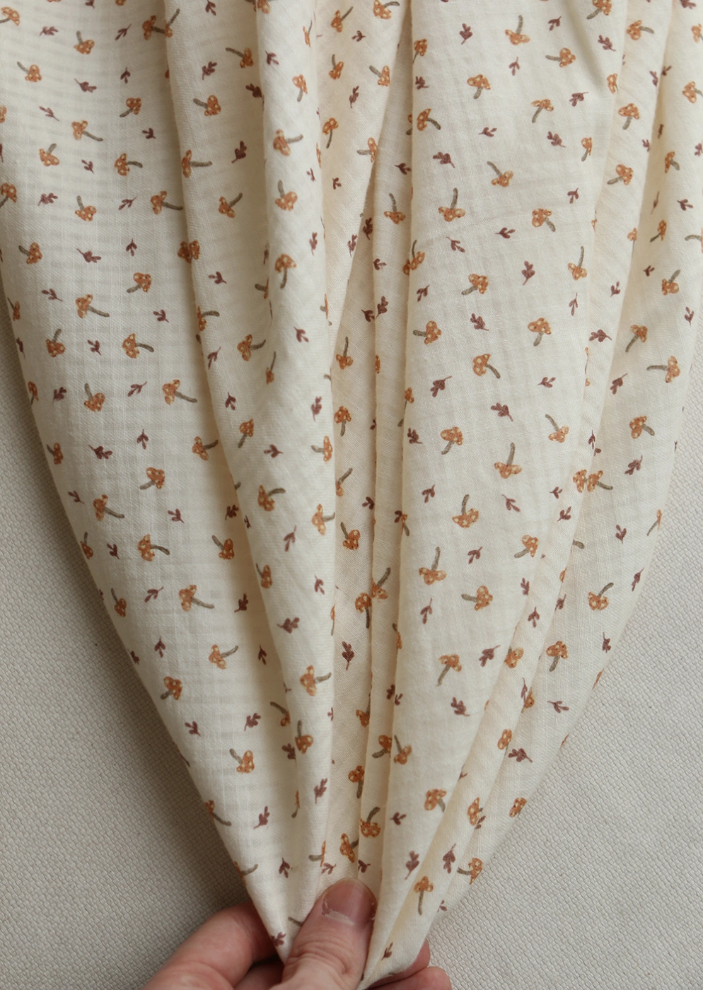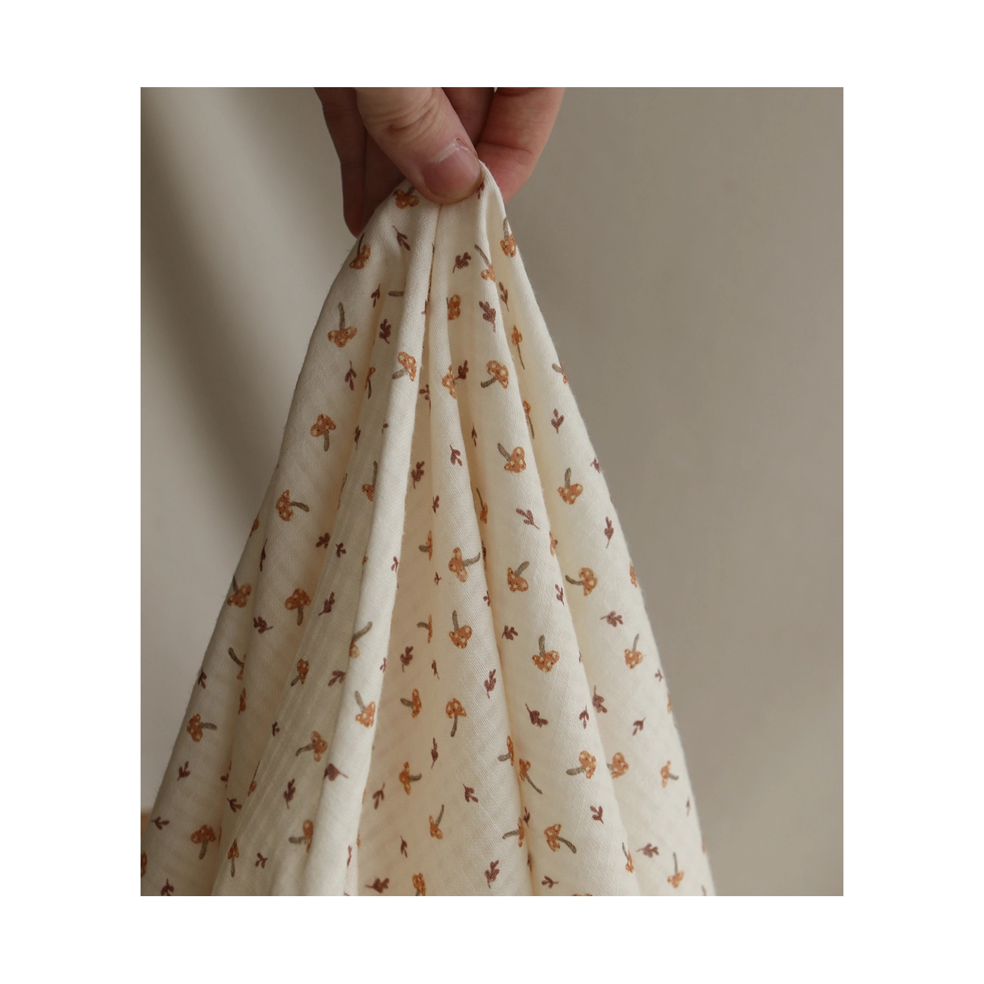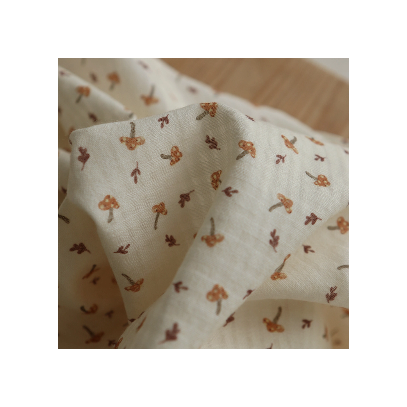 Coloris: fond écru motif petits champignons cuivre et teintes naturelles