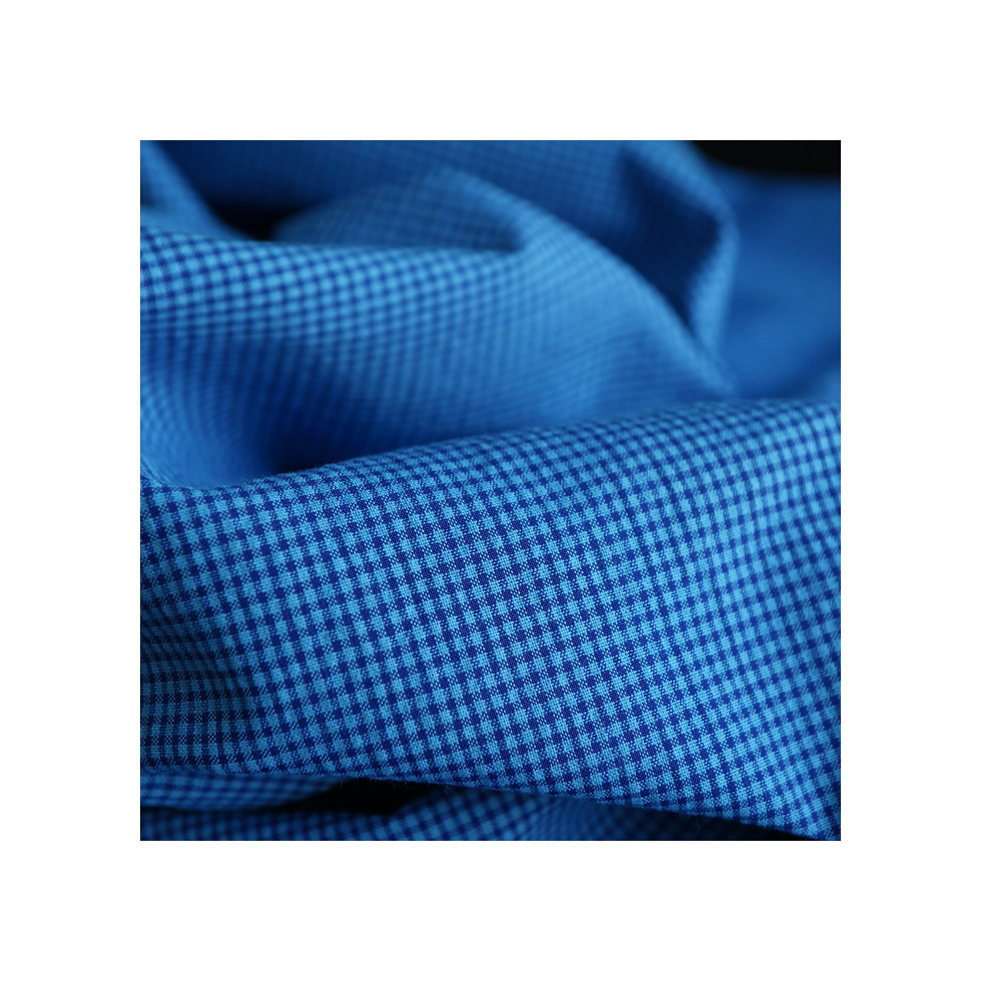 Seersucker / Coton gaufré vichy mini 3mm bleu cobalt
