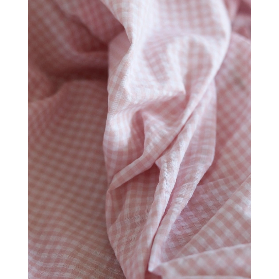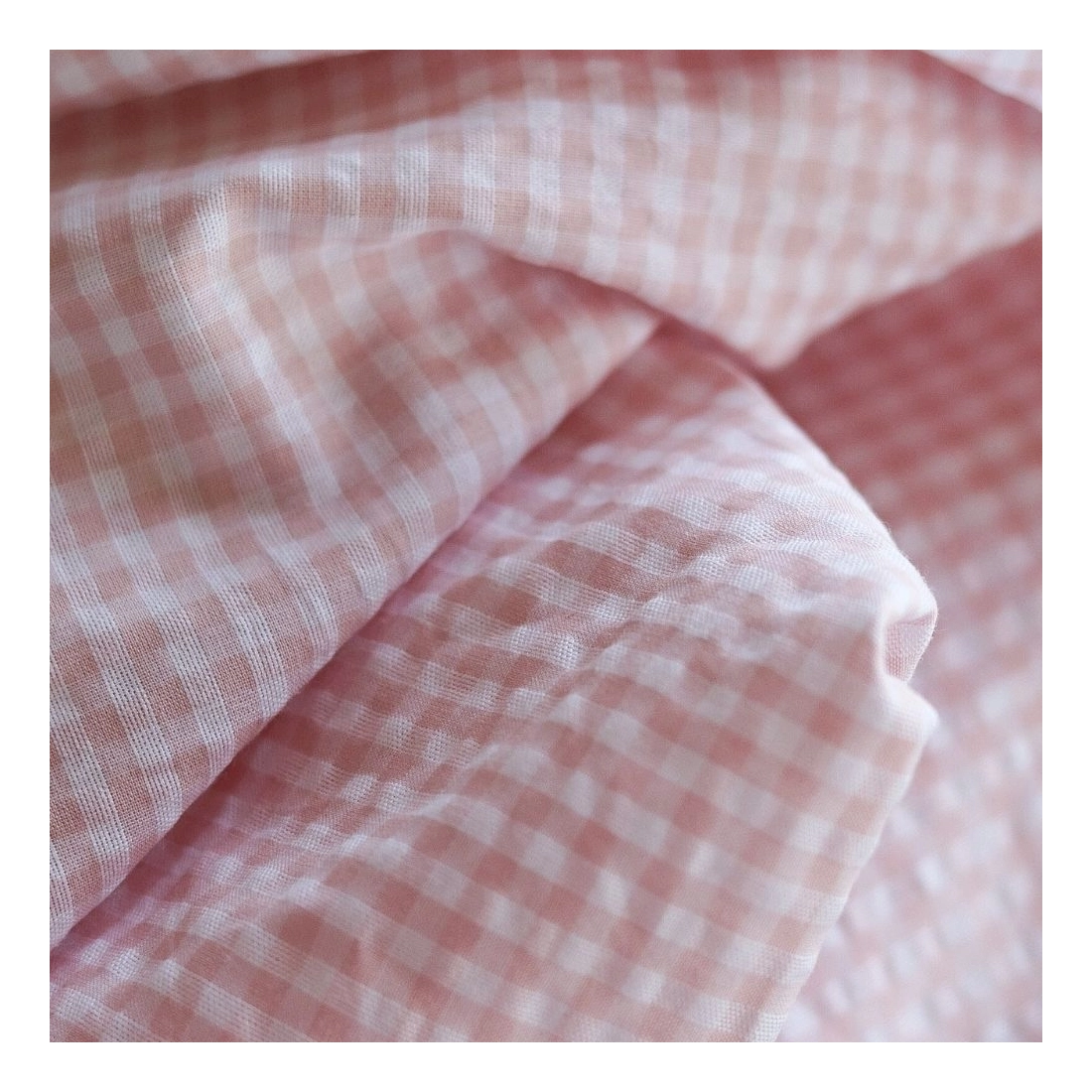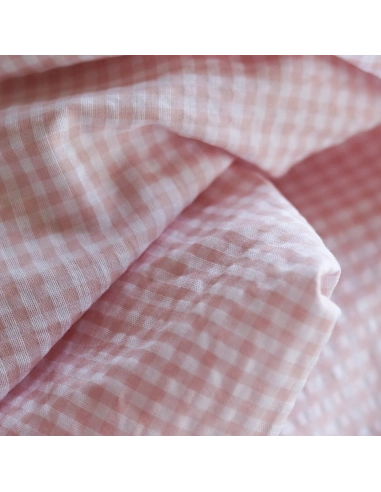 Seersucker / Coton gaufré vichy blanc et rose nude