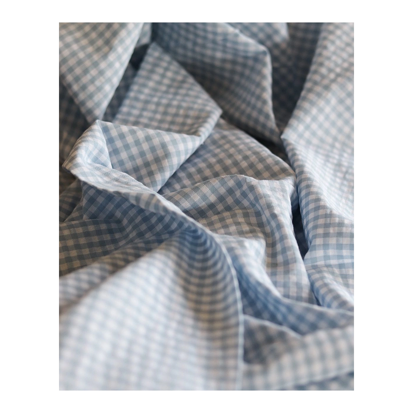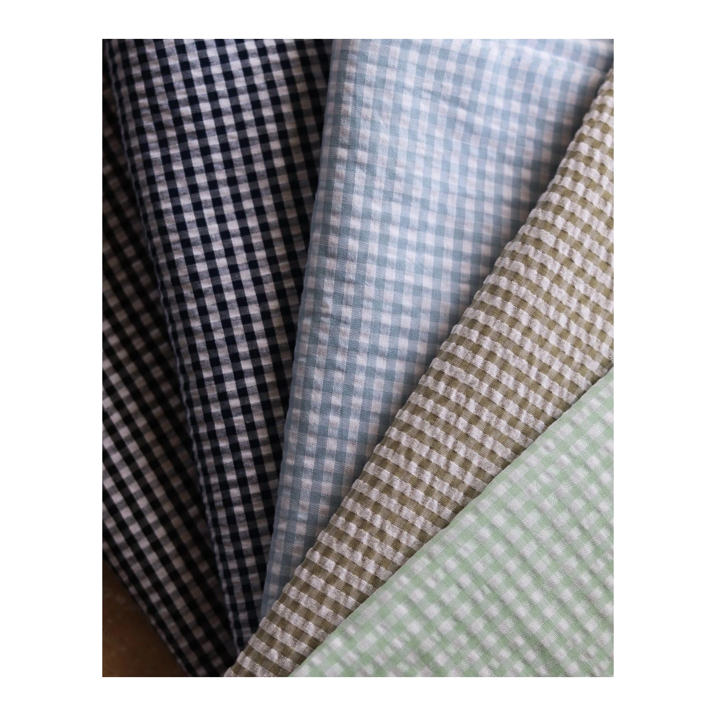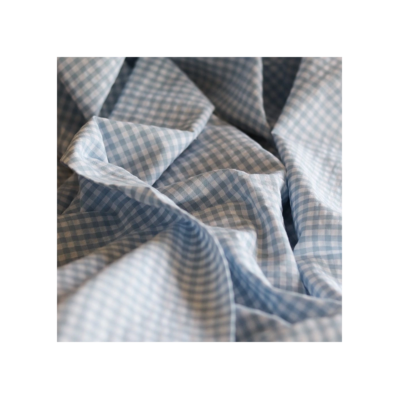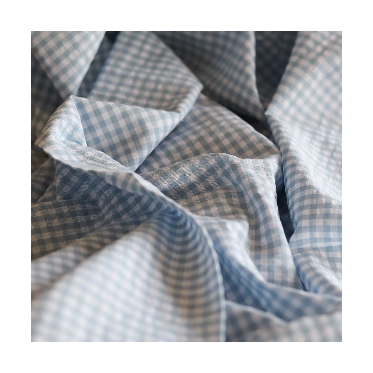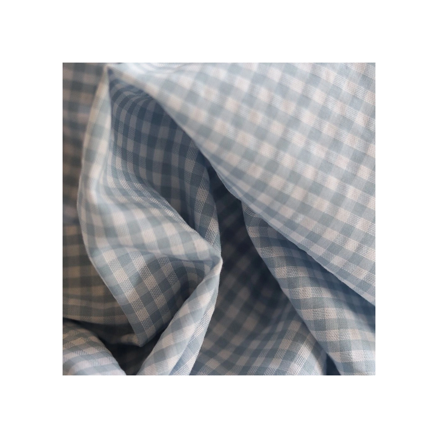 Seersucker / Coton gaufré vichy blanc et bleu ciel