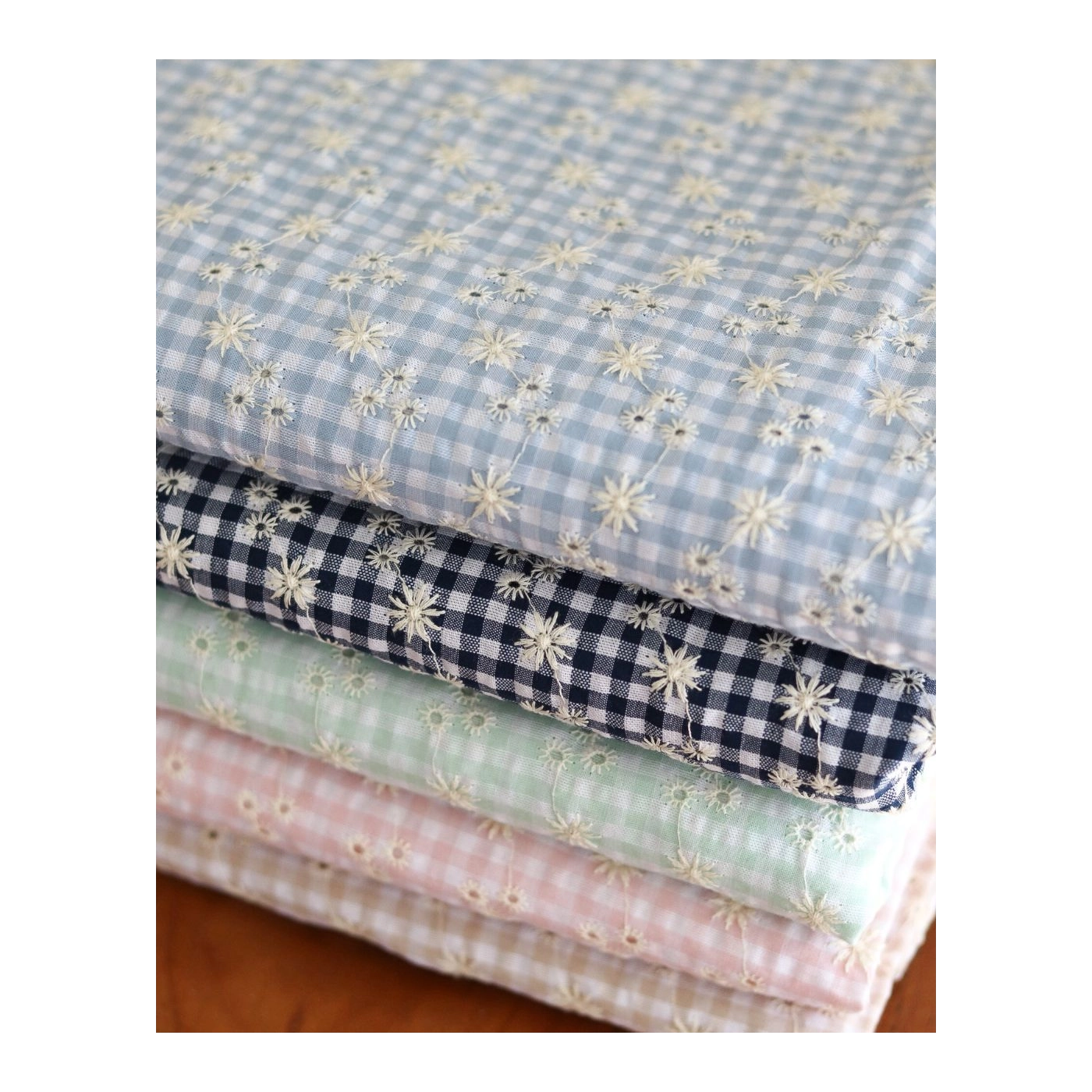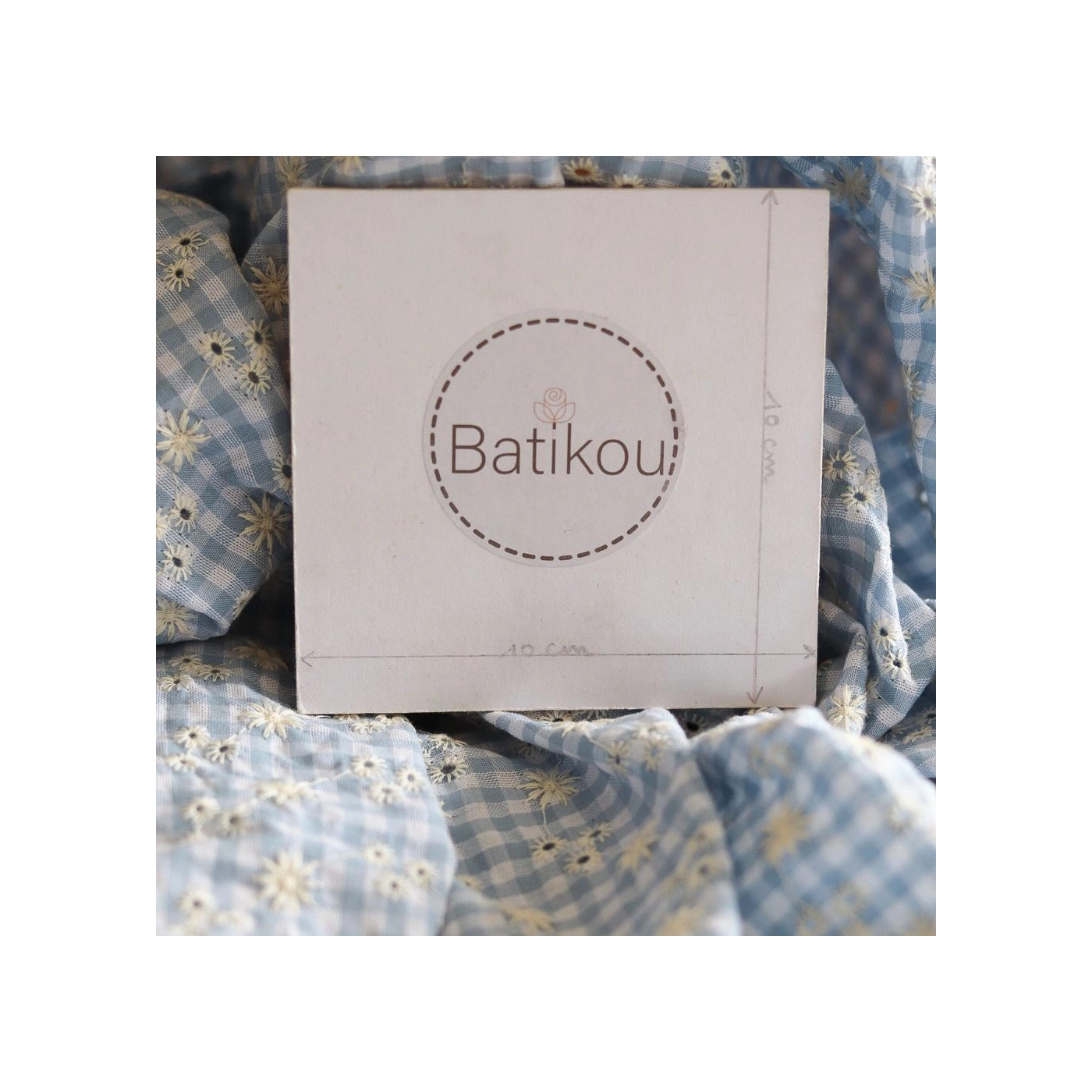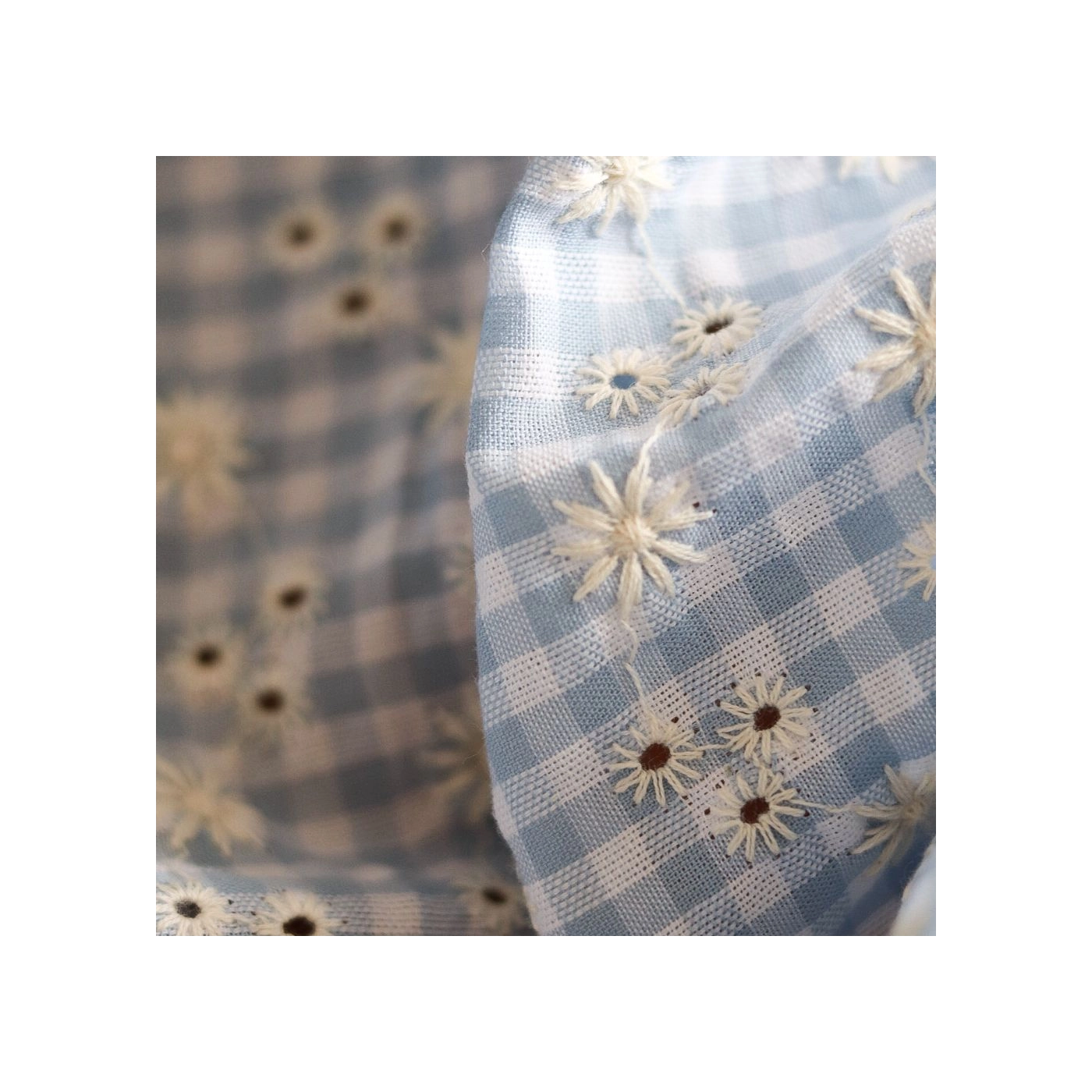 Seersucker / Coton gaufré vichy blanc et bleu ciel broderie