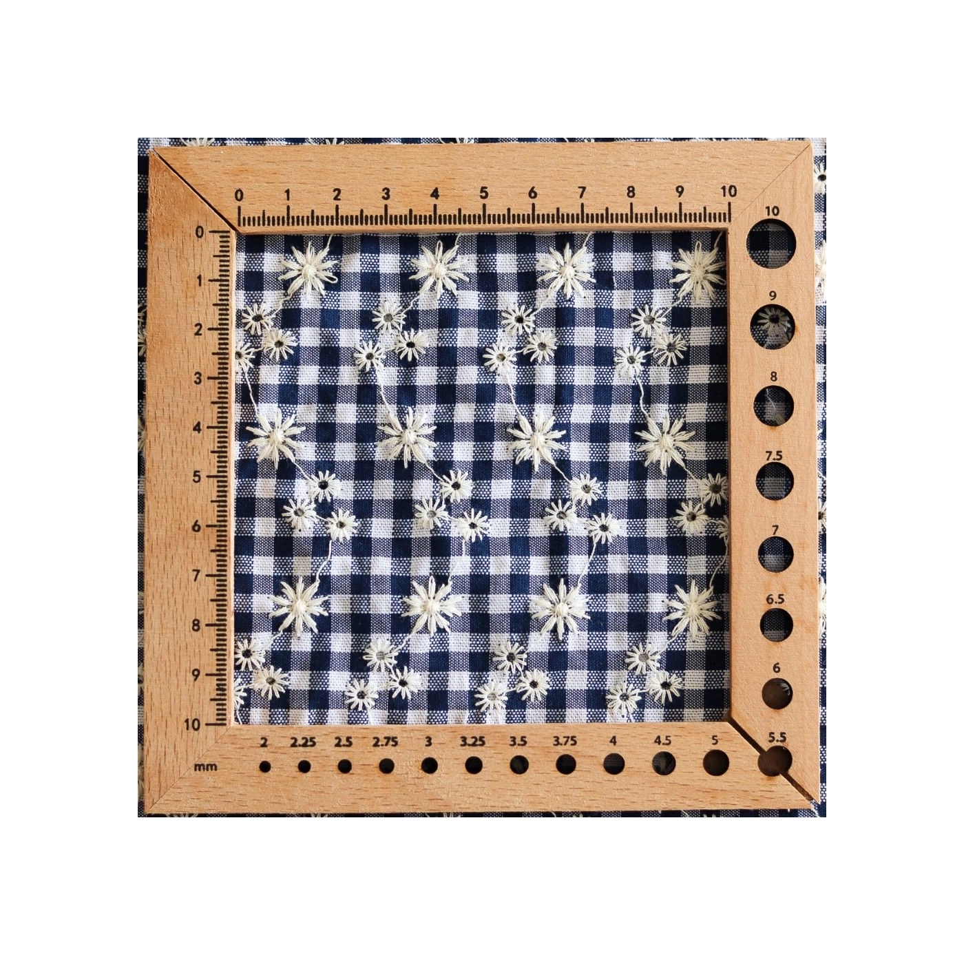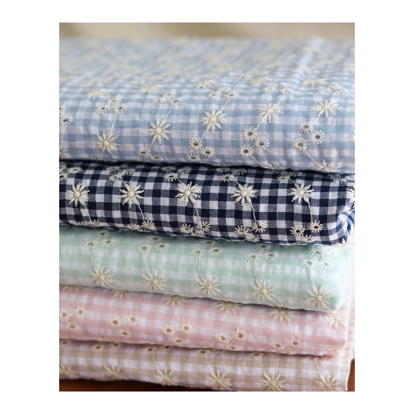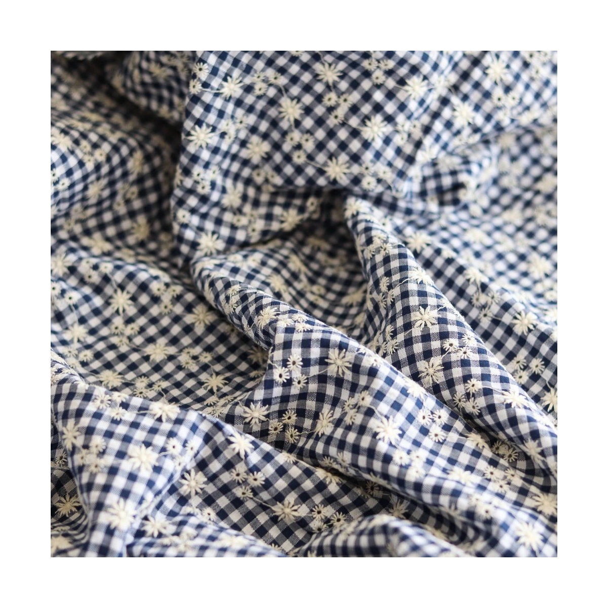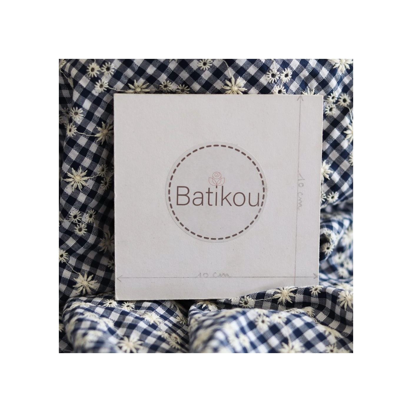 Seersucker / Coton gaufré vichy blanc et bleu marine broderie