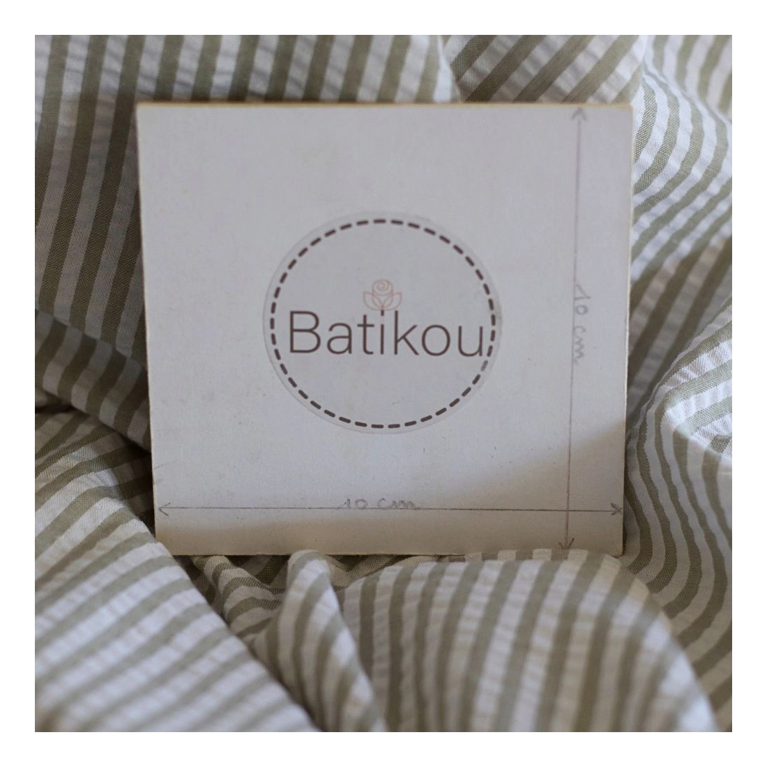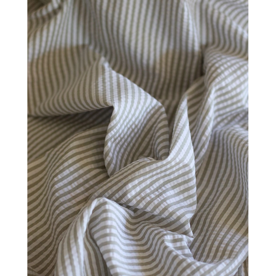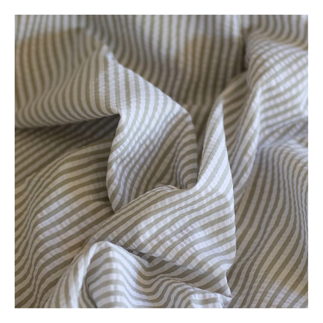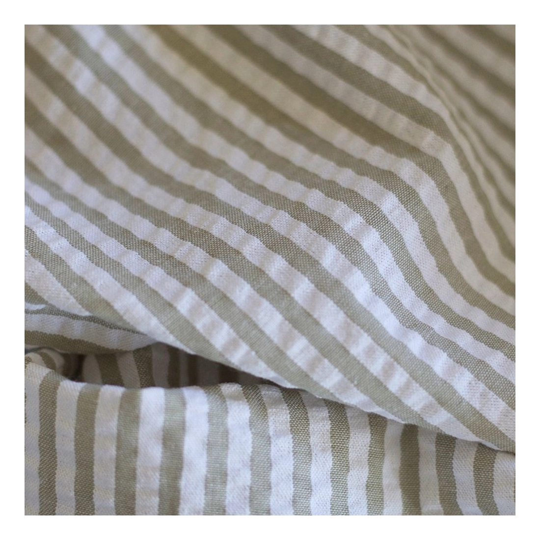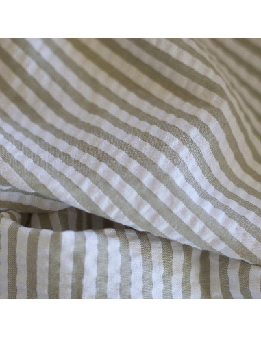 Seersucker / Coton mélangé gaufré rayures kaki clair