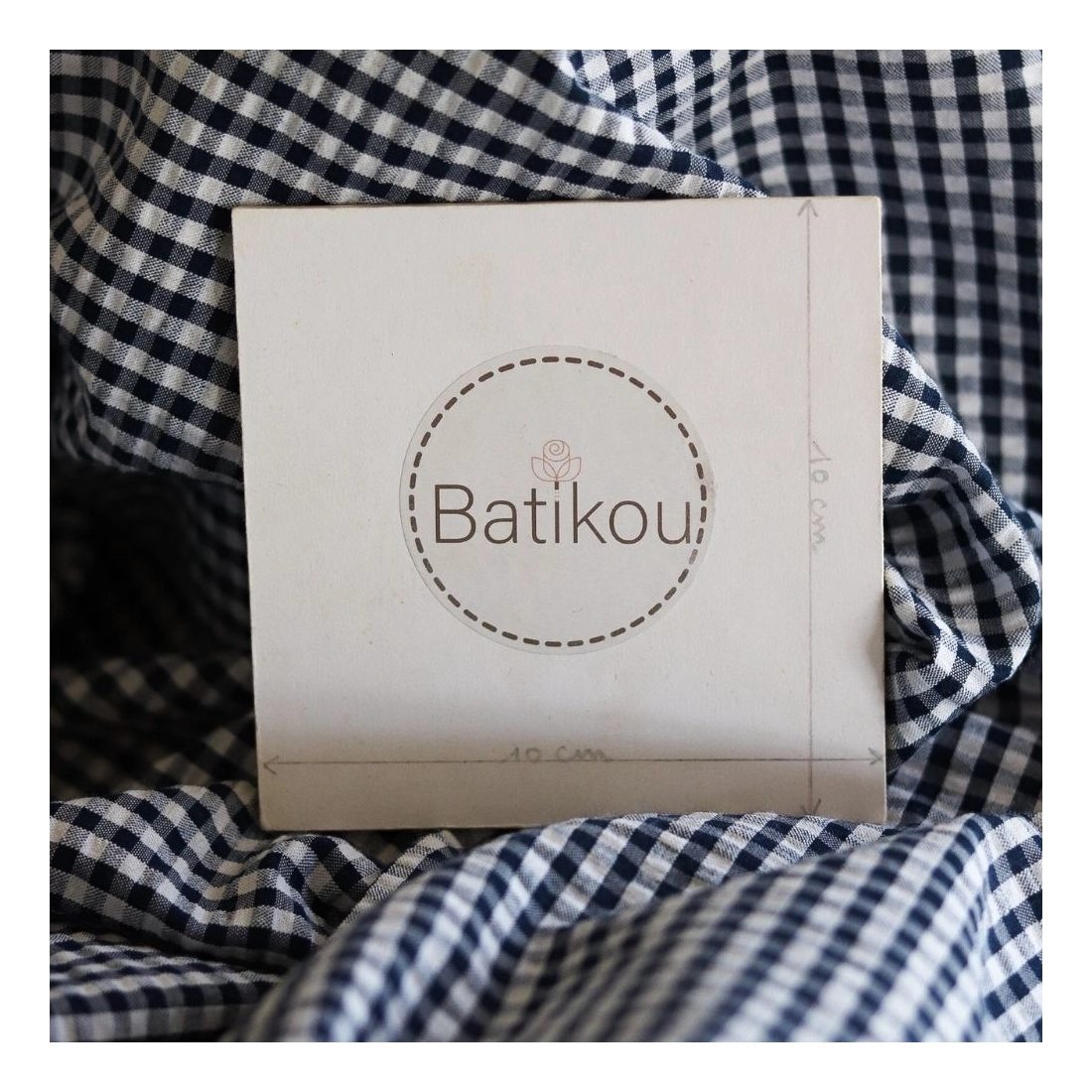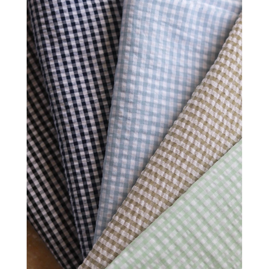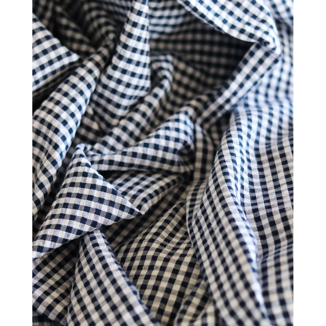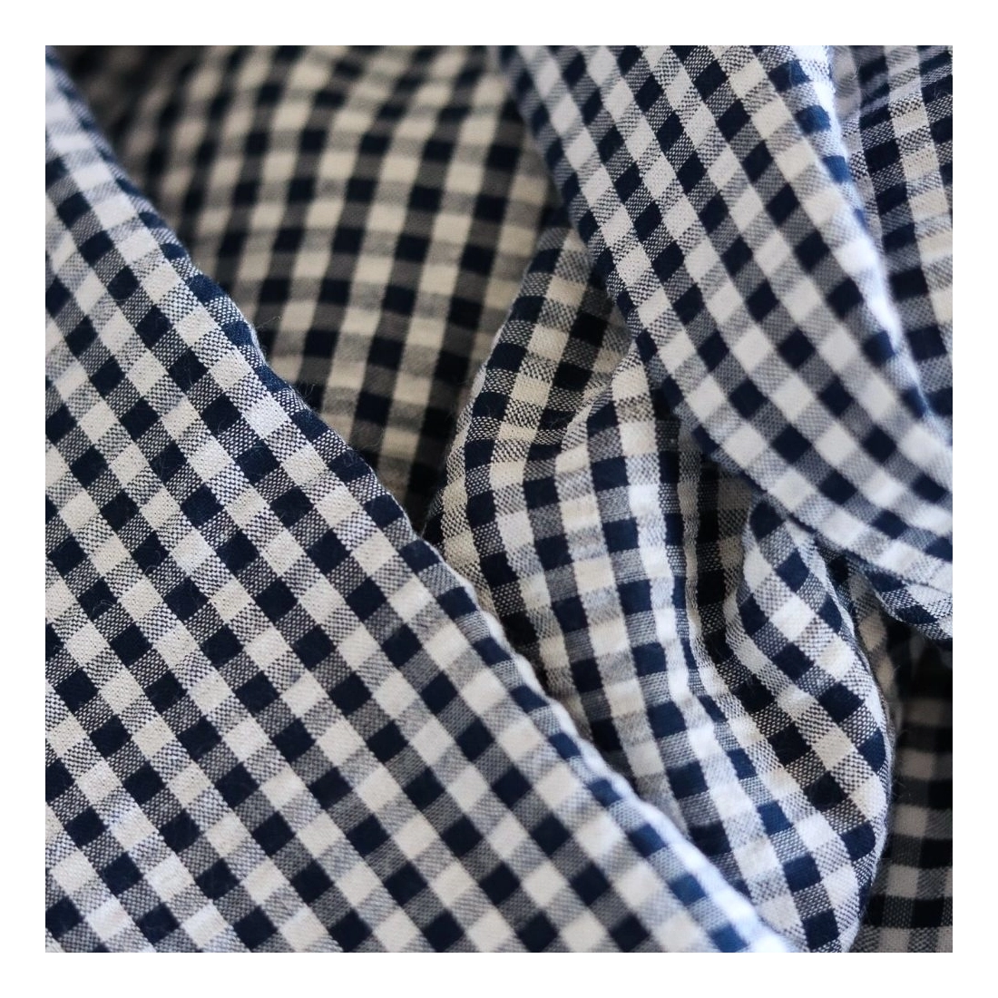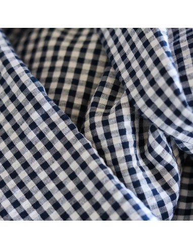 Seersucker / Coton mélangé gaufré vichy blanc et bleu marine