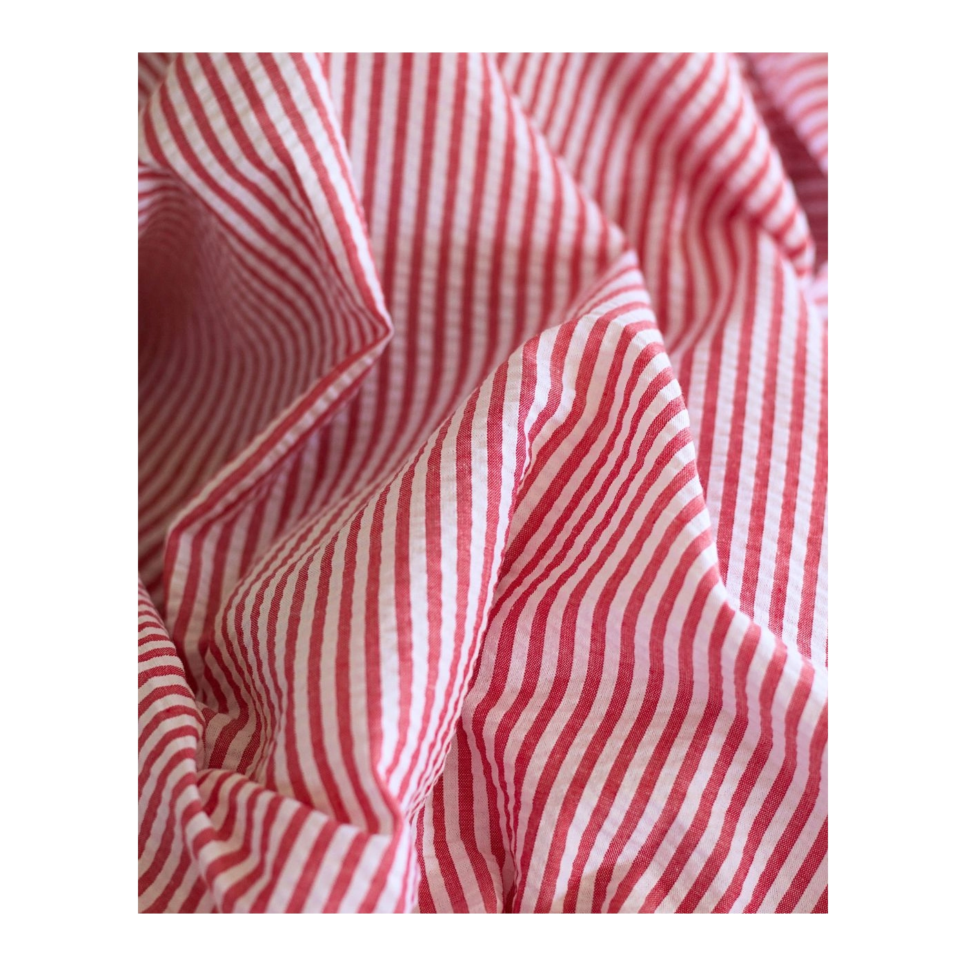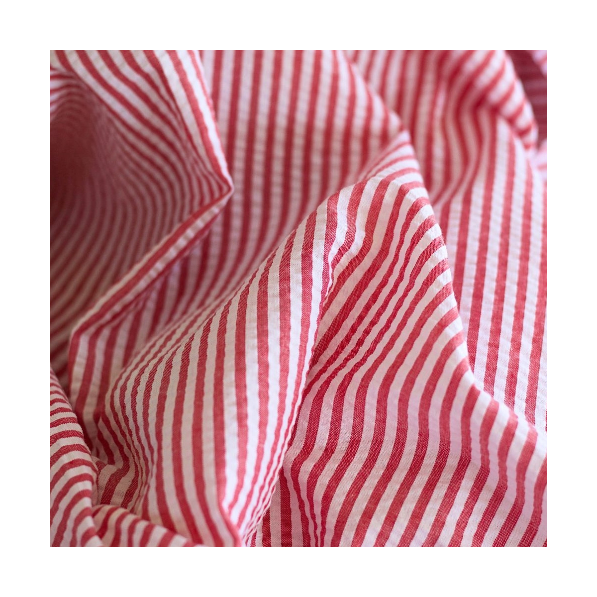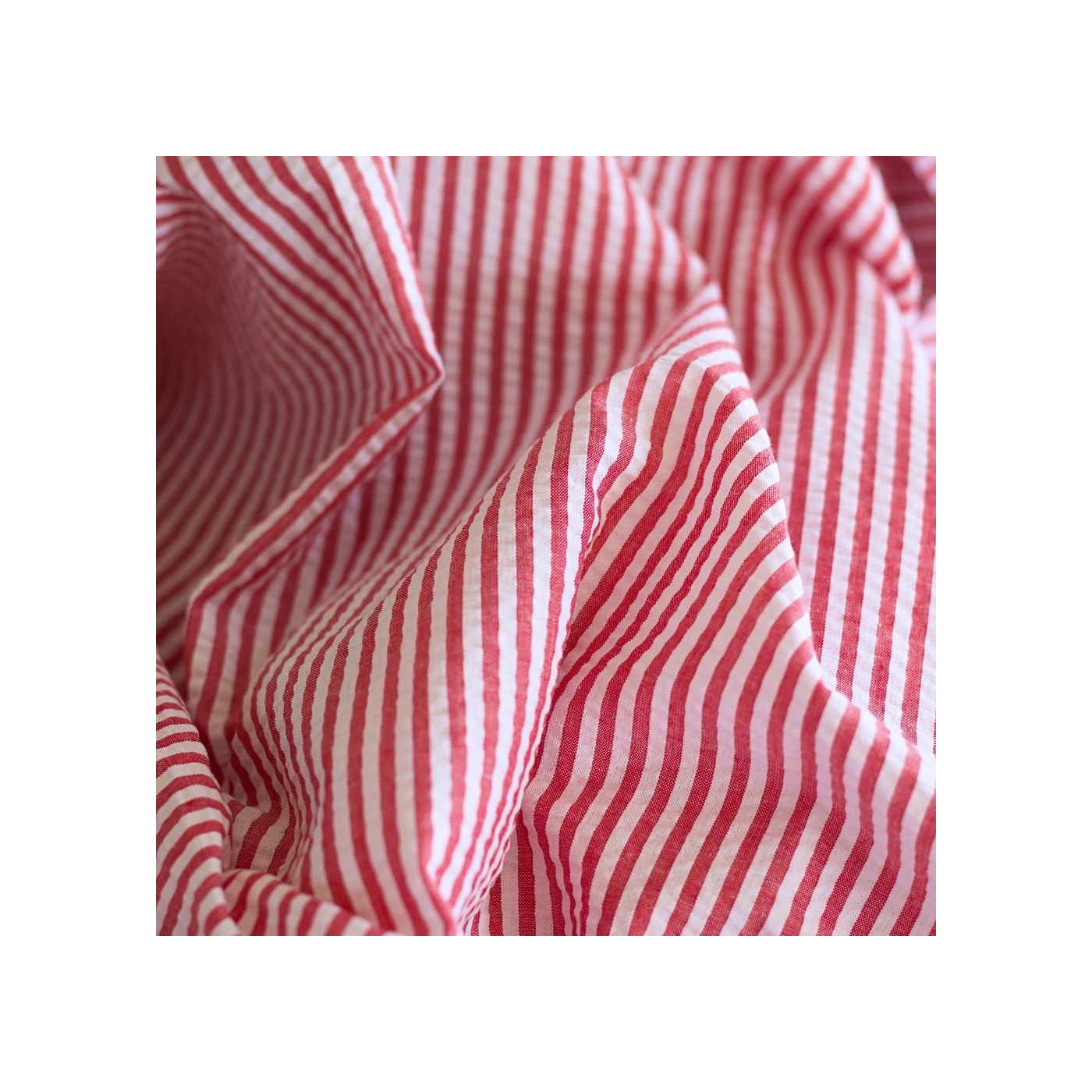 Seersucker / Coton mélangé gaufré rayures blanc et rouge