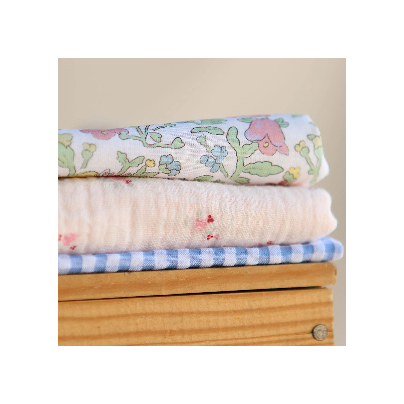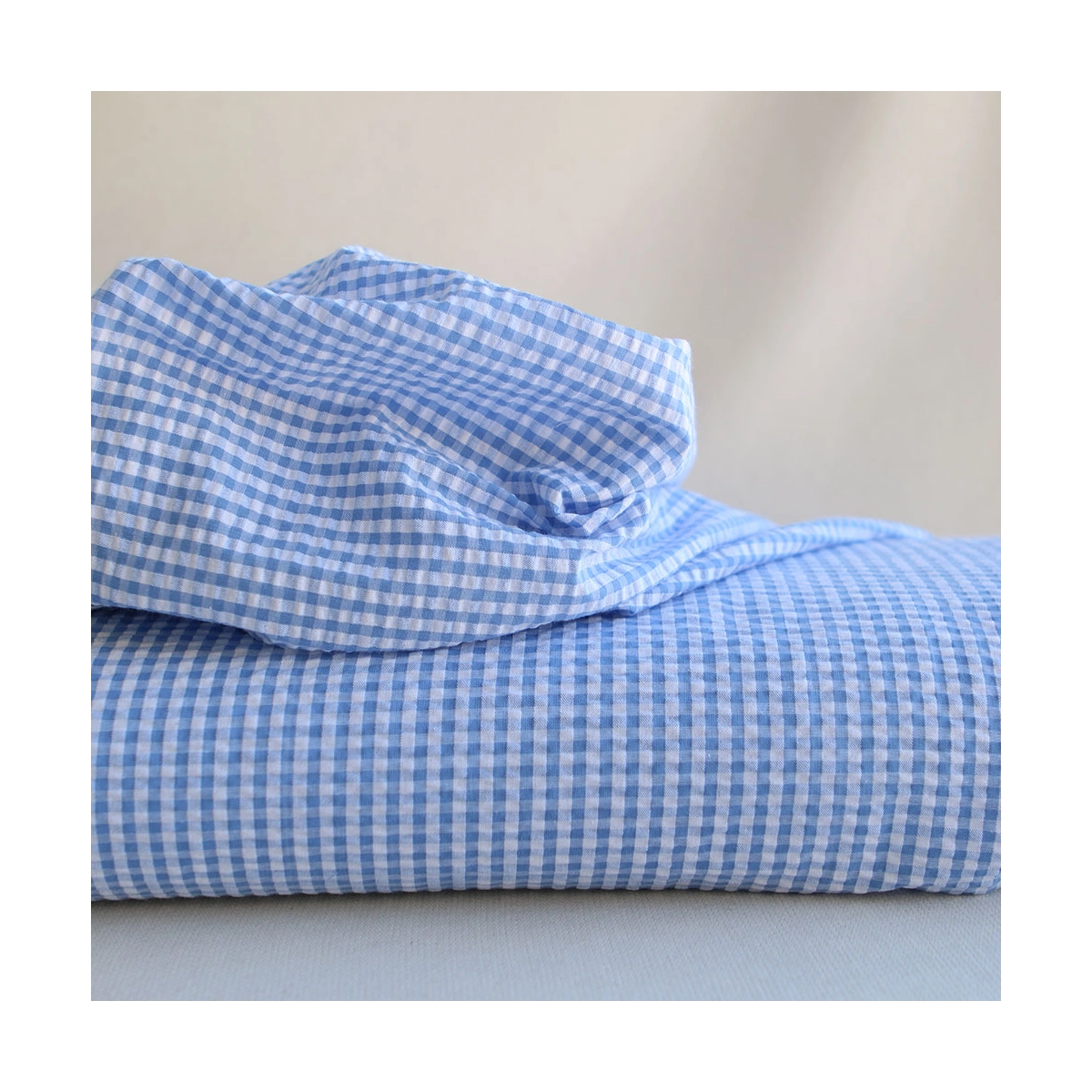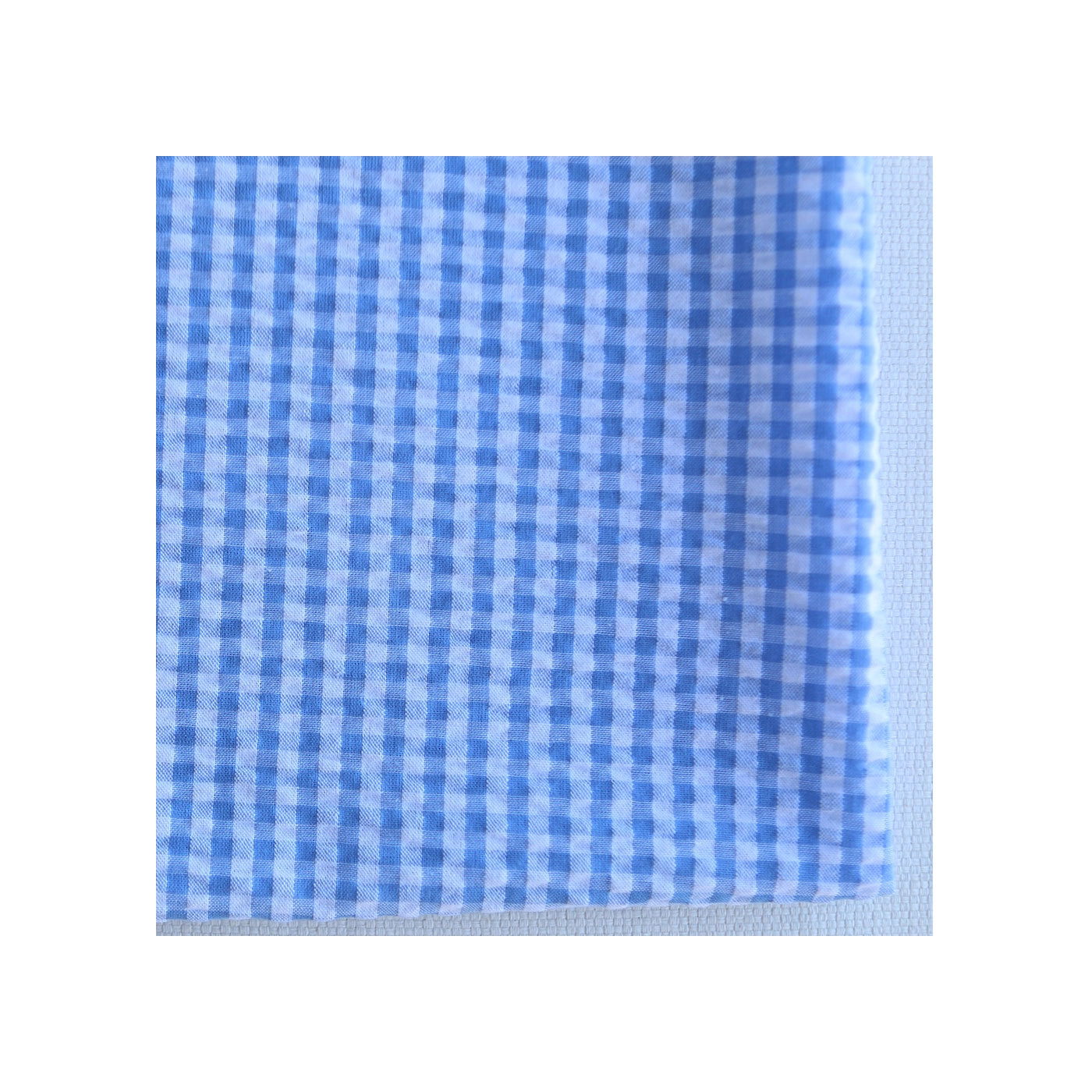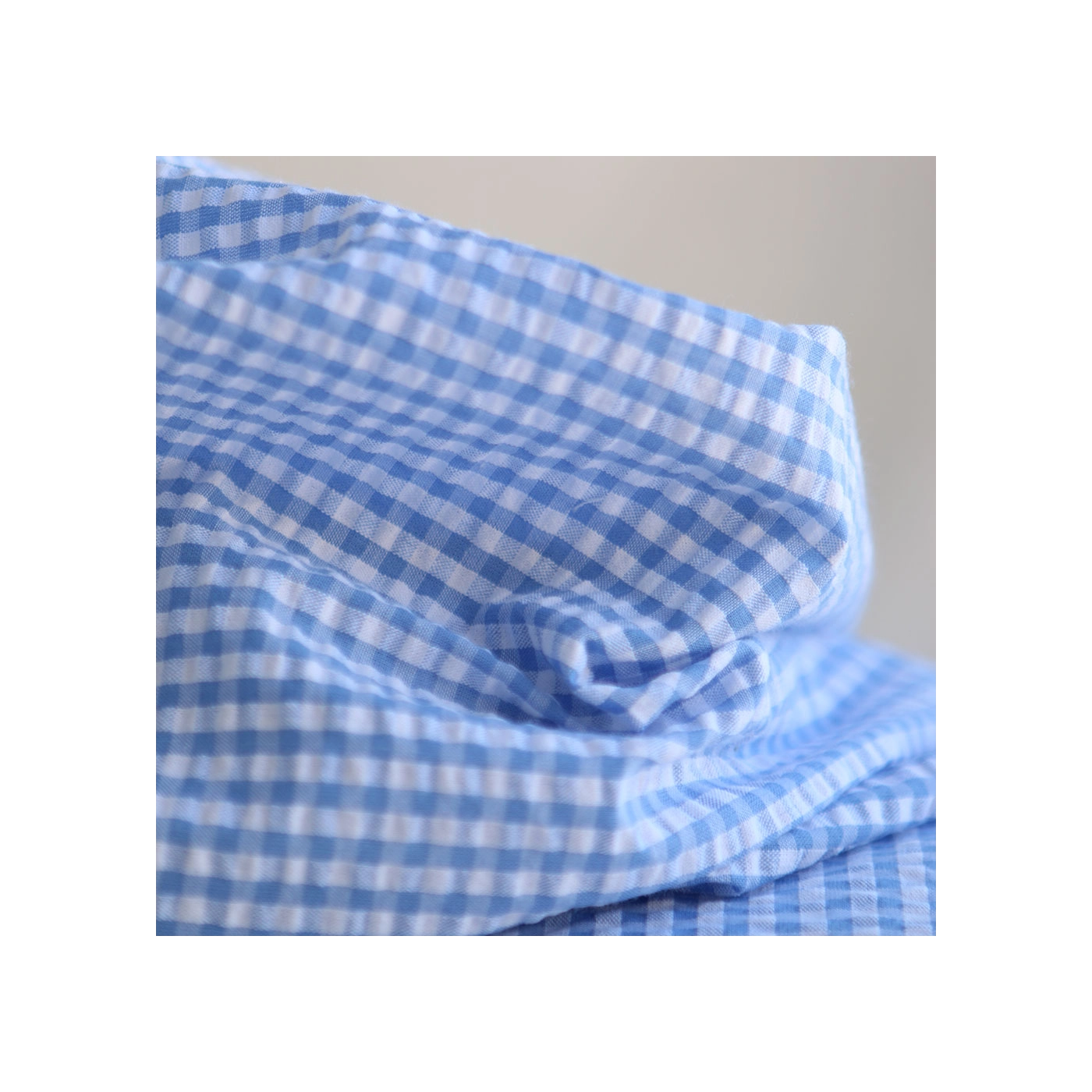 Seersucker / Coton mélangé gaufré vichy blanc et bleu ciel