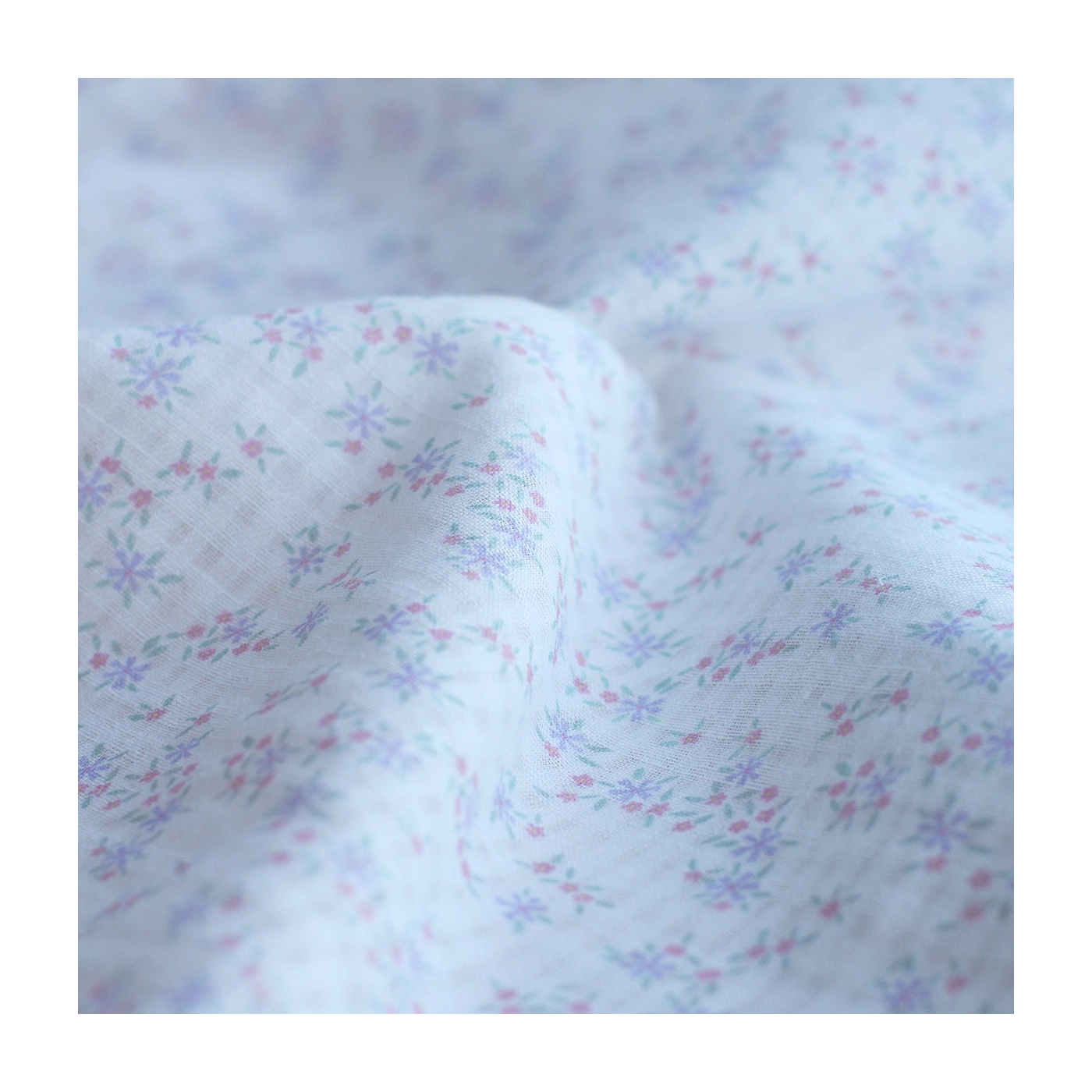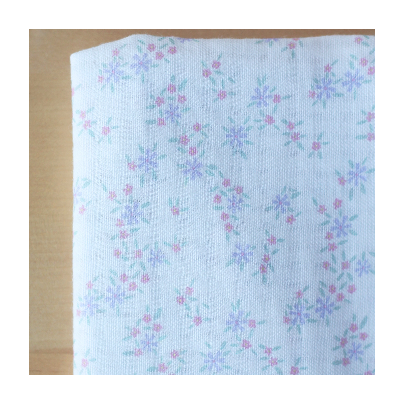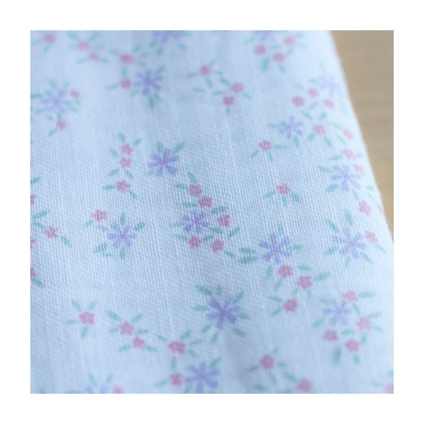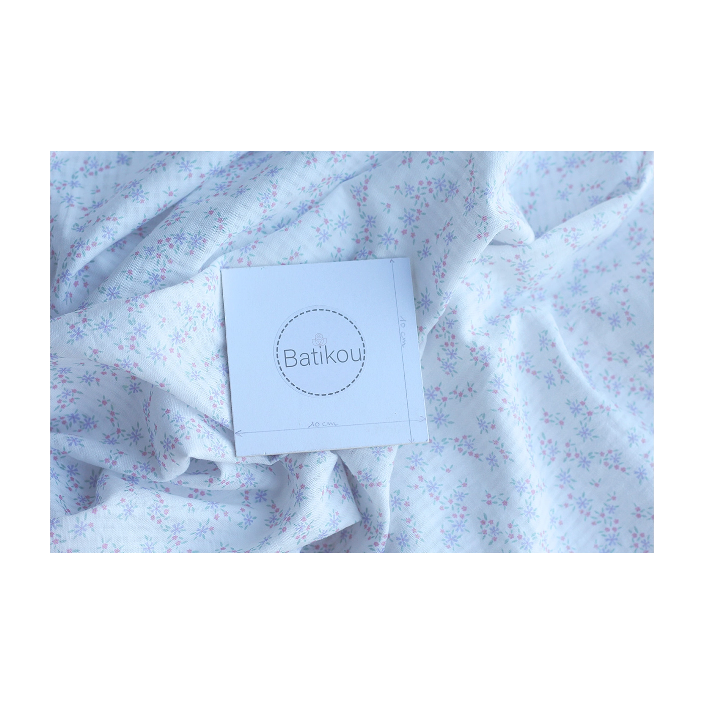 Coloris: fond blanc motif fleuri parme, rose et vert