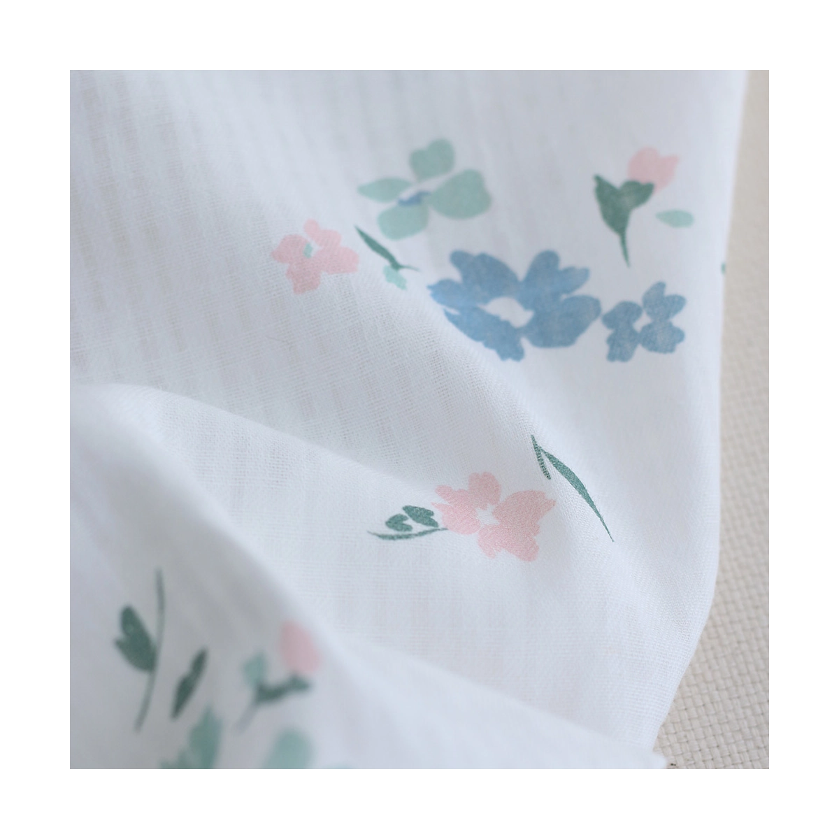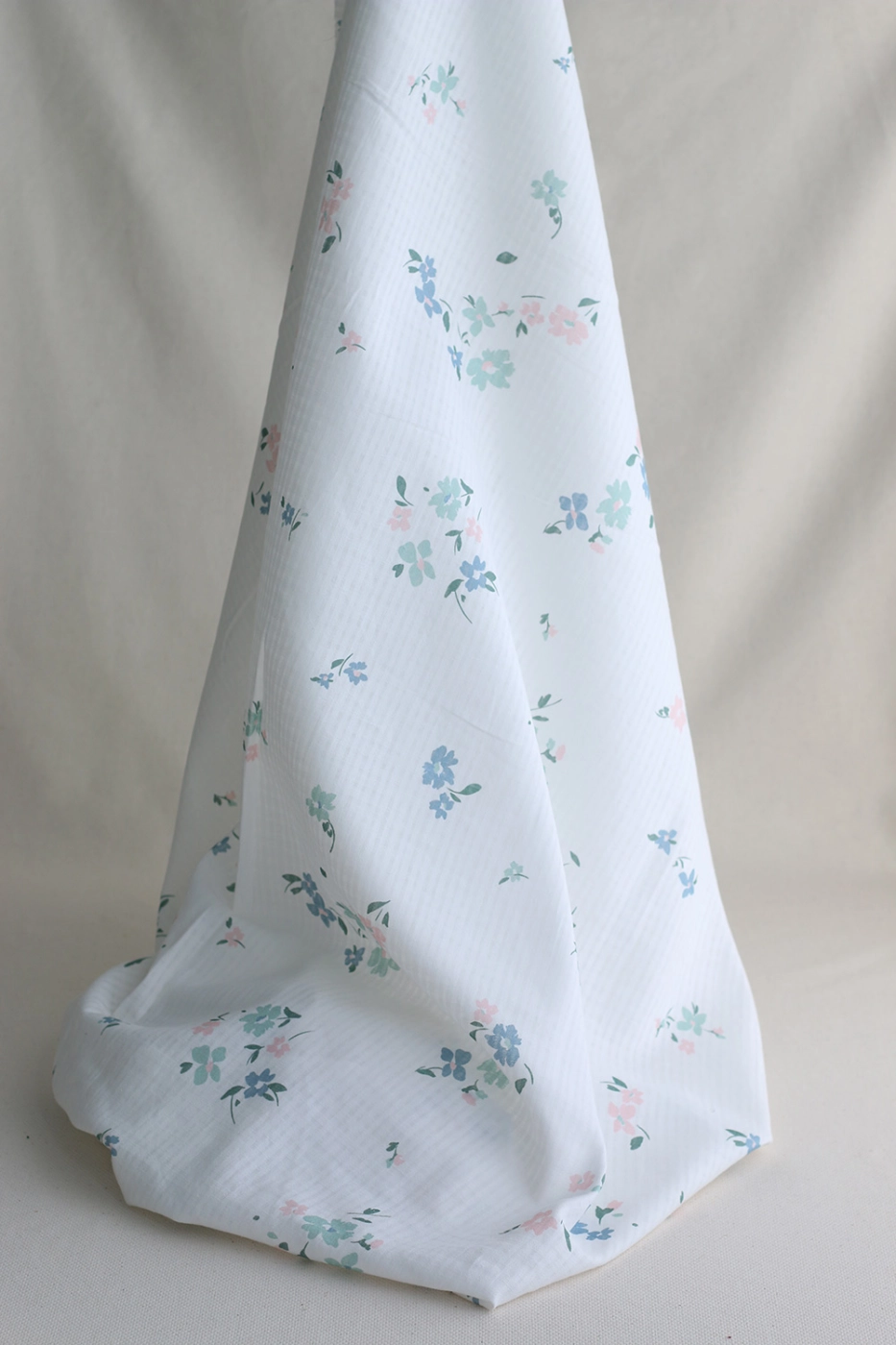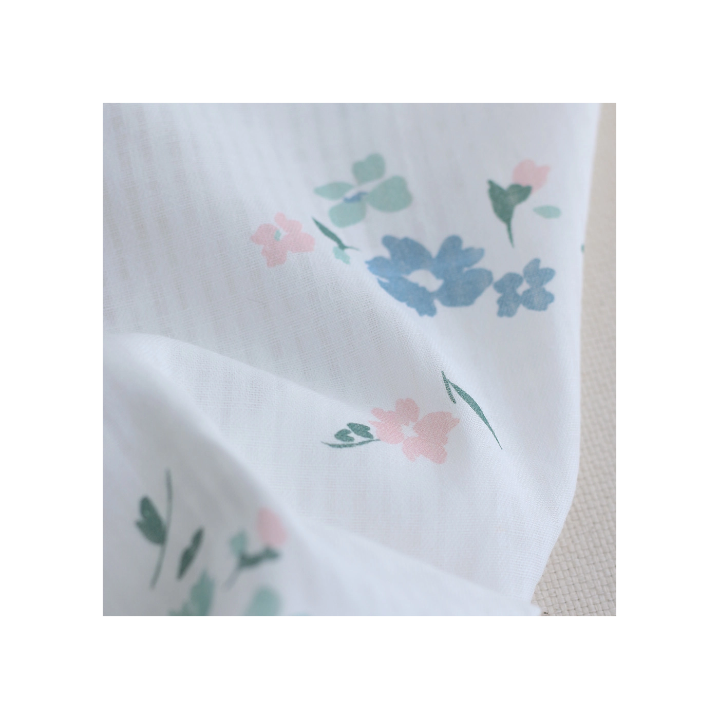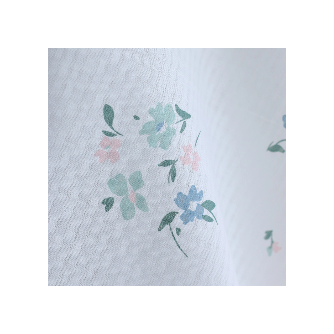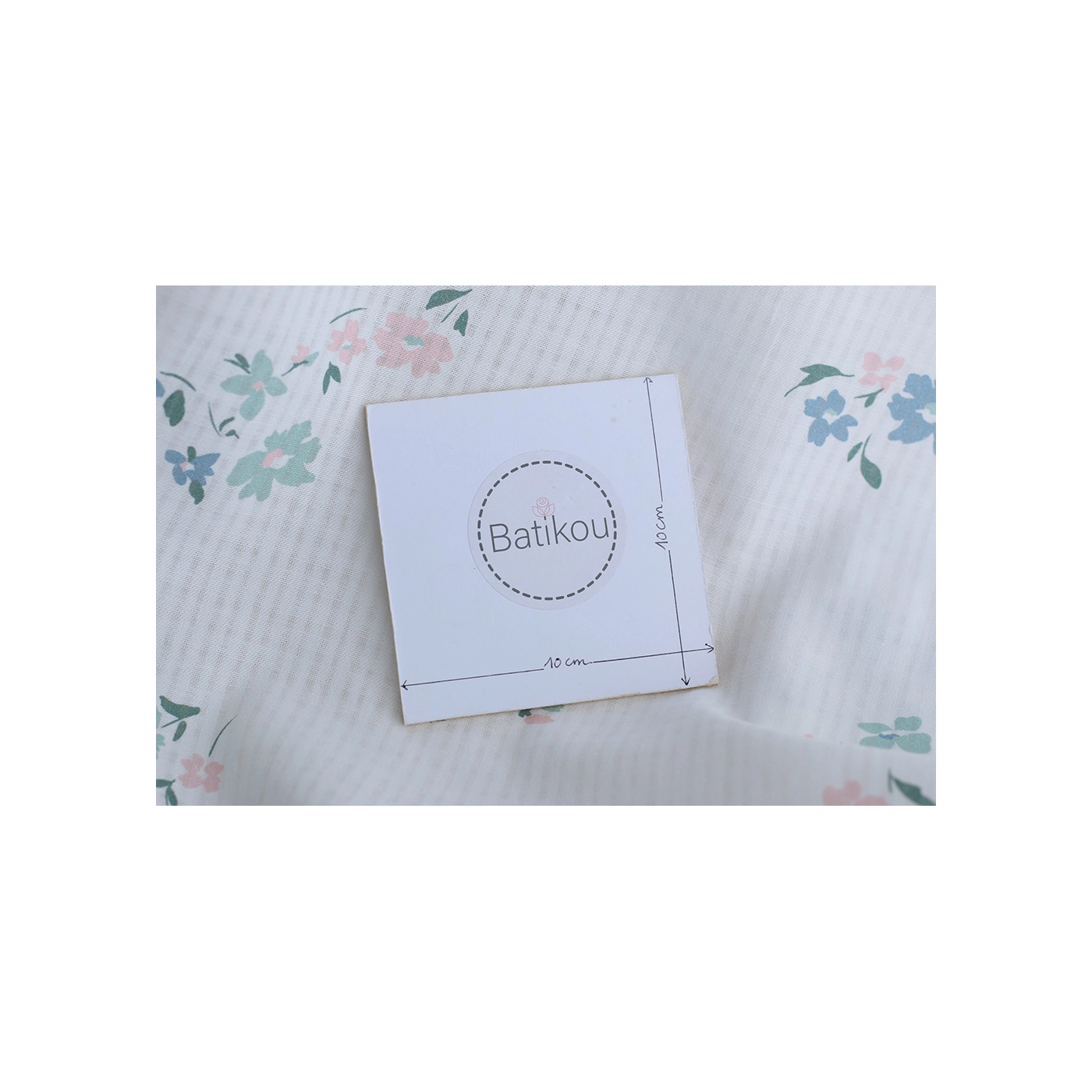 Seersucker / Coton gaufré doux fond blanc motif fleuri Jade rose pastel